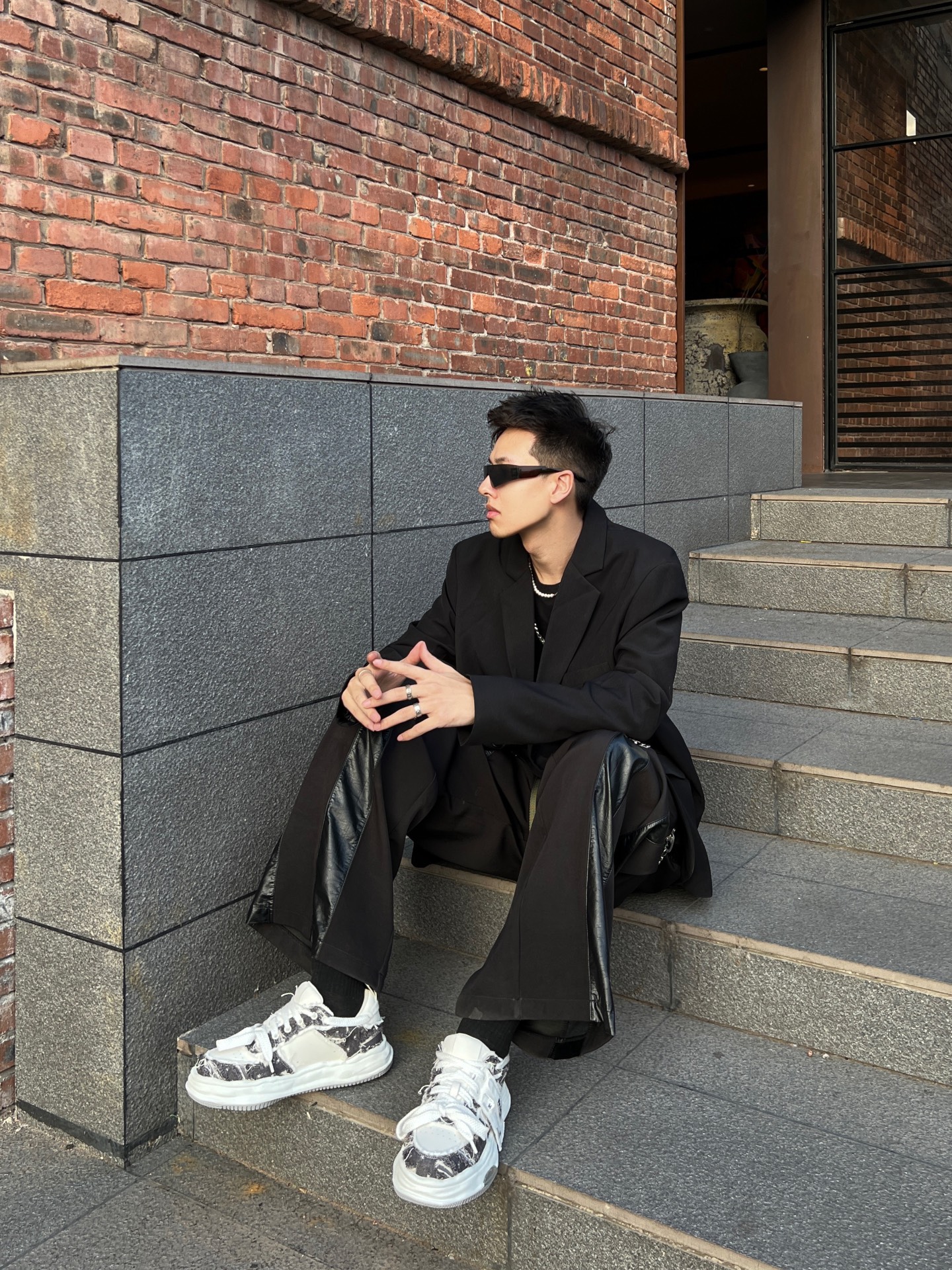 今日Vintage look:黑色系休闲西装外套➕黑色系拼接休闲裤,鞋子则是搭配了一双黑白配色厚底溶解鞋,复古潮流感真的超🆒。 鞋子来自 #MIO 溶解鞋底的设计真的超级个性化,不规则的设计真的非常随性,加上厚底的设计,不仅舒适度非常不错,上脚也可以很好的修饰腿型。鞋身黑白配色,整体看起来非常简约时尚,鞋子上脚也是非常百搭,日常穿搭真的很香。 #我的宝藏单品溶解鞋 #百搭解构鞋 #复古经典款溶...