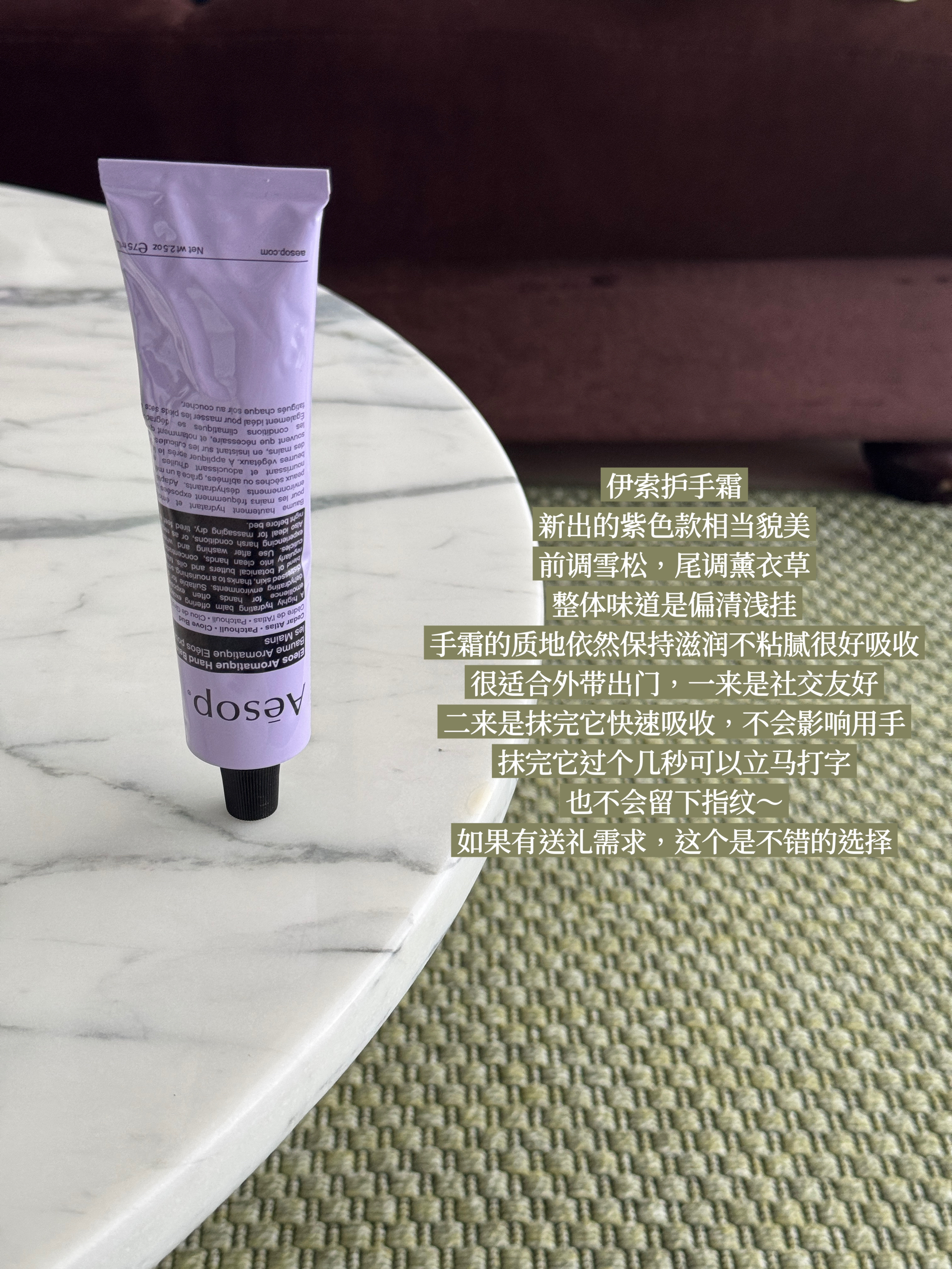 本篇笔记关联了伊索 芳香系列护手霜 保湿滋润不粘腻柔滑肌肤 息间芳香75ml、LA MER/海蓝之谜 身体赋活精华霜 15ml等商品,为用户提供真实的使用体验和购买参考。