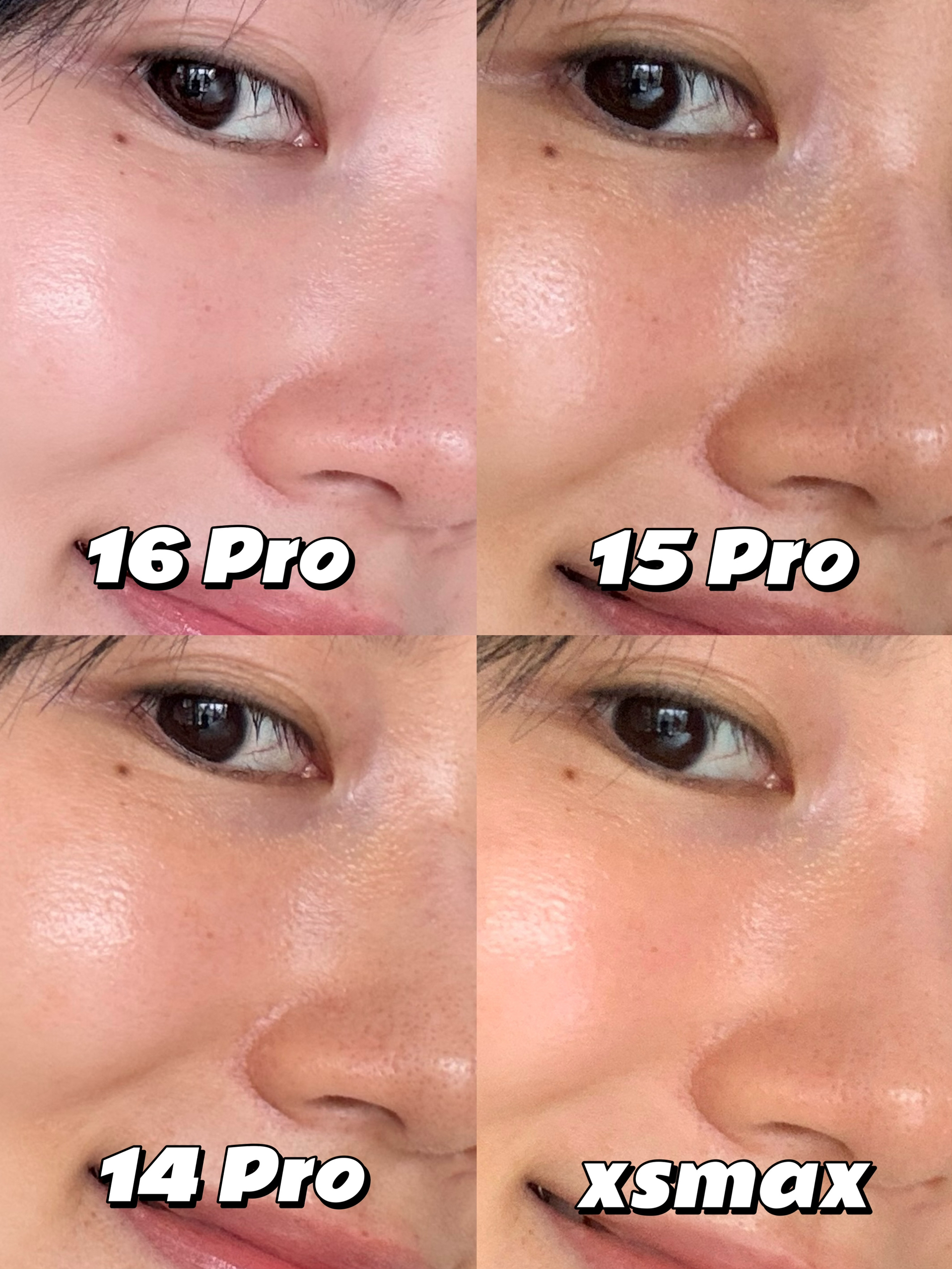 🍎一早起来收到iPhone16 Pro,就热乎乎地UU们先整一组新老苹果手机对比自拍~🈚️妆容🈚️磨皮直出❗️姐们在互联网也是没有在乎的人了🥹! 📱设备: iPhone 16 Pro / iPhone 15 Pro iPhone 14 Pro / iPhone Xs Max 🍎都说这次苹果16拍照堪比清晰版的xsmax,确实是这样‼️它拍出来就是让你的斑和纹路没有那么明显了(图2️⃣),但...