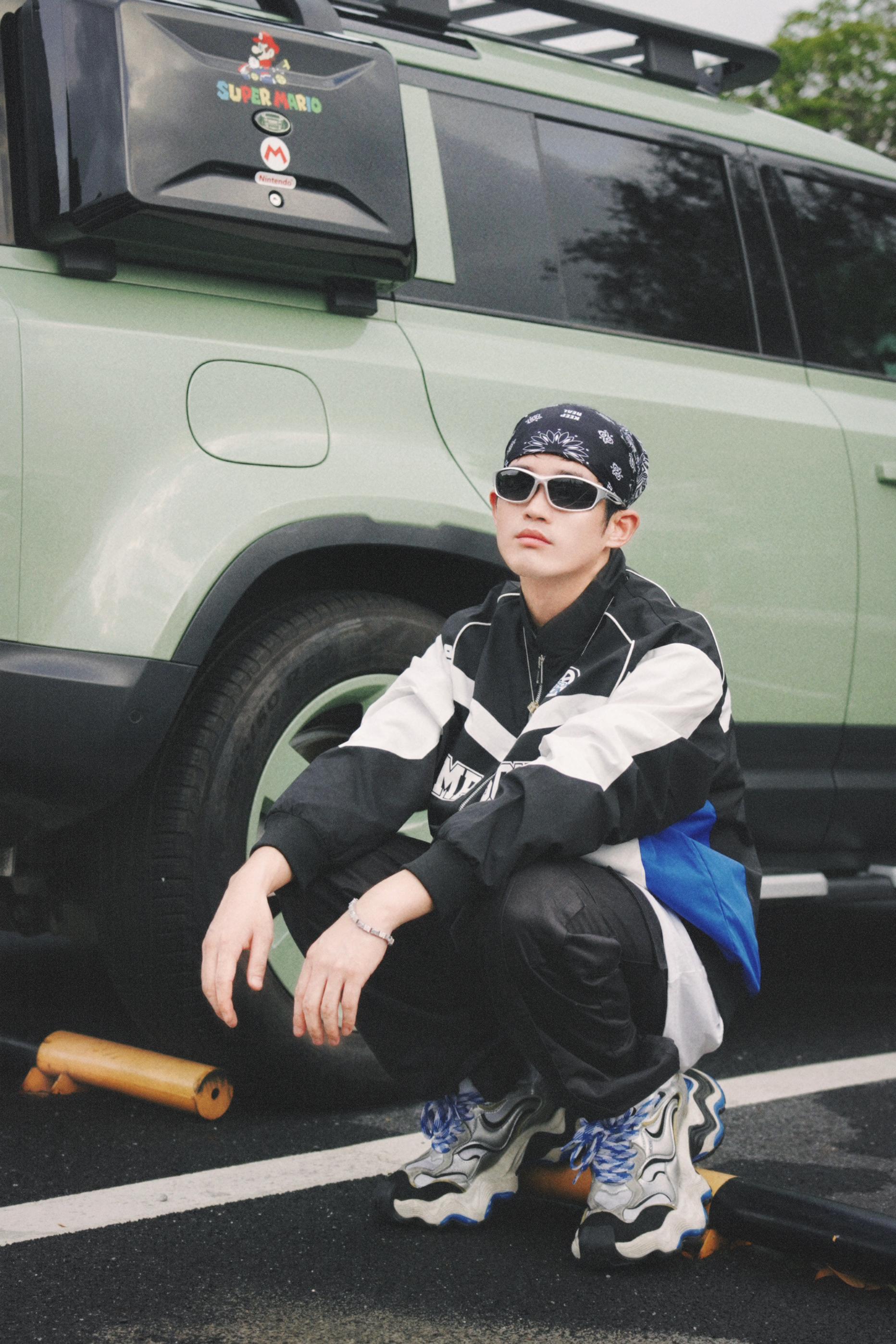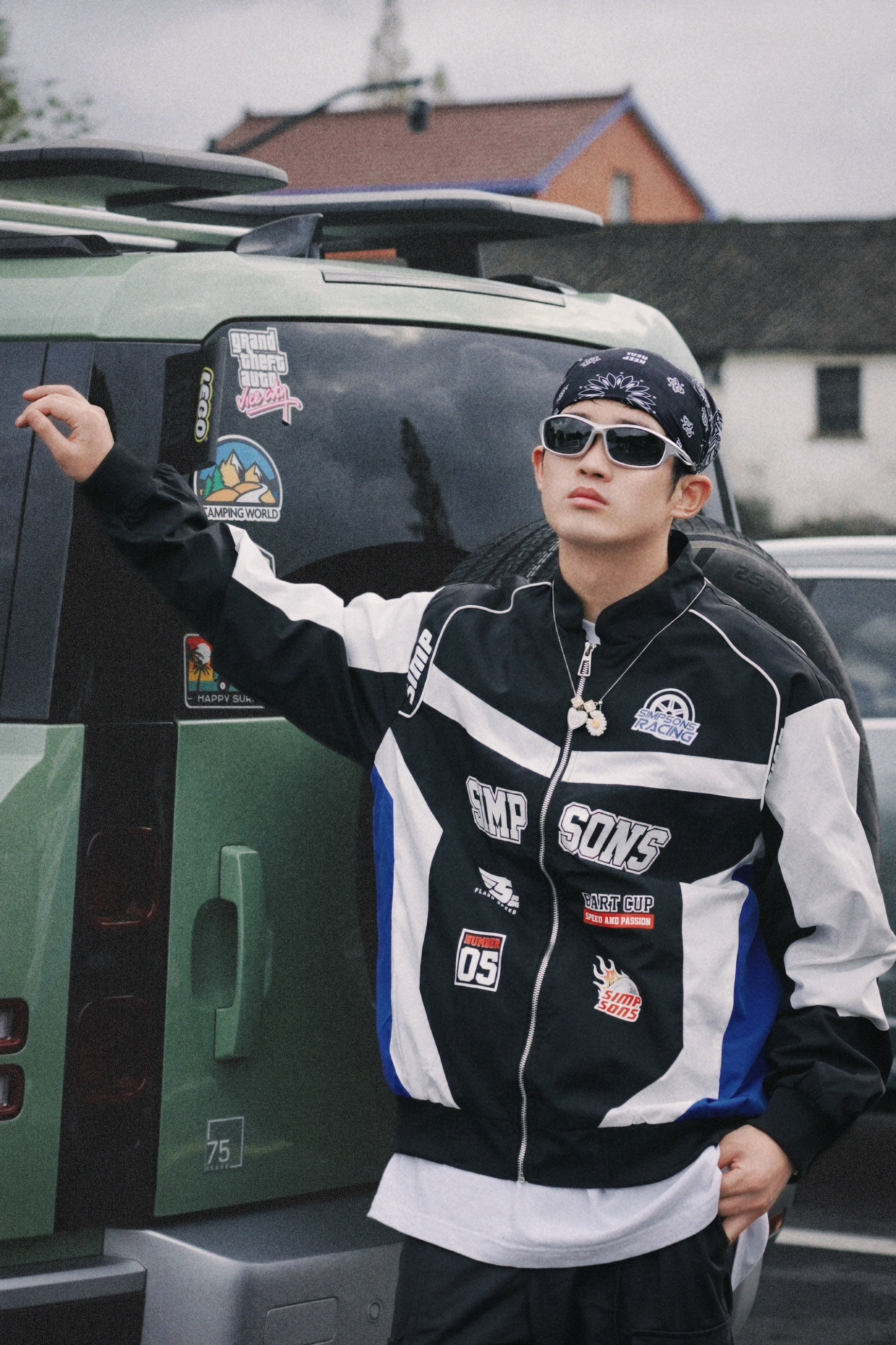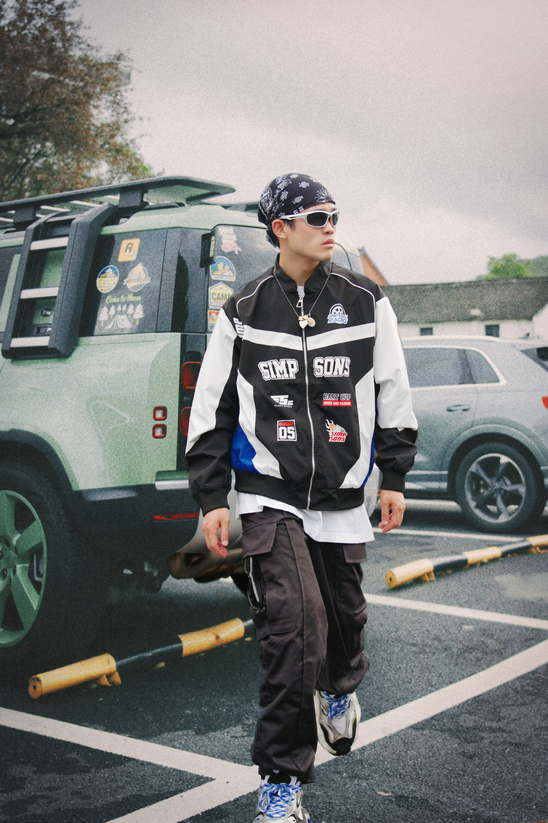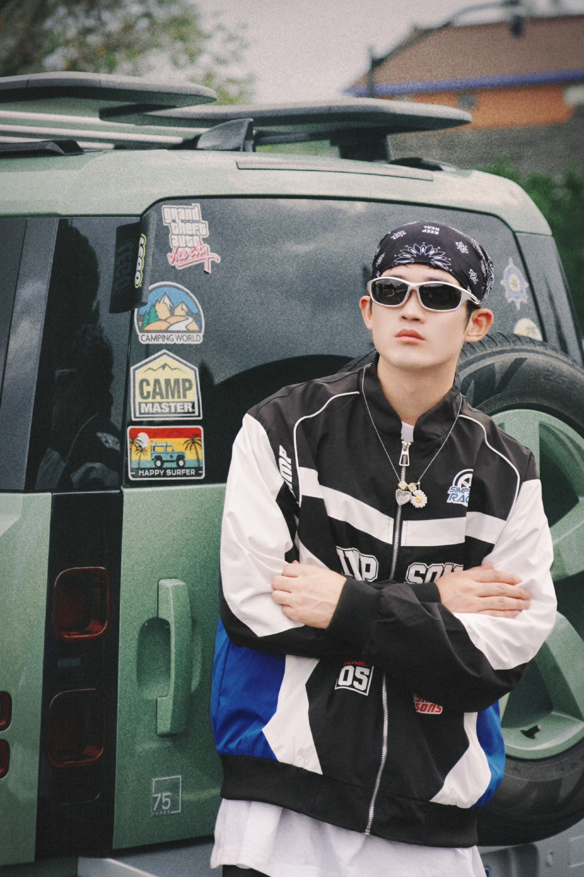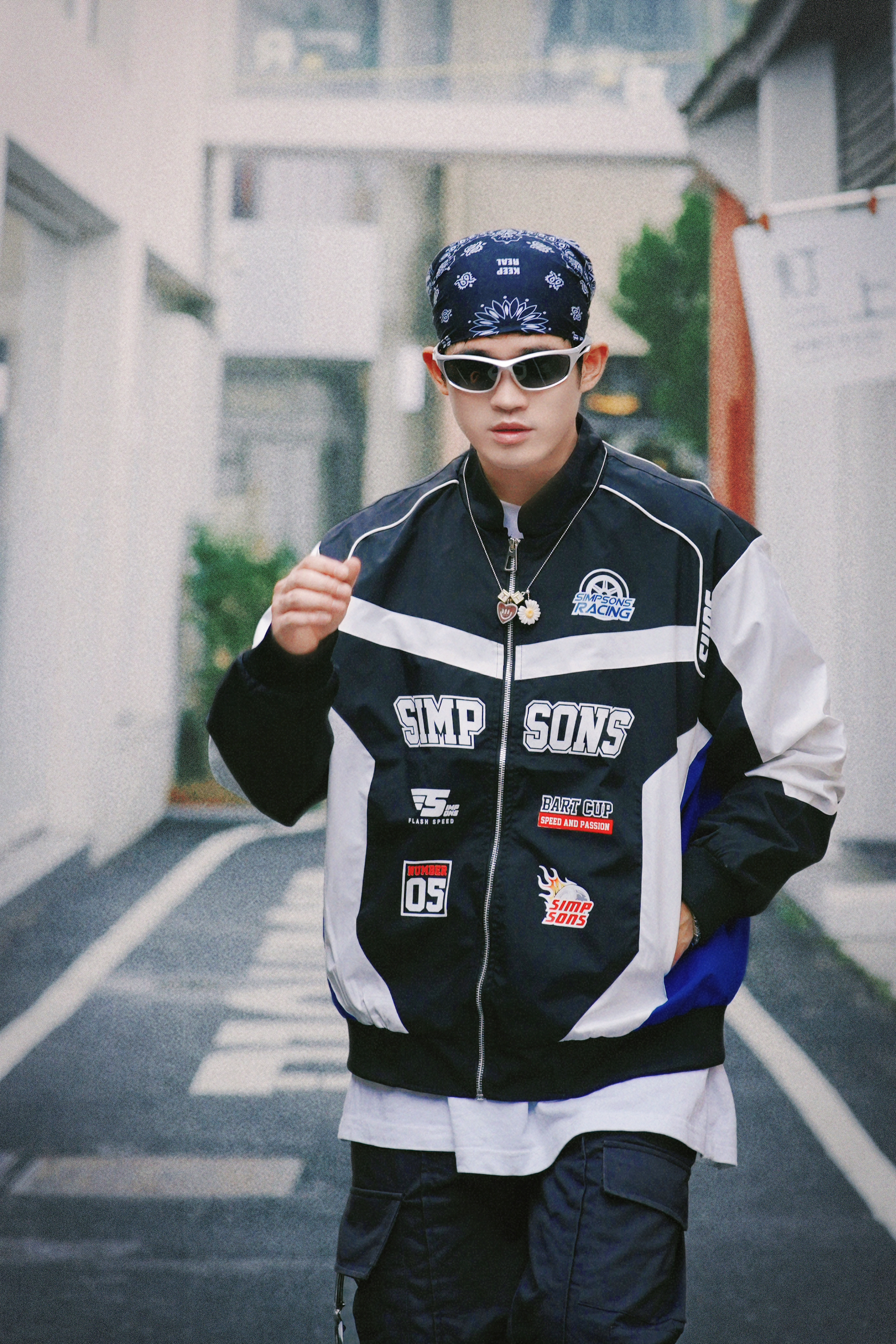 假期出门玩不得穿帅点 出片才能无压力啊? - 今天的新复古回潮穿搭 嘻哈氛围算是被我拿捏住了 拼接撞色的这件潮流夹克 看起来真的好有机车感 搭配黑色系的休闲长裤 感觉下一秒就帅出屏幕了 - 今天的加分品是我的头饰 每次一戴嘻哈感就上来了 酷帅指数直接拉满!