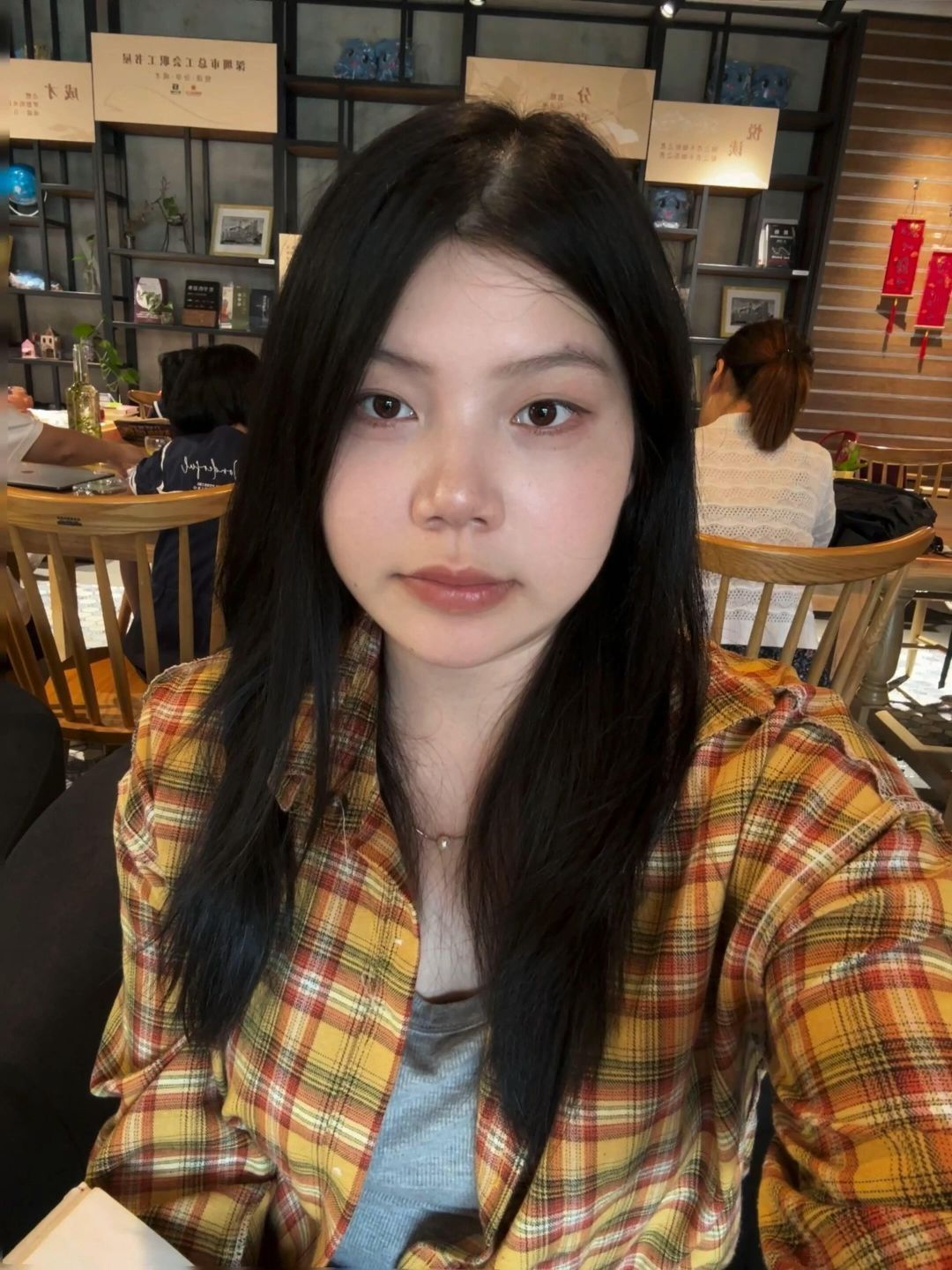 在面包店的时候 我姐给我拍照 然后说我的衣服跟稻草人有什么区别 哈哈哈哈 回到家我才发现 我衣服穿反了今天穿这样