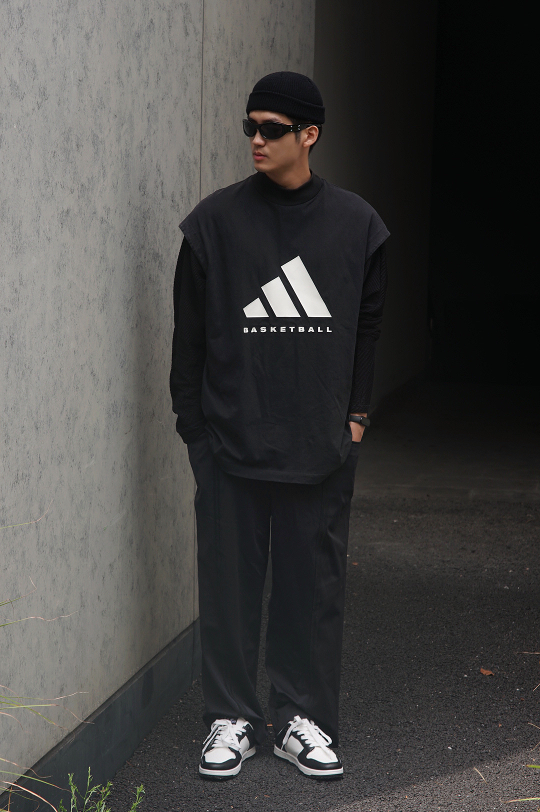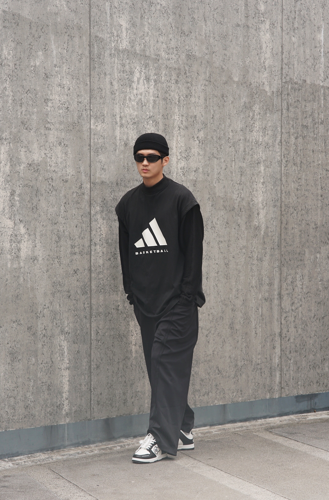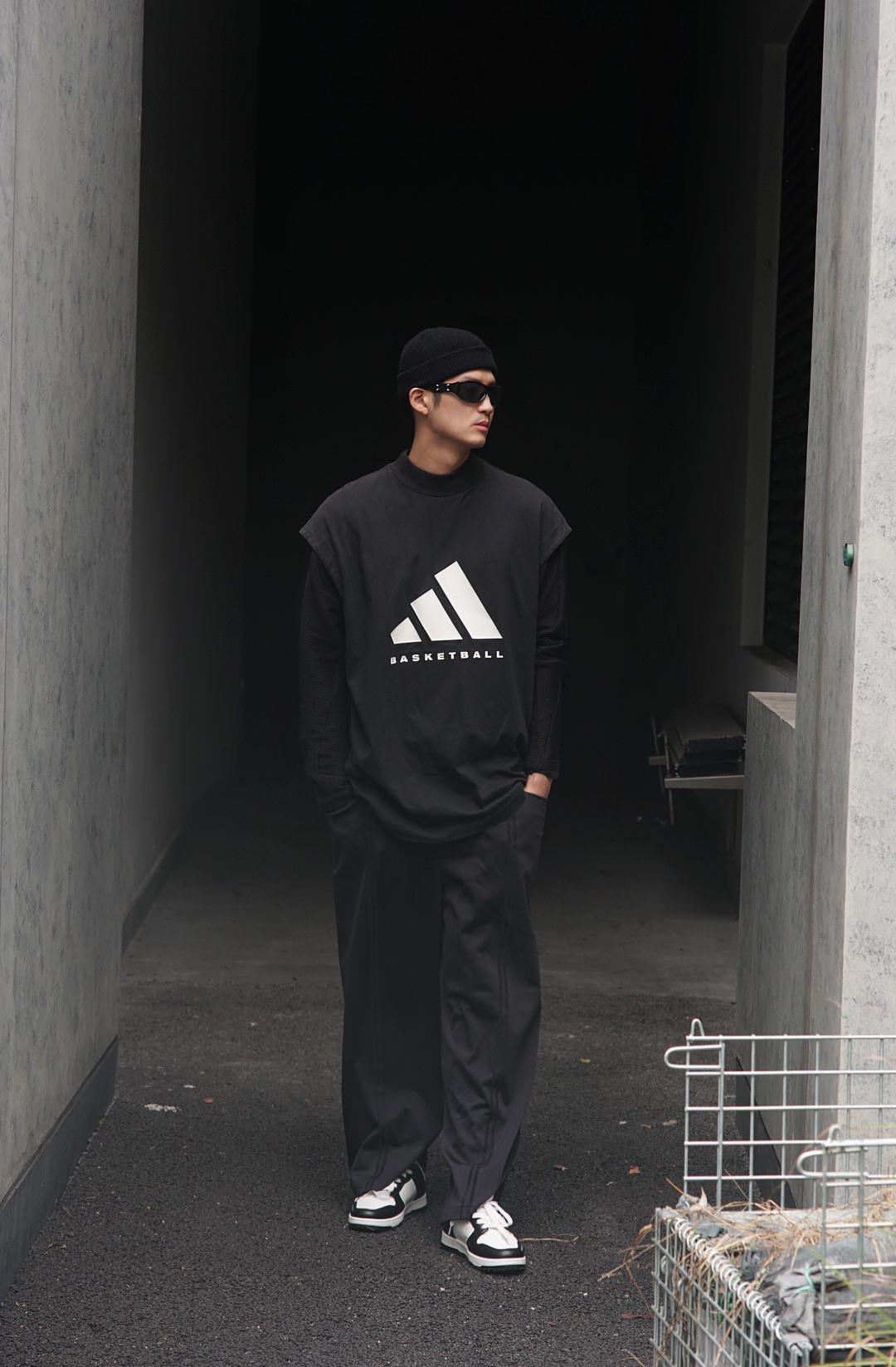 初秋了,想要穿出高级感首先可以从颜色上下手!那么黑白灰是不二选择,上衣用两件黑色单品做一个叠穿营造层次感,下身依旧选择一条黑色阔腿裤,然后上脚一双黑白配色的TCELLARS冲击波板鞋,神秘感的气息扑面而来。