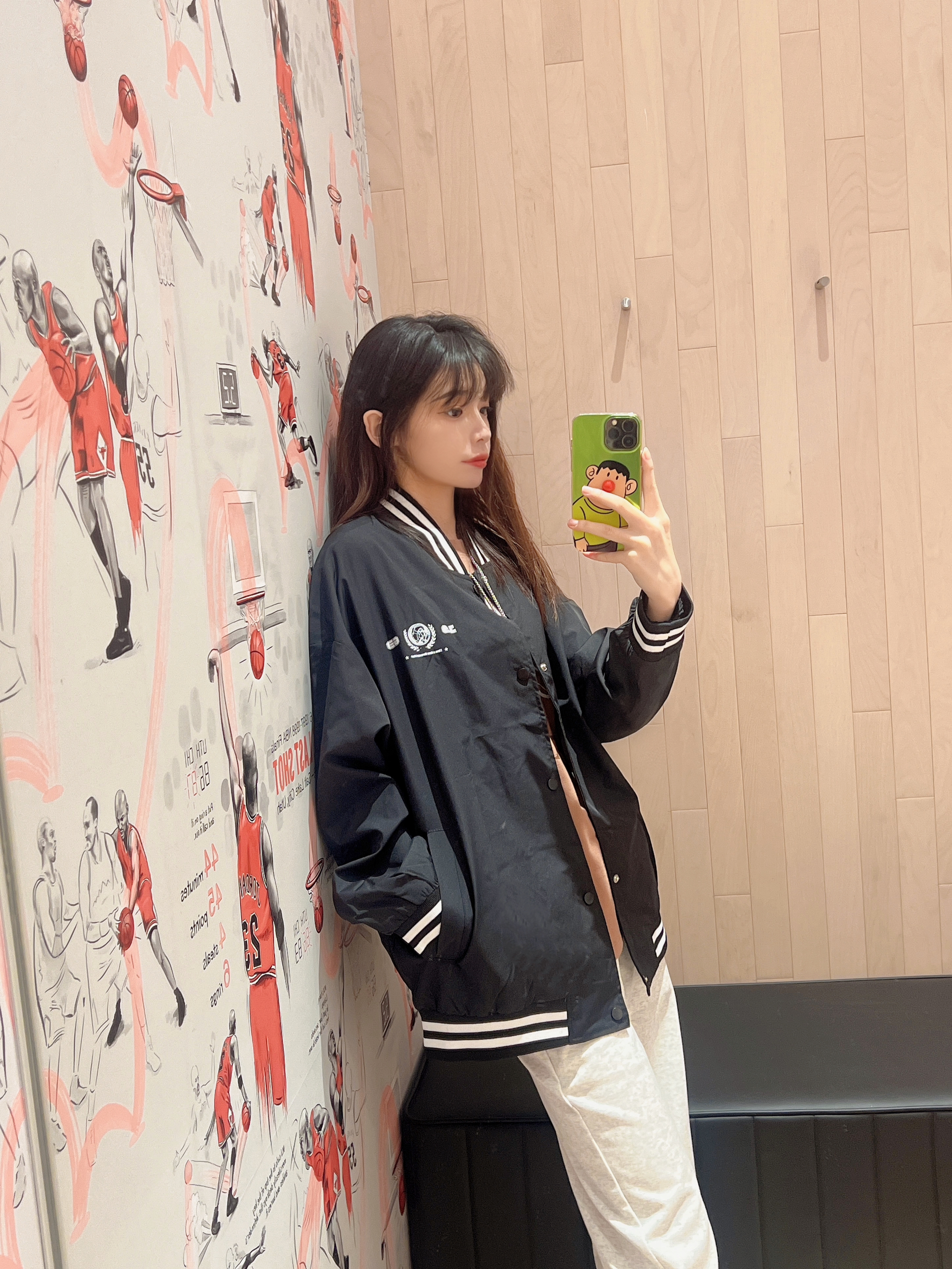 今日穿搭棒球服➕休闲裤 👔是 MARVEL/漫威 🏠滴棒球服⚾️ 出片神器📸。钢铁侠系列夹克 宽松版型 还有防风效果哦👍 质感不错滴 😎黑色就是百搭款 男女同款 👧166/43kg 搭配灰白色裤子再搭配☕️ 日常穿搭舒服又简约呢 👟☕️质感很nice 日常怎么搭配不出错✌️