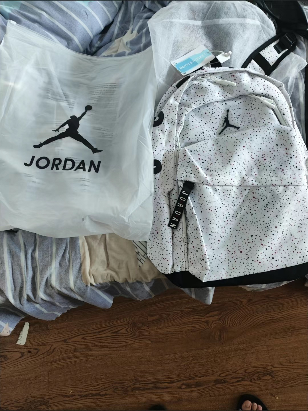 本篇笔记关联了Jordan Air Patrol 满天星 大容量拉链聚酯纤维书包双肩包 白印花 HA6473-100等商品,为用户提供真实的使用体验和购买参考。
