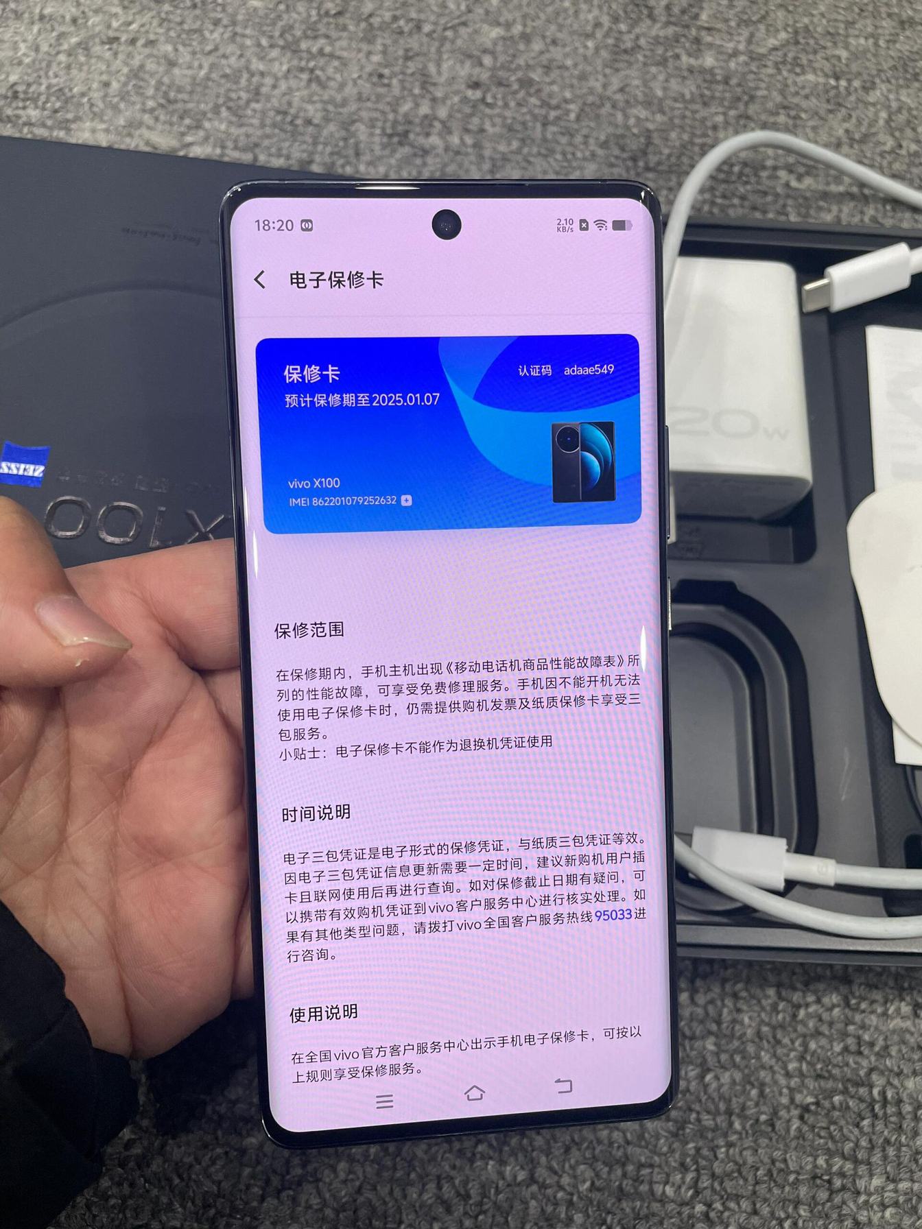 vivo x100标准版 12十256,白月光 3600京东购入 外围配置 sOC:天玑 9300 屏幕:6.78英寸 120hz LTPO 高频pwm调光 1.5k 重量:208g左右 电池:5000 毫安时,120W充电 摄像头:主摄IMX920,潜望长焦老朋友 OV64B