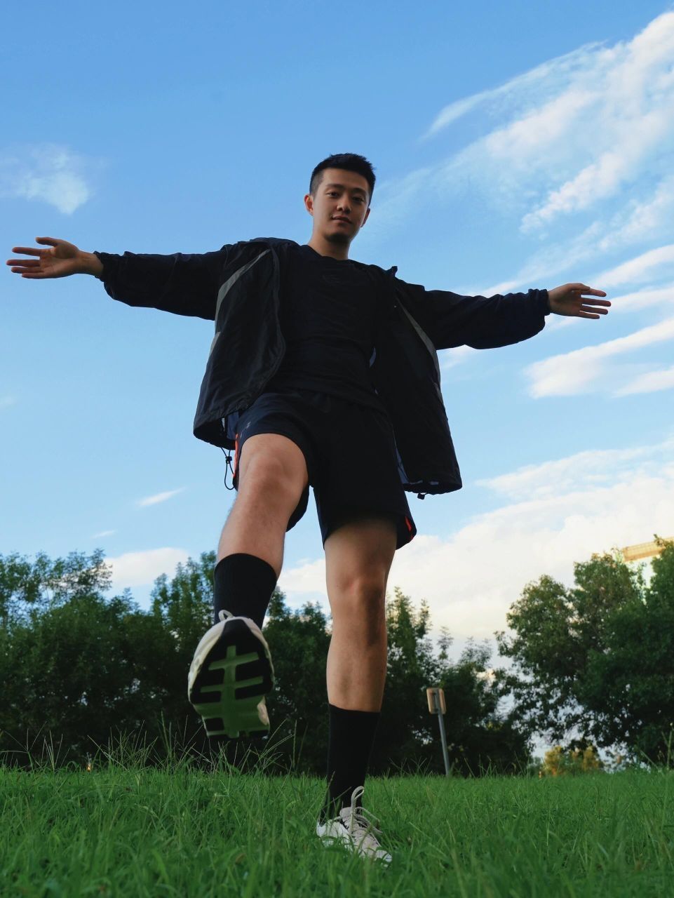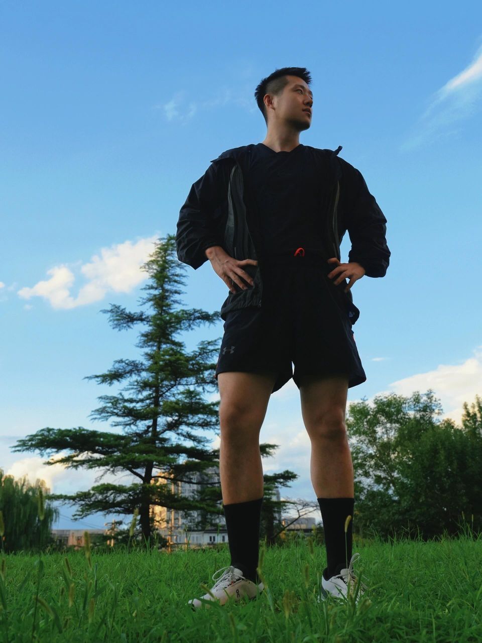 昨天晚上下过一场暴雨 今天的天气特别好 喜欢最近的蓝天白云 周日的下午 一起出来跑步啊 ootd
