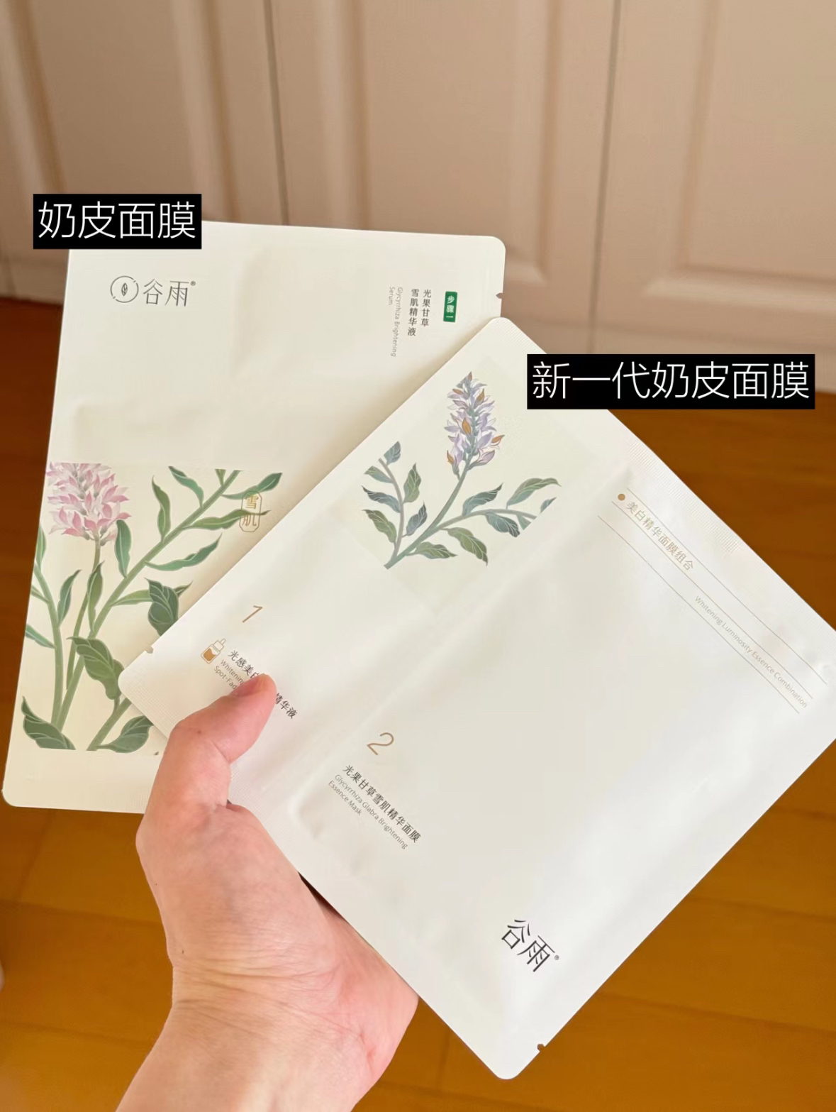 靠!这款面膜真的超级绝 经常熬夜脸黄、晒完脸黑脸红试试谷雨奶皮面膜敷完有种泡在牛奶里面的感觉 真的超级绝,敷完提亮脸部水润饱满去黄提亮效果尊的巨巨巨牛波!!!! 我脸是属于比较暗沉的,昨晚敷完一片!一整晚脸都像顶了个灯泡似的!!! 脸比脖子身体两了至少两个度我去.... 而且它的奶膜布真的就是像奶皮儿一样,巨巨巨柔软服帖!!!! 里面足足30ml的精华,相当于一瓶正装米白精华的量一次过敷在脸上
