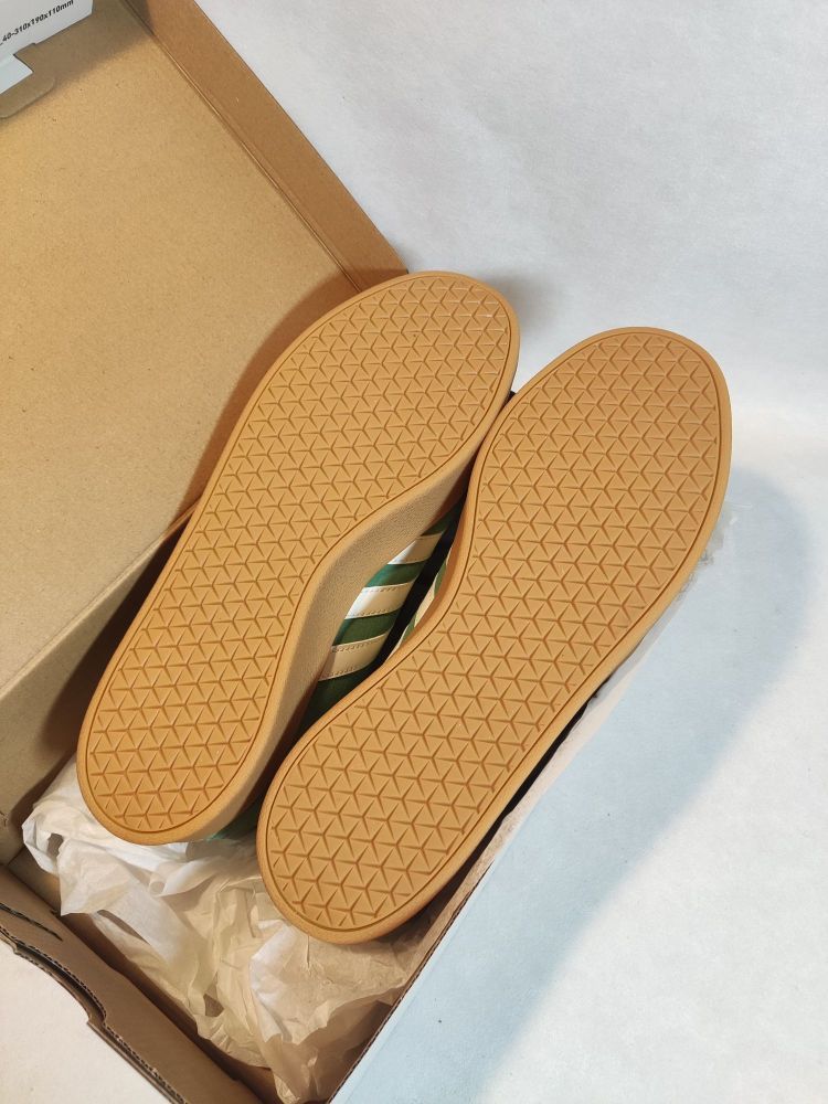 【细节测评】阿迪达斯court绿色配色 ✨颜值:1-10分你觉得能够打几分? ✨鞋型:经典的阿迪达斯T头鞋鞋型,整体非常好搭衣服裤子。😃 ✨鞋面:全鞋面麂皮材质,鞋子整体质感很好,非常高级,😁鞋侧印有Adidas的金色logo🥰 👟鞋舌:也有金色logo,同时做了填充,系紧鞋带也不会勒脚🦶 👟鞋跟:内置港宝片,也做了填充,不会磨脚跟。 👟鞋底:耐磨防滑不错,不偏码。 👟尺码:正常尺码选择即可。 两...