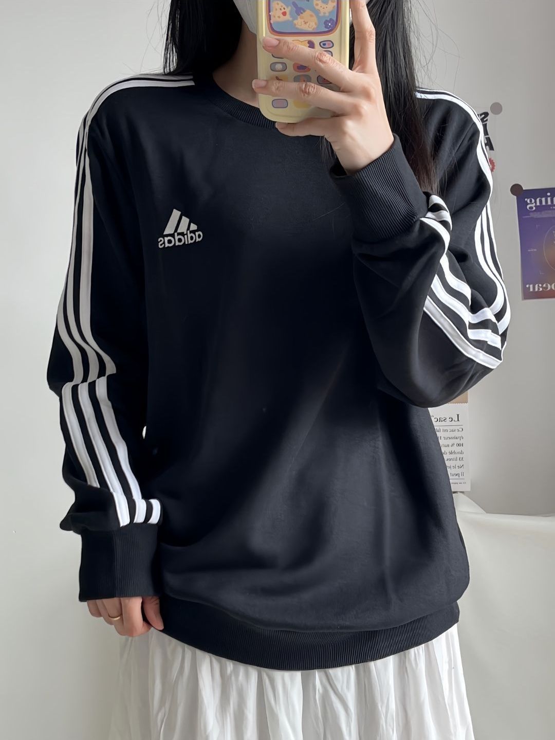 adidas 健身训练运动宽松套头上衣圆领长袖套头衫卫衣🥕🥕🥕 🍠🍠🍠家人们今天这套穿搭男女都可以呀 绝了!!三叶草这款卫衣也太是那个了 我和男朋友换着穿 🍏🍏哈哈! 今天再戴上我的黑色休闲裤🥕🥕 喜欢今天的look 又是酷女孩啦🍓🍓🍓图片来自于博主耶耶/
