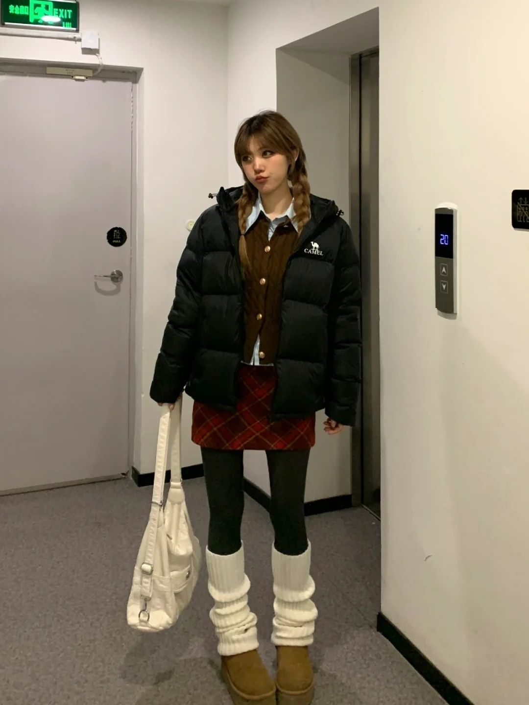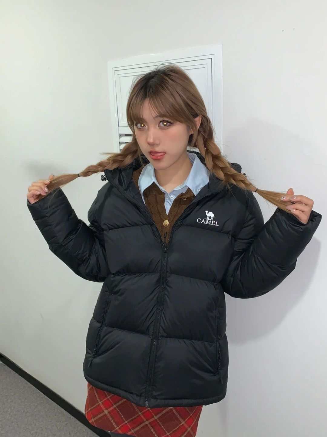 保暖的羽绒服漂亮穿搭来啦~ 黑色的羽绒服真的是冬季必备 怎么搭都不会出错 这件版型很蓬很好 也很暖和! 我里面穿了一个学员感的小套装 外面再搭上这件 真的很有韩系女高那种感觉~!