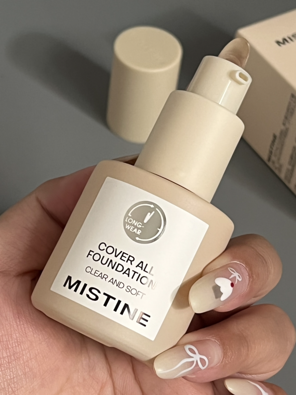 这才是适合女大好用还平价的粉底液吧 我觉得这个mistine银盾粉底液很好用诶 滋润遮瑕效果都很不错 流动性蛮好的,轻薄好涂抹 上脸就是是那种雾面奶油肌 持妆效果很不错 关键才六十多!学生党也可以轻松拿下咯