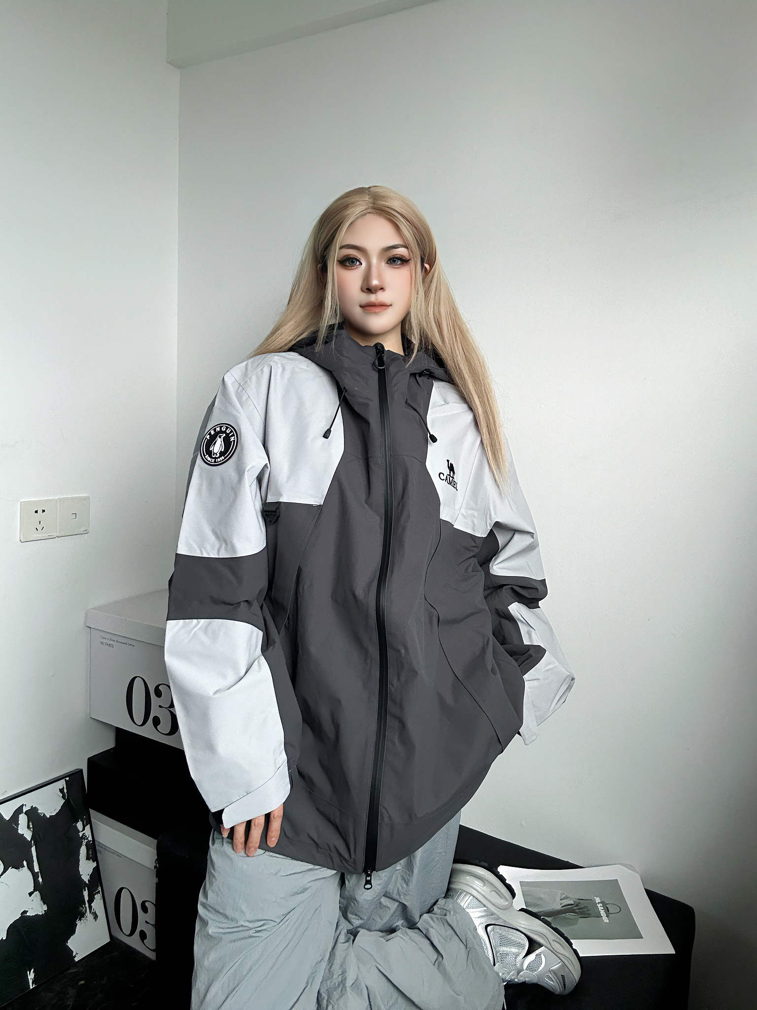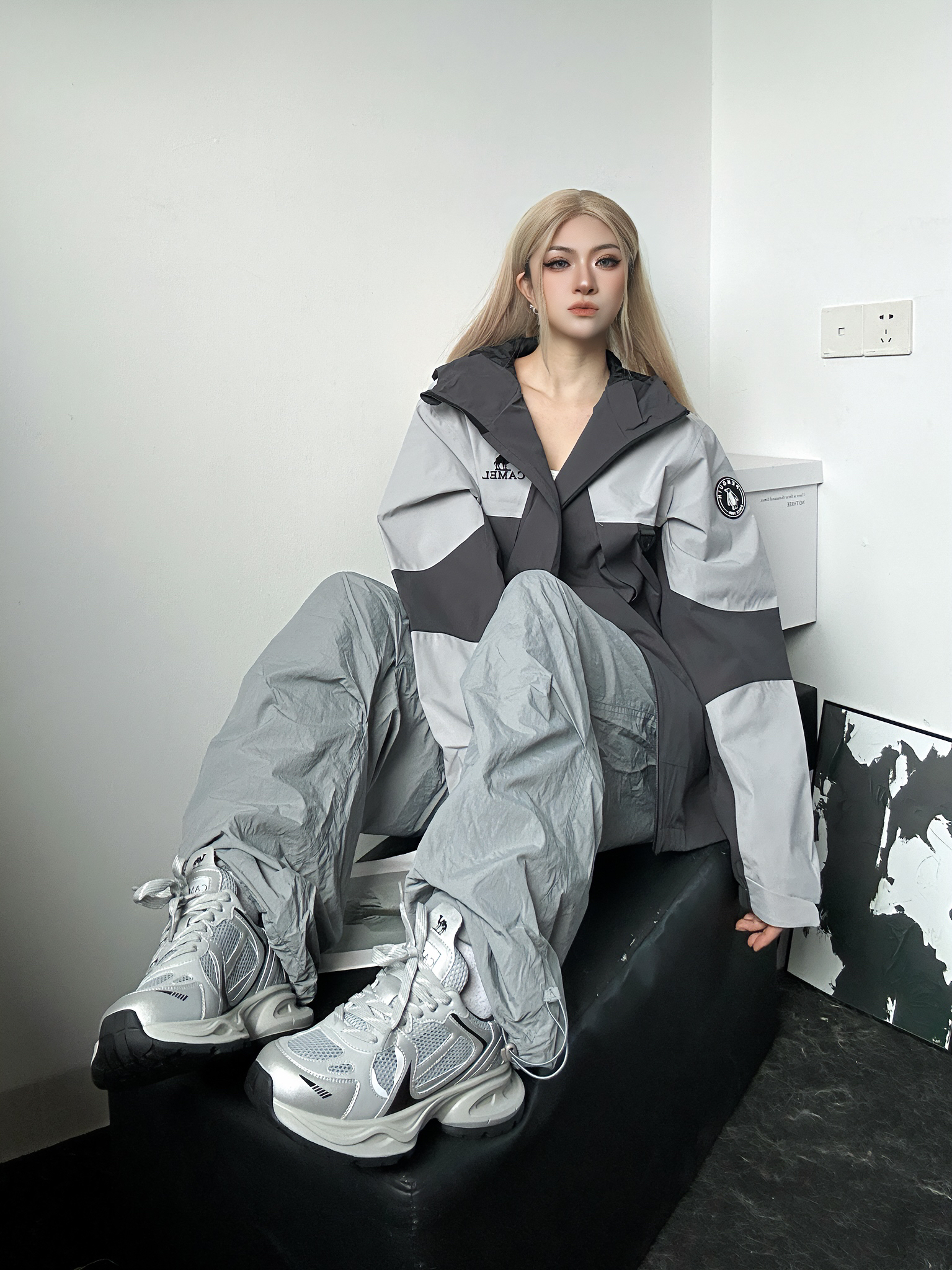 今日穿搭分享 上身灰色拼色冲锋衣来自骆驼 高级灰的拼接配色真的绝了 功能性更是没话说 不过是单层的 天冷需要自行搭内胆~ 搭配灰色系的束脚工装裤 一身灰真的很酷 鞋子同样是来自骆驼的灰色老爹鞋 厚底增高 上脚轻便 这套户外真的很帅