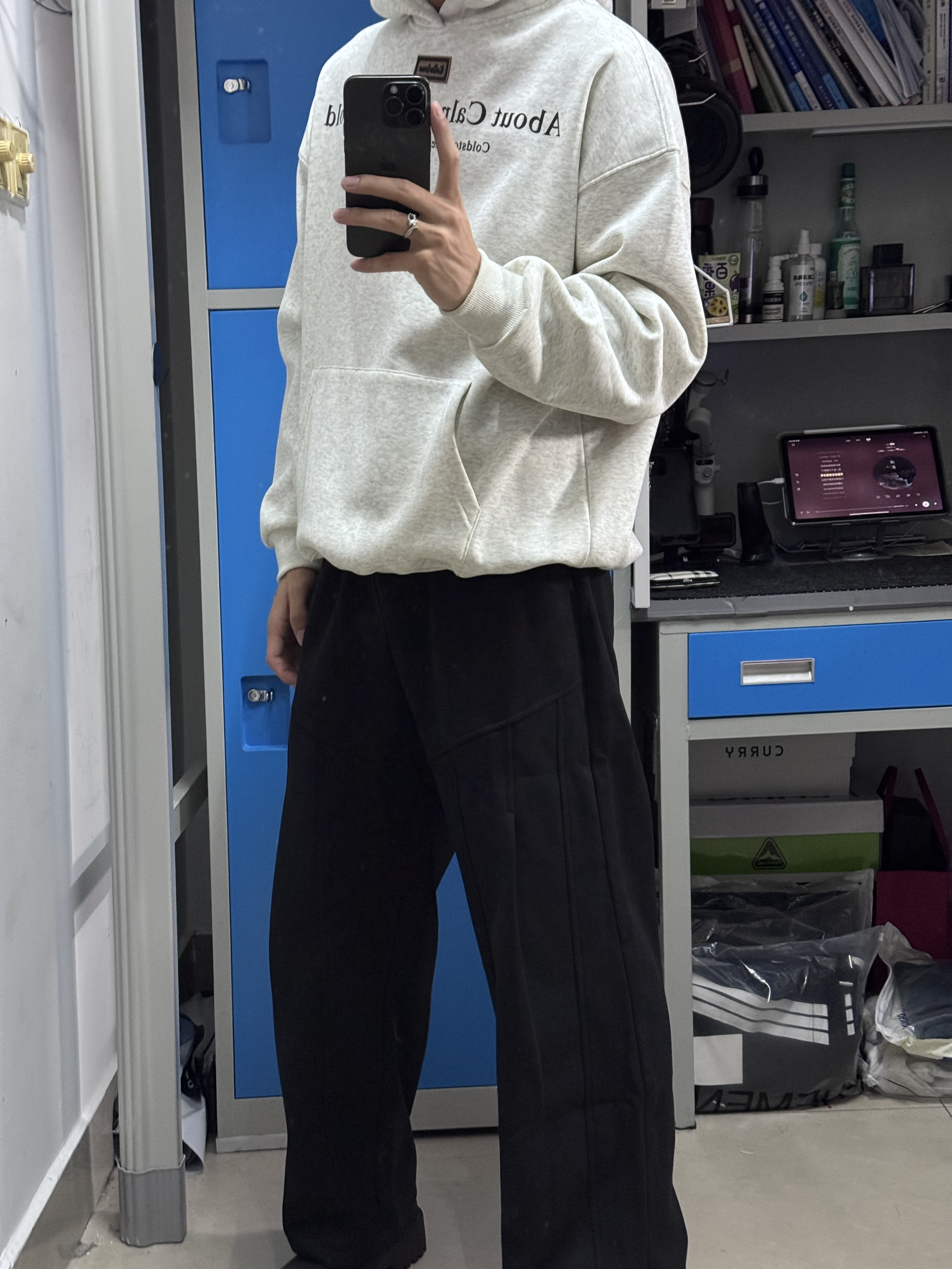 这次的联名款卫裤…侧面有两条杠的条纹美式简约的造型 别出心裁的制作1️⃣如往常的抽绳还是如此方便呢 裤子穿起来很亲肤 下摆是收紧的部分🔽 图片来源于@月月ggg