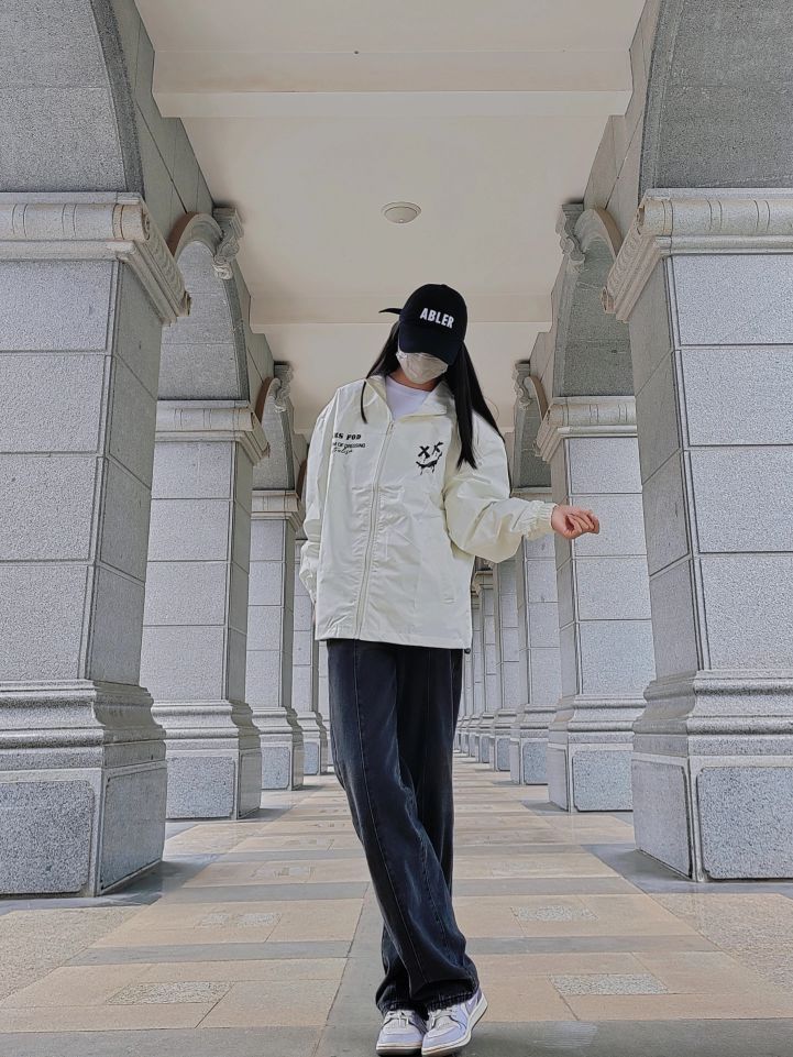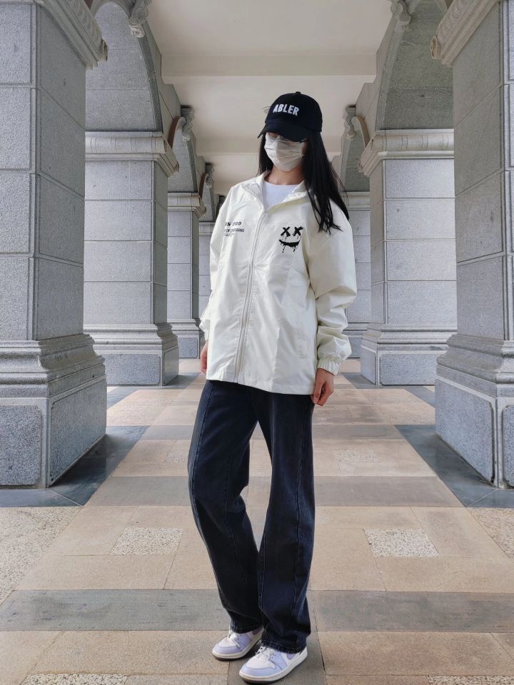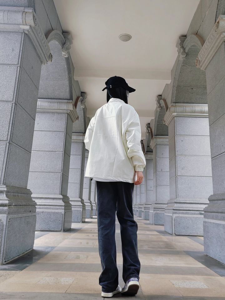 简约的美式外套搭配牛仔裤 谁懂这套穿搭的含金量 白色的外套简单缺不单调 立领的设计增加了帅感