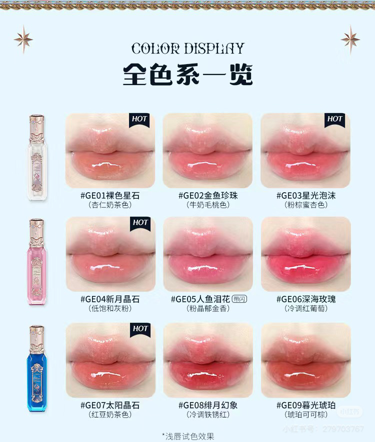 本篇笔记关联了花知晓 月光人鱼宝石系列唇釉 清透不黏腻 3.5ml GE02金鱼珍珠等商品,为用户提供真实的使用体验和购买参考。