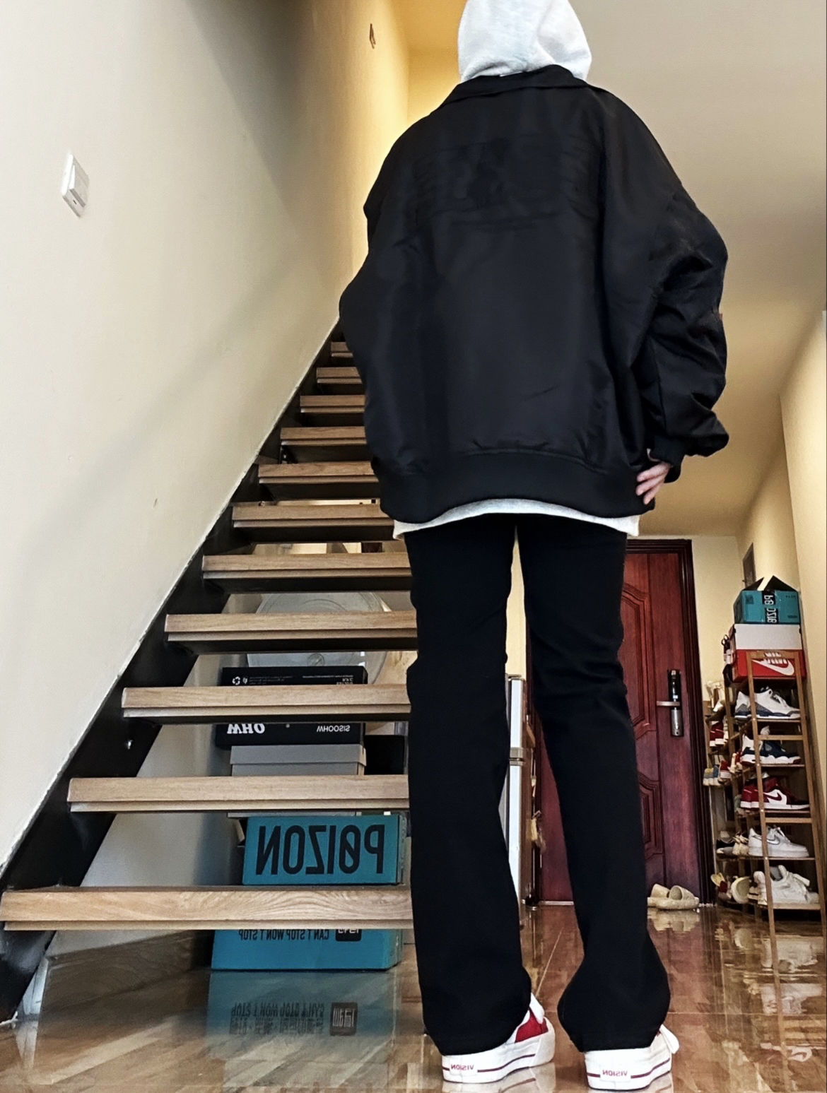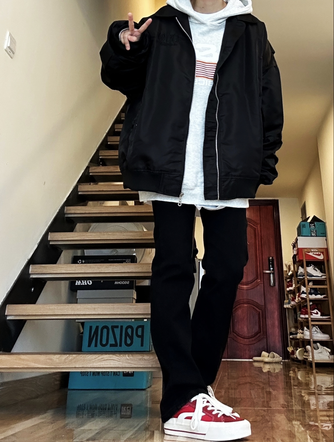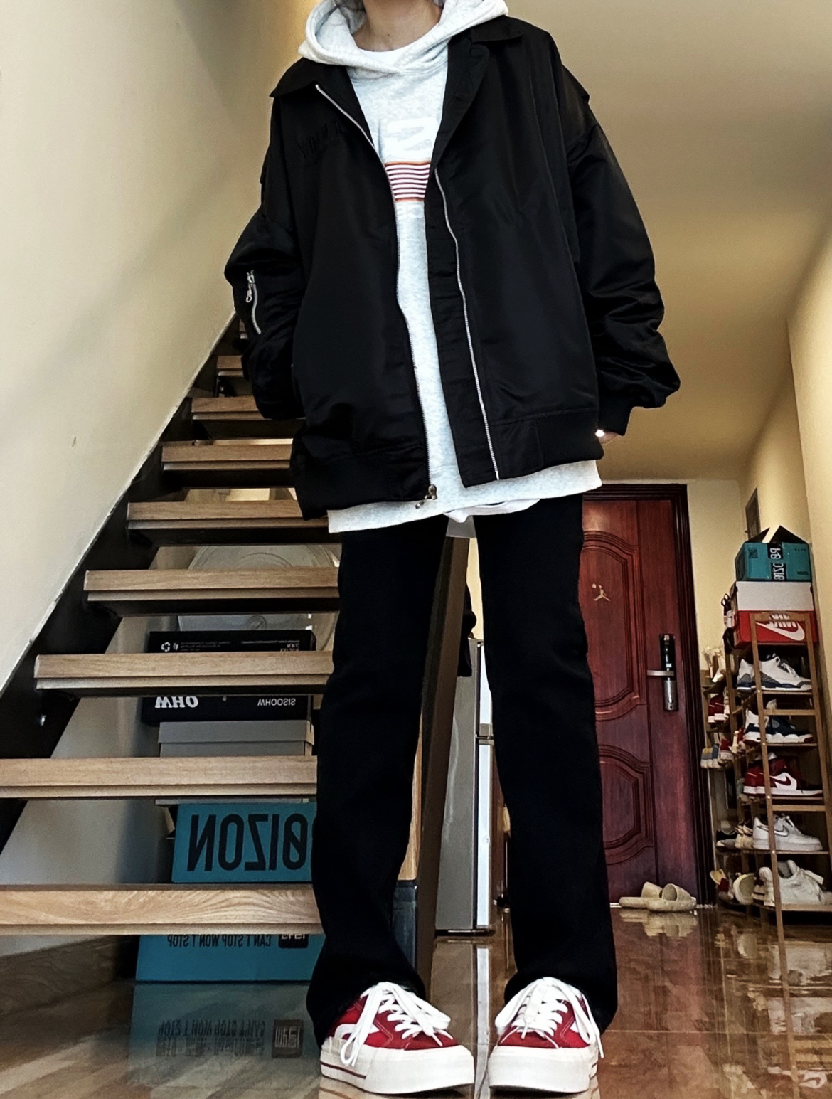秋冬必不可少的帅气单品必须得是夹克呀!上身这件夹克很不错!是我喜欢的宽松版型里面穿厚 厚卫衣不显臃肿,还做了多处细节,前后都有logo设计黑色也不显单调,男女穿都好看!🥰