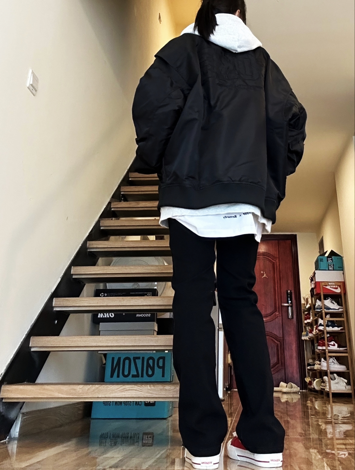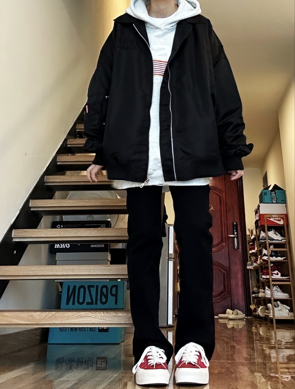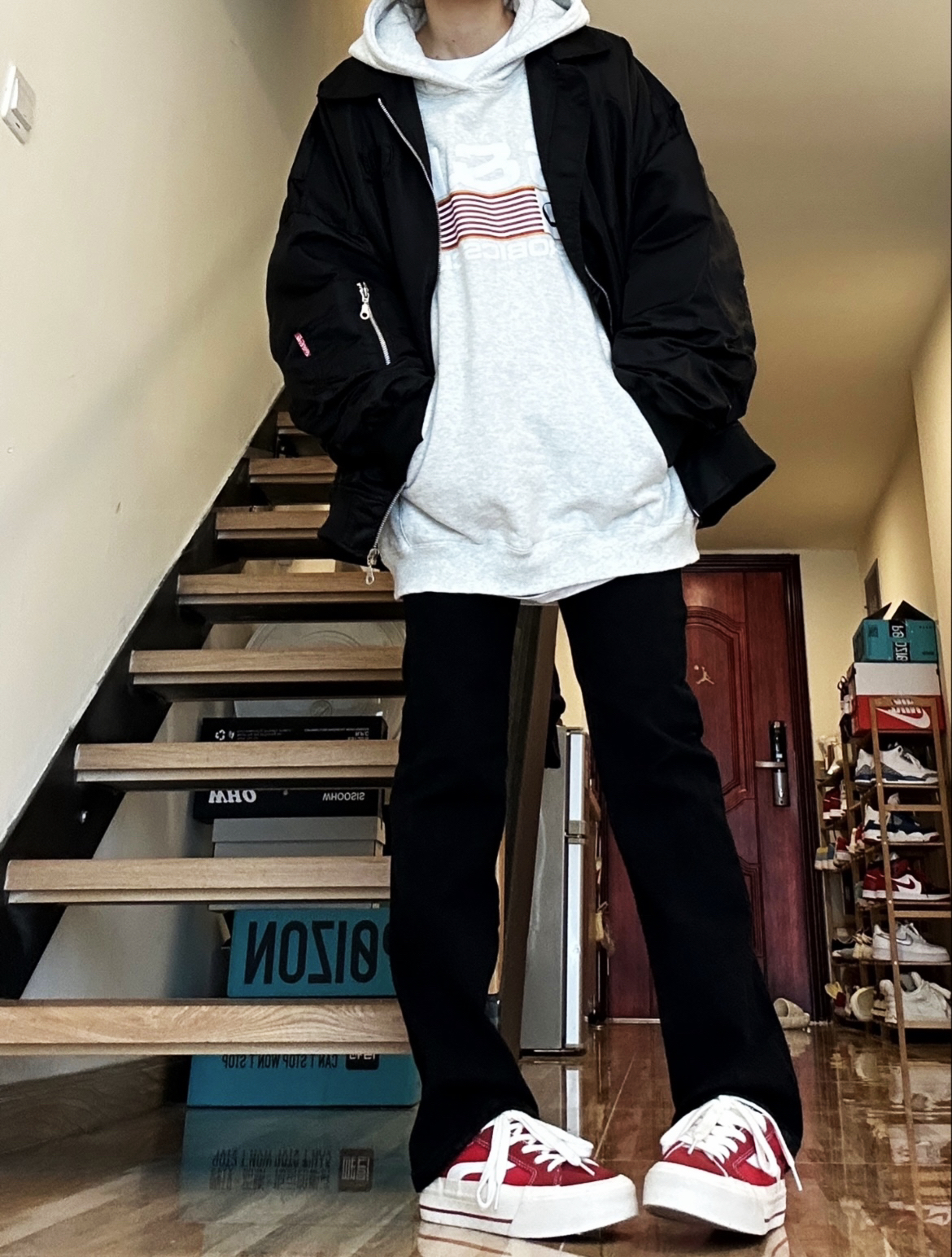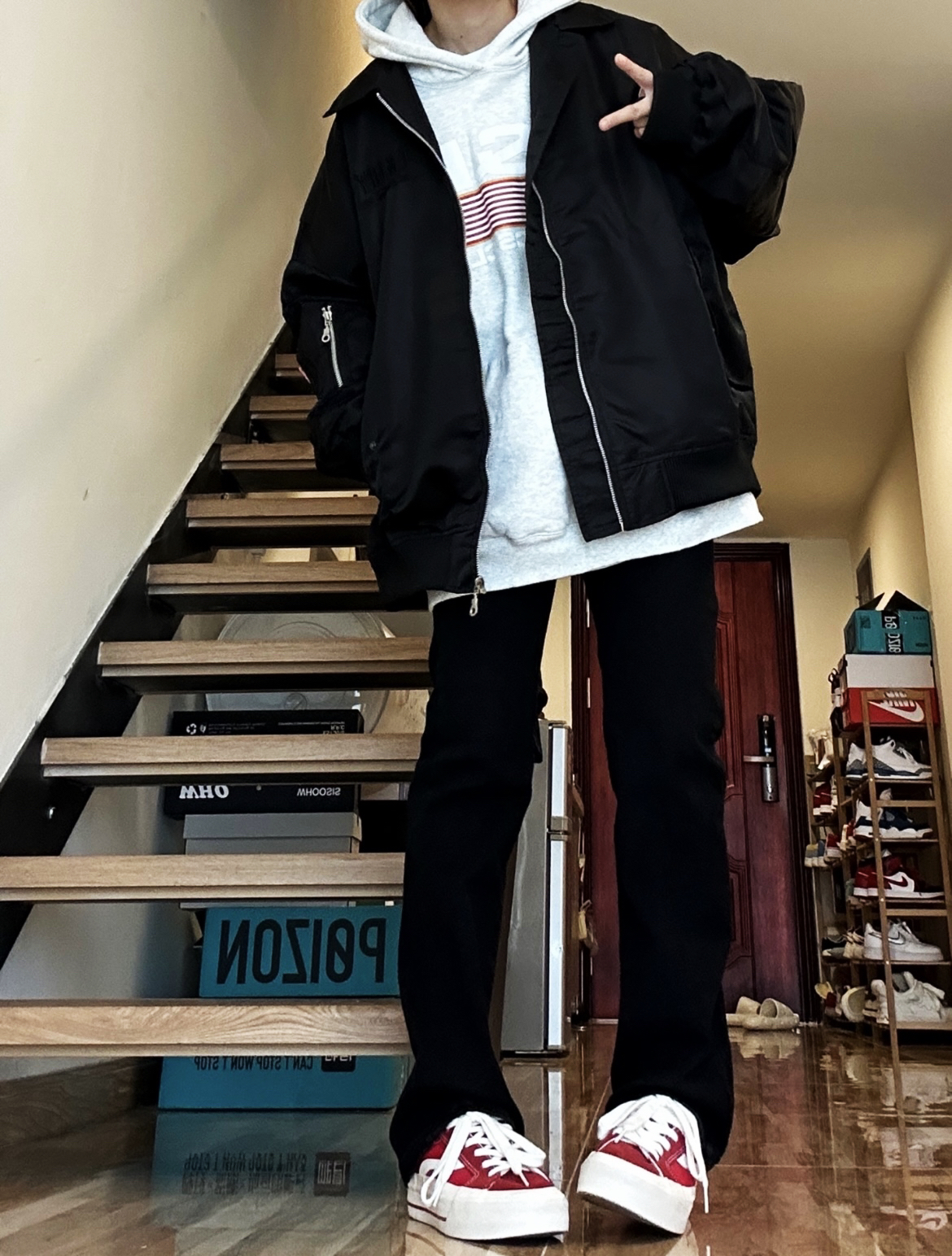 秋冬必不可少的帅气单品必须得是夹克呀!上身这件夹克很不错!是我喜欢的宽松版型里面穿厚 厚卫衣不显臃肿,还做了多处细节,前后都有logo设计黑色也不显单调,男女穿都好看!🥰