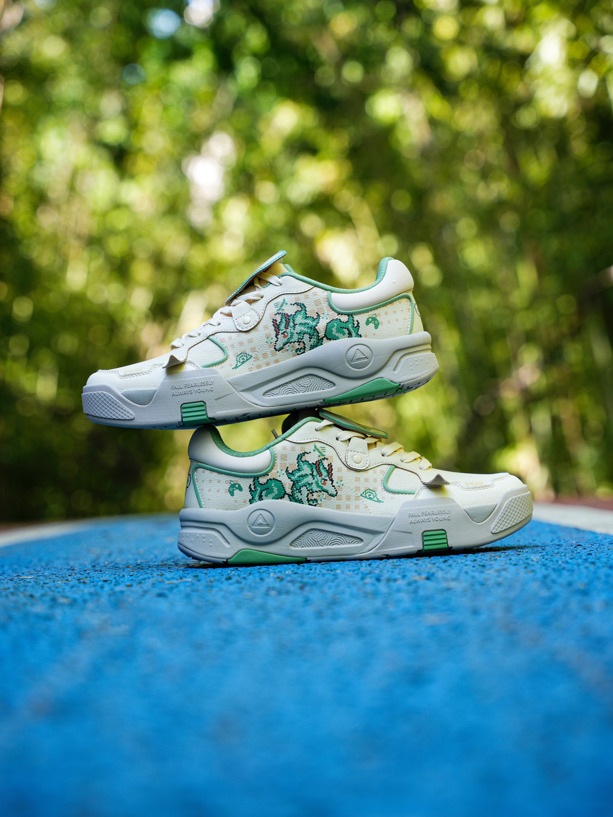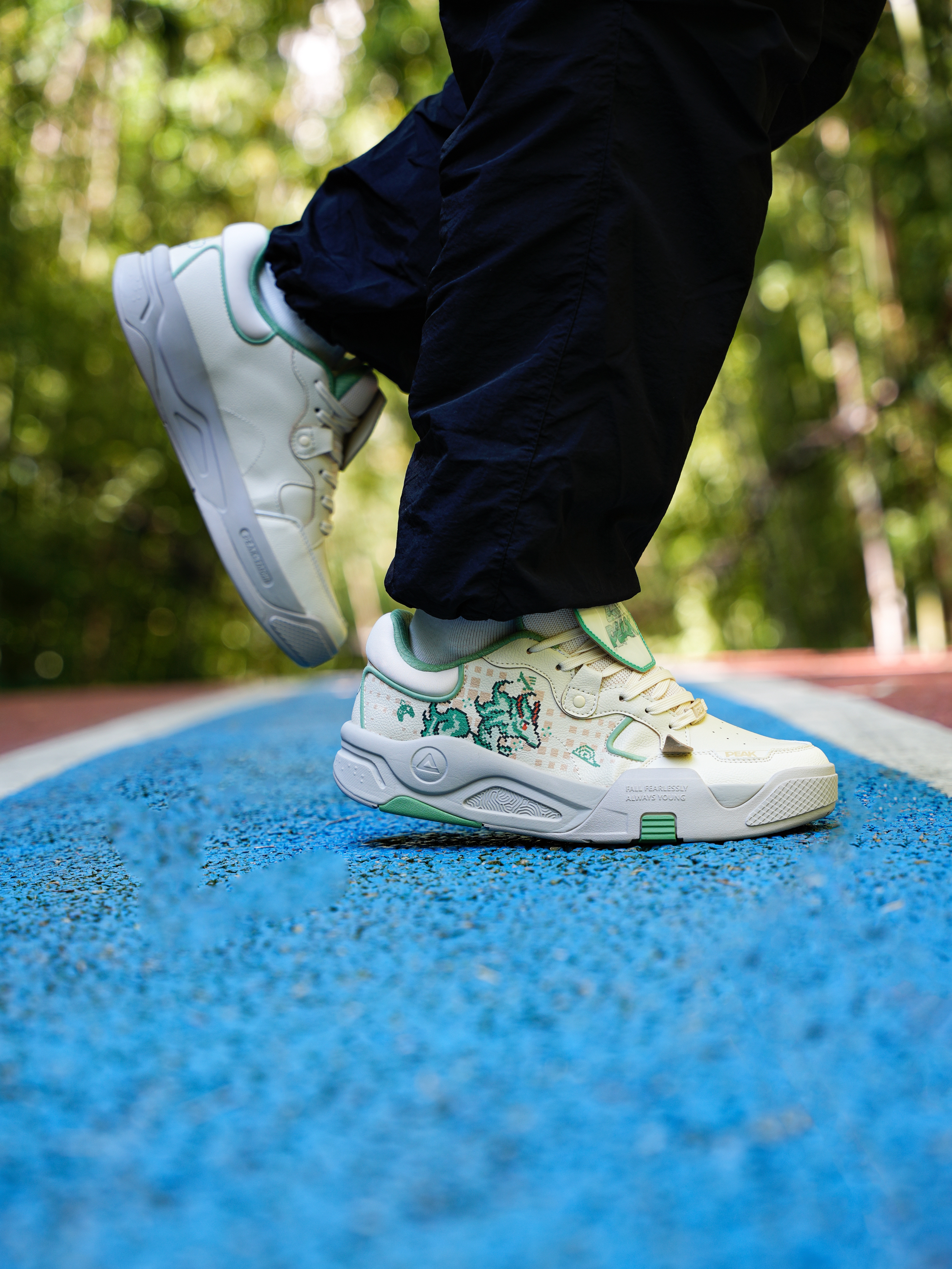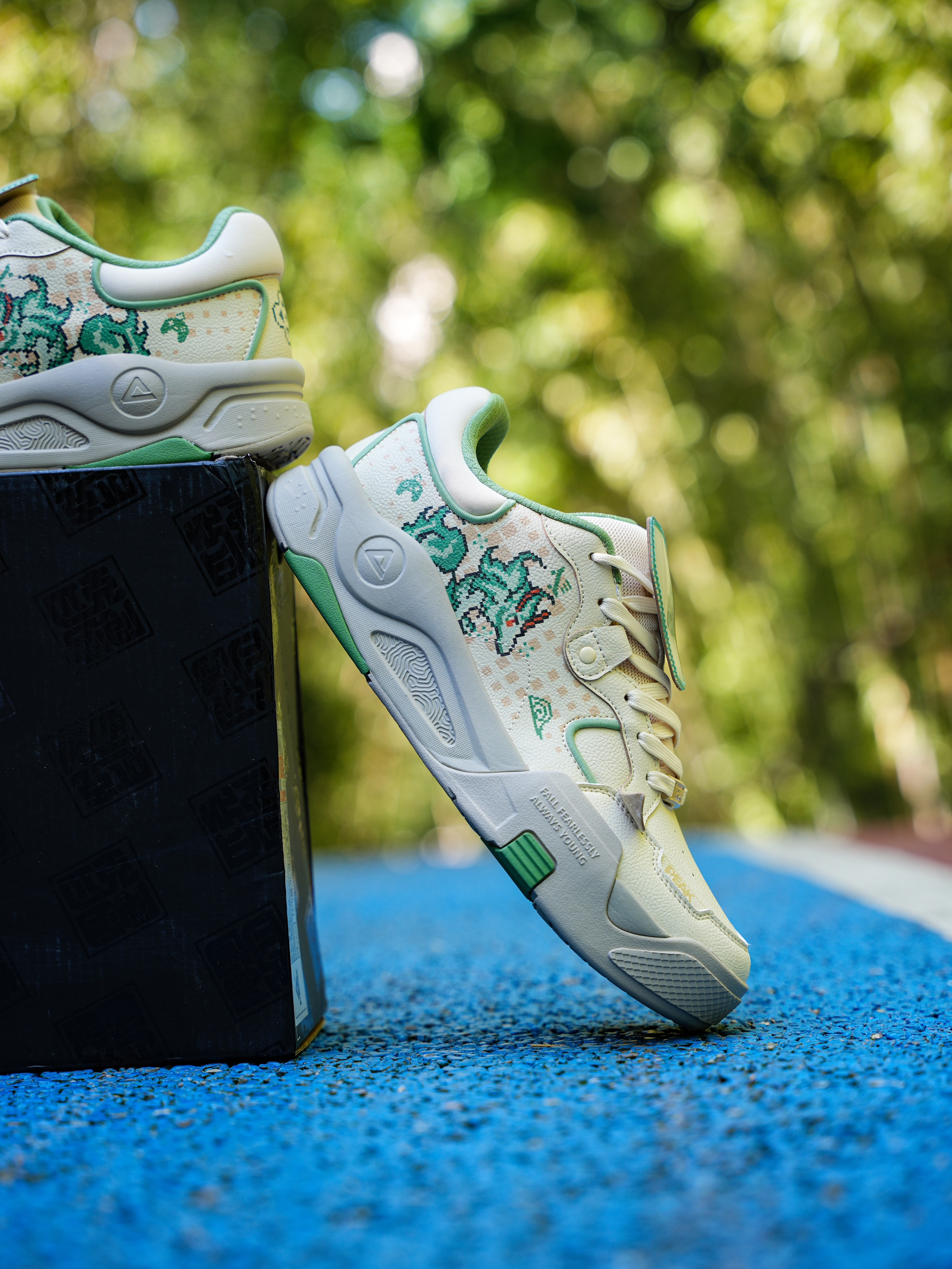 匹克 像素四象 龙年🐉主题 青龙板鞋! 把像素游戏🎮与闪卡可拆卸放在鞋上这个设计谁想出来的呀! 鞋舌可拆卸的鞋标就是小时候玩的卡!变换位置可看不一样图案 太有意思啦!龙图案VS匹克logo! 其次鞋身上也融入龙年元素!搭配像素纹路很像游戏机风格!复古感拉满! 上脚也是蛮舒服百搭的!鞋舌与脚踝填充厚实!包裹性不错 搭配黑色也是比较不错! 尺码不偏,正常即可!