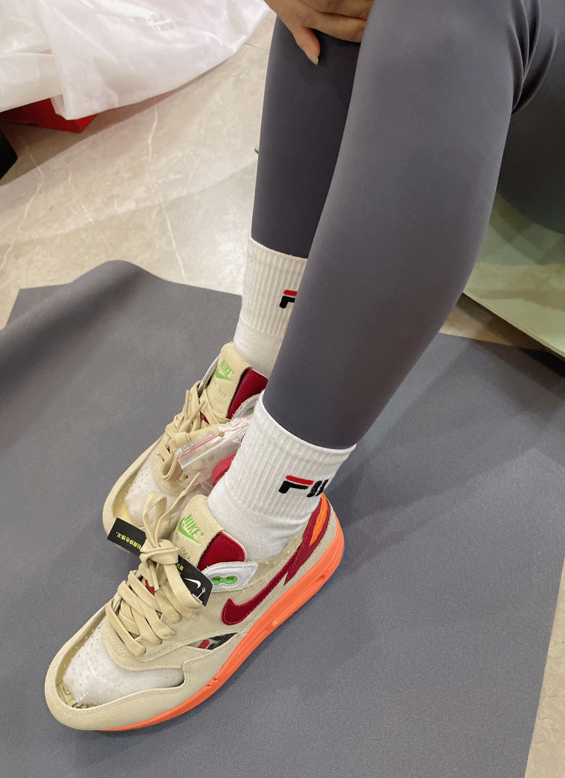 👟球鞋名称:CLOT x Nike Air Max 1 kiss of death复古 反毛皮合成革TPU减震防滑耐磨透气包裹性支撑轻便 低帮 休闲跑步鞋 男女同款 棕红 🔍分享理由:颜值够高,多种材料运用,气垫刺绣透明大底都有,特殊鞋盒附赠鞋带,很值的。 🤔整体感受:脚感不错,透明鞋面可以展示袜子,赤脚穿容易起雾,不宜剧烈运动,多材料拼接面特别是透明面可能开裂