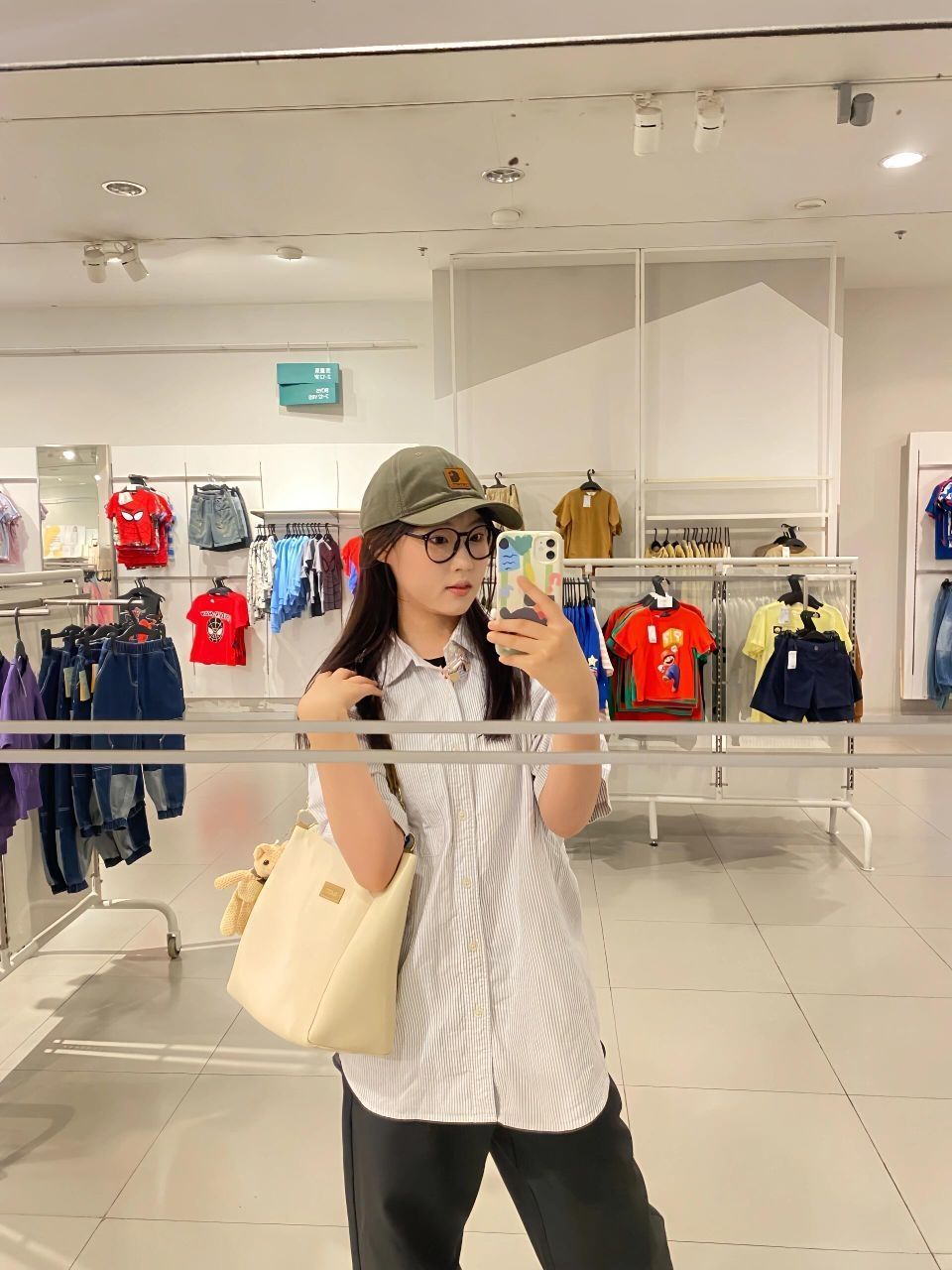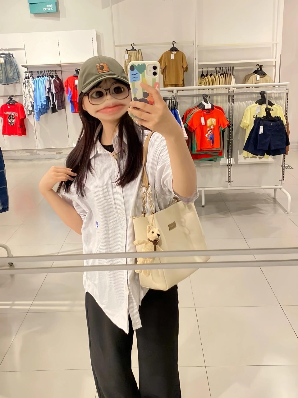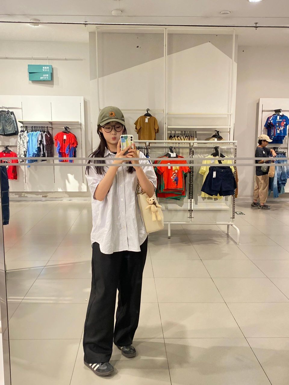 乖乖的一身怎么样嘿嘿!!✌🏻✌🏻 VINEY💼好喜欢这个搭配 随意又舒适~🤤 宽宽松松的穿搭特别适合现在的夏天!因为凉快!!👀 包包和好可爱~小熊玩偶我好爱!