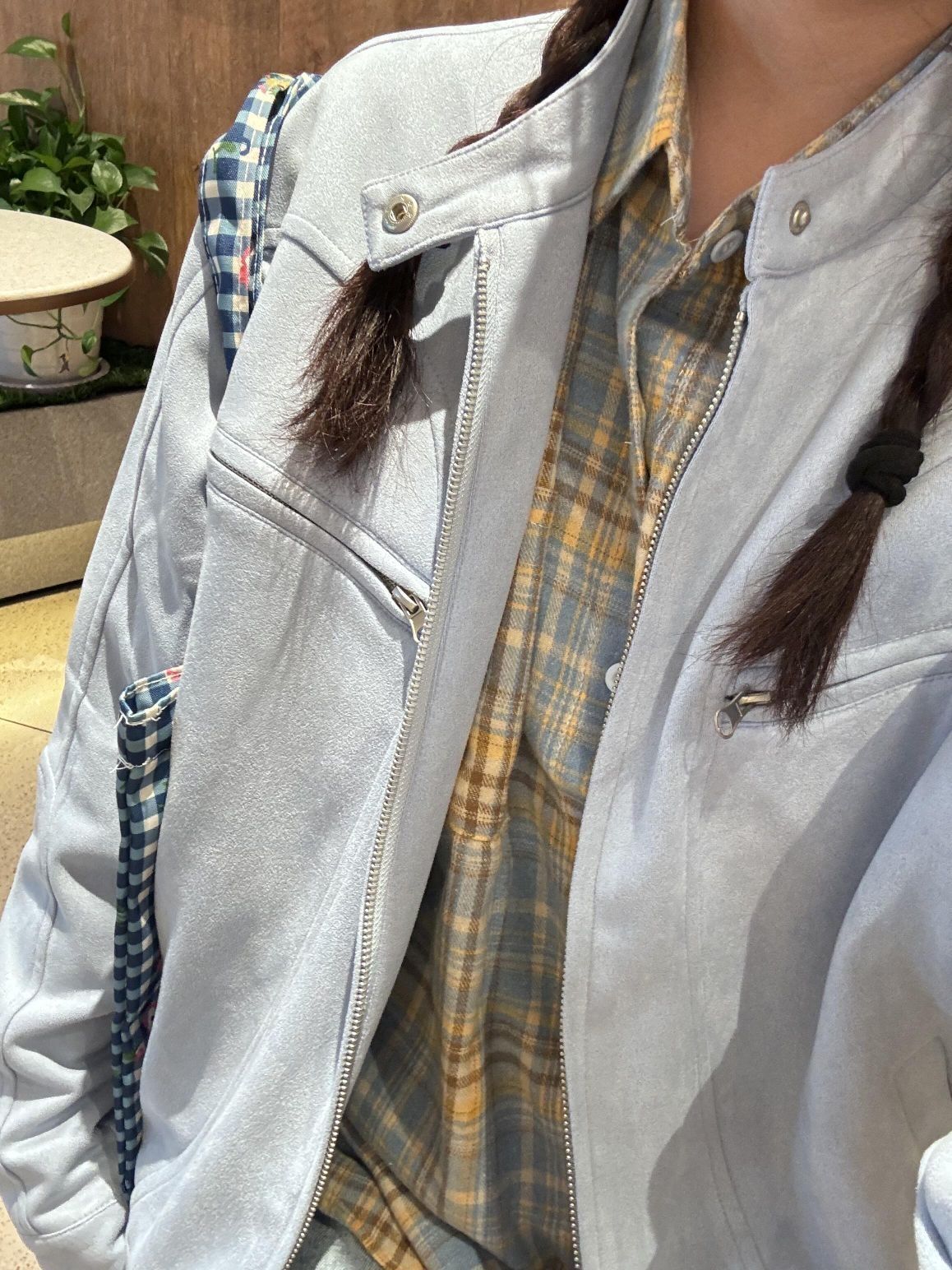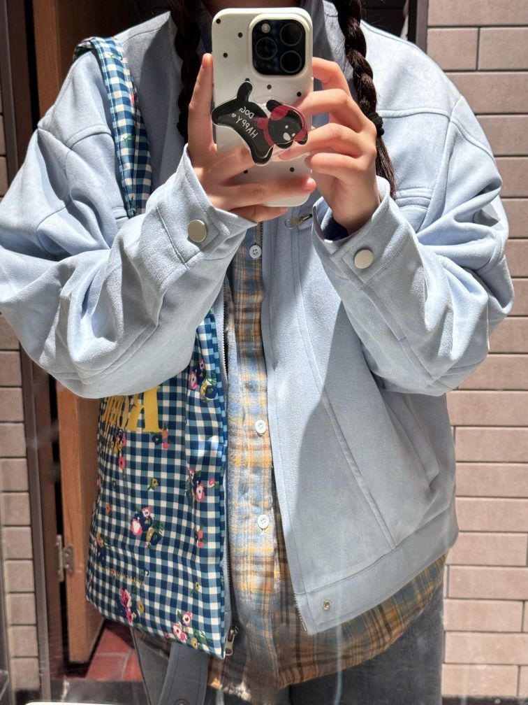 🐰好喜欢这个浅蓝色的小外套! 🌈尤其是里面的格子衫 太好看啦~ 🥰像这种浅色系的衣服我是见一个爱一个哈哈!