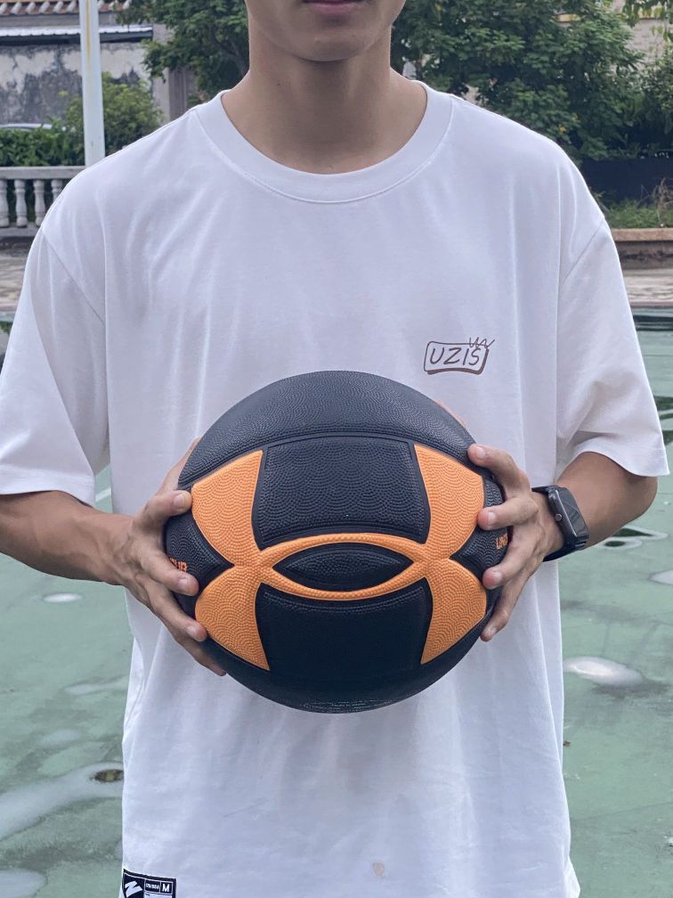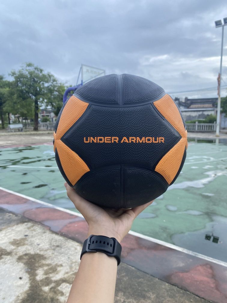 今天给大家推荐一款我最近日常训练的篮球,这是#Under Armour 的大logo篮球。 整体篮球的设计是黑色的球身➕上橙色的安德玛大logo,在球场上的辨识度也是挺高的。 这款篮球虽然是橡胶材质的,但是丝毫都不会影响我的手感,打起来弹性还是不错的,以及可以让我轻松的单手抓球。 颜值挺高,男女生都可以使用,室内外也是通用的。