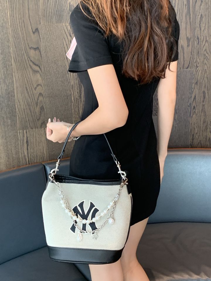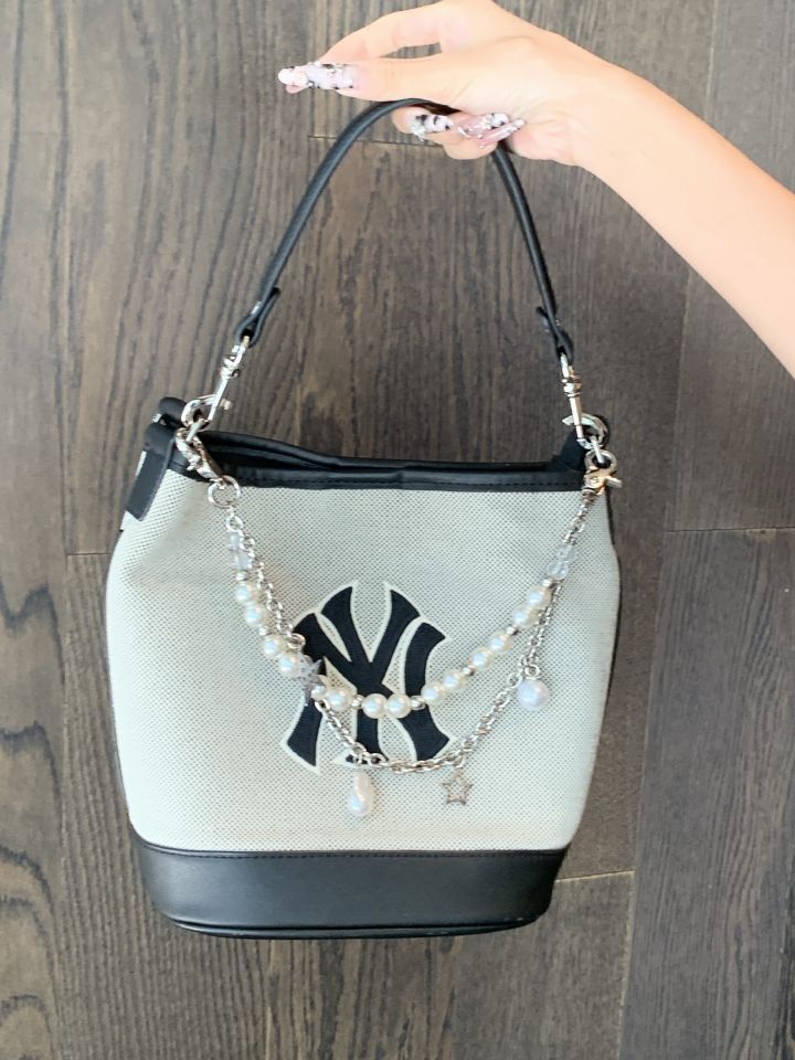 MLB 水桶包实在是太迷人了 这么好看可不能浪费,必须改造 换上合适的手提带,随时都能优雅地拎出门 再加上装饰链点缀,包身不再单调,充满了时尚魅力