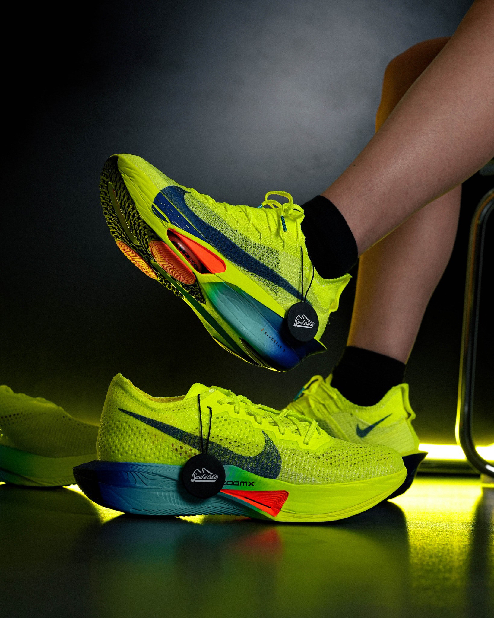 Nike ZoomX Vaporfly 3快速包伏特 // Nike Air Zoom Alphafly Next% 3 Volt Concord 用Nike ZoomX Vaporfly和Nike Air Zoom Alphafly打破你的个人最佳鞋子表现时代!为竞争灵魂而创造,这两只鞋在比赛当天提供最高的表现。Upper Flyknit充满活力的黄色配上清新的橙色口音和符合人体工程学的设计让你...