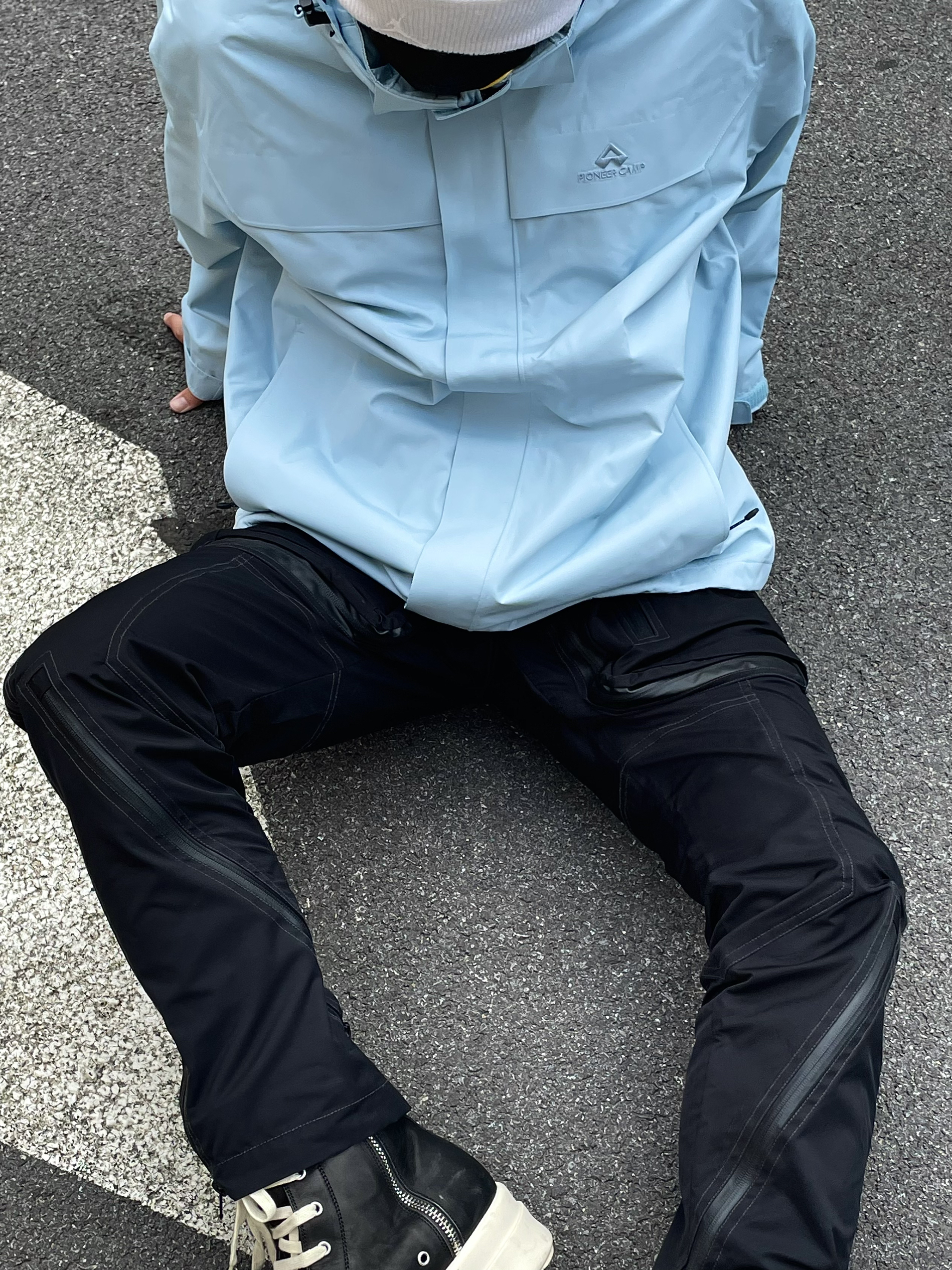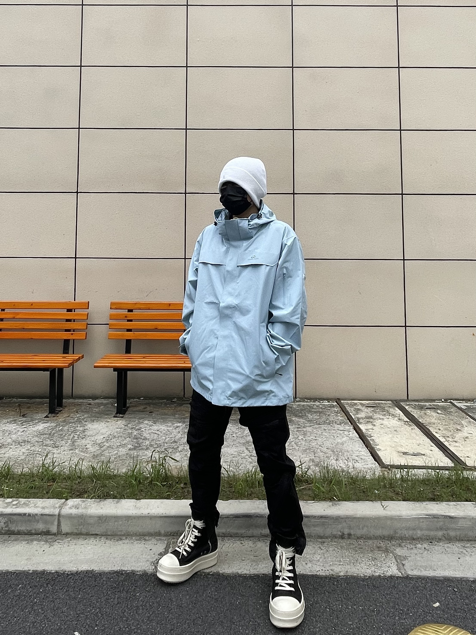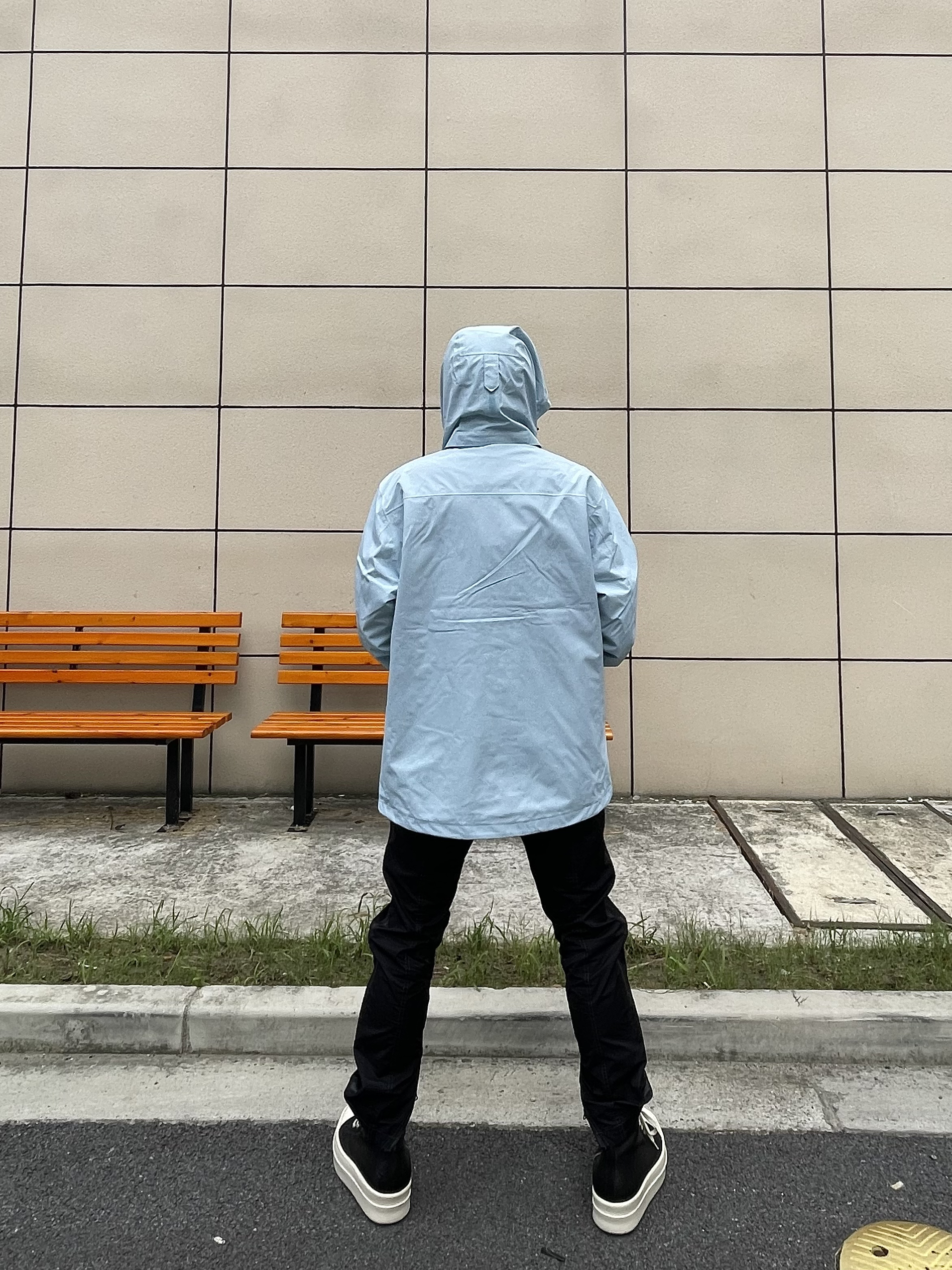 大家好!今天是顶男小猪🐷! 今天出门包顶男的,所以选择一件蓝色的冲锋衣~🚶♀️ 整体冲锋衣的材质是一个防水材质☔️,刮风下雨🌧️的时候它就是利器!🧖♂️ 直筒版型确实有型,上身不管是凹造型还是日常通勤出门都嘎嘎帅^_^🙋
