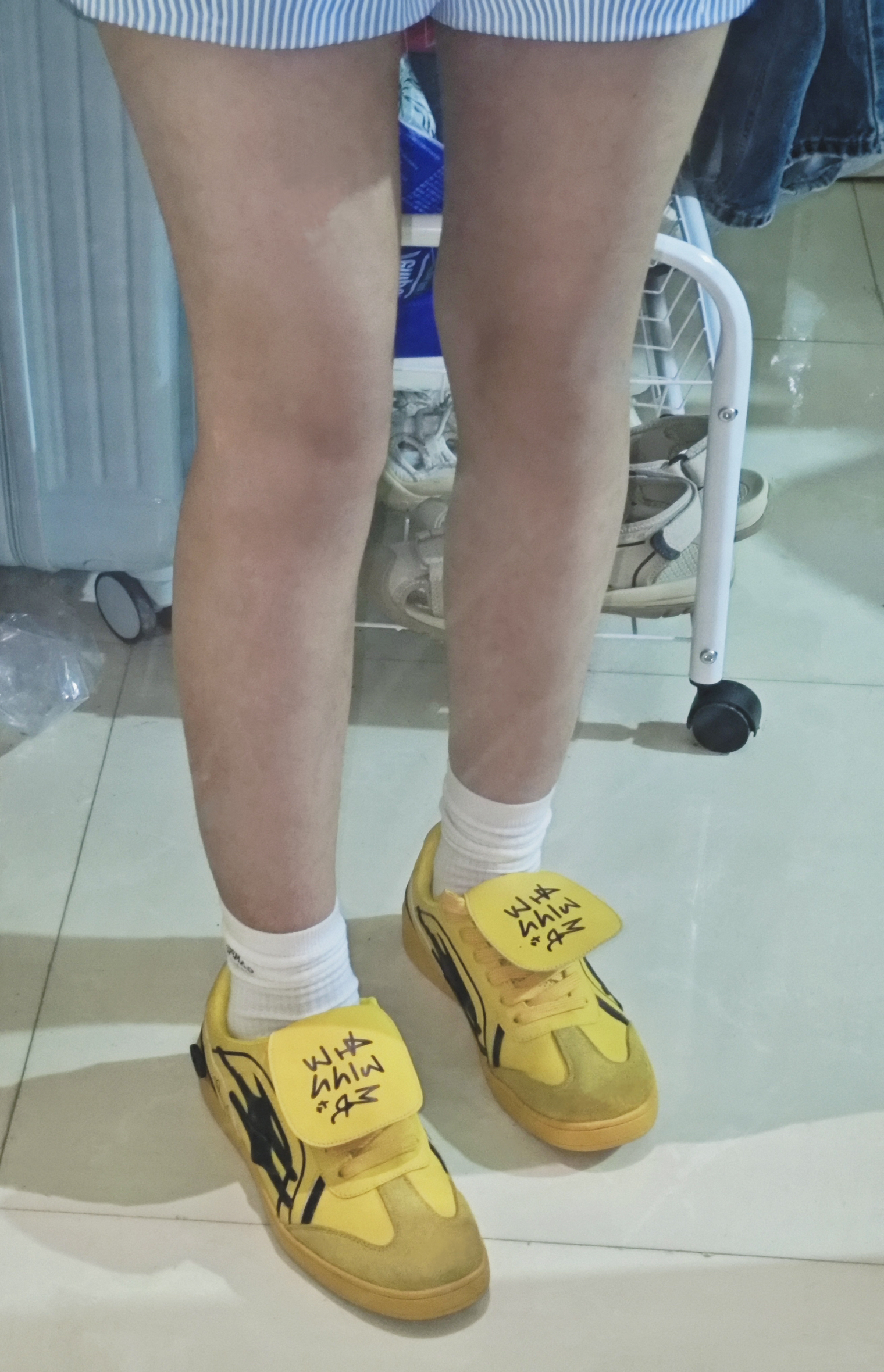 这个黄色德训鞋我的近期最爱,超级好看,这个夏天好喜欢这种稀奇古怪的颜色,好好看。 穿上很软,不会特别硬,国庆出去玩,好穿又好看,嘎嘎出片。