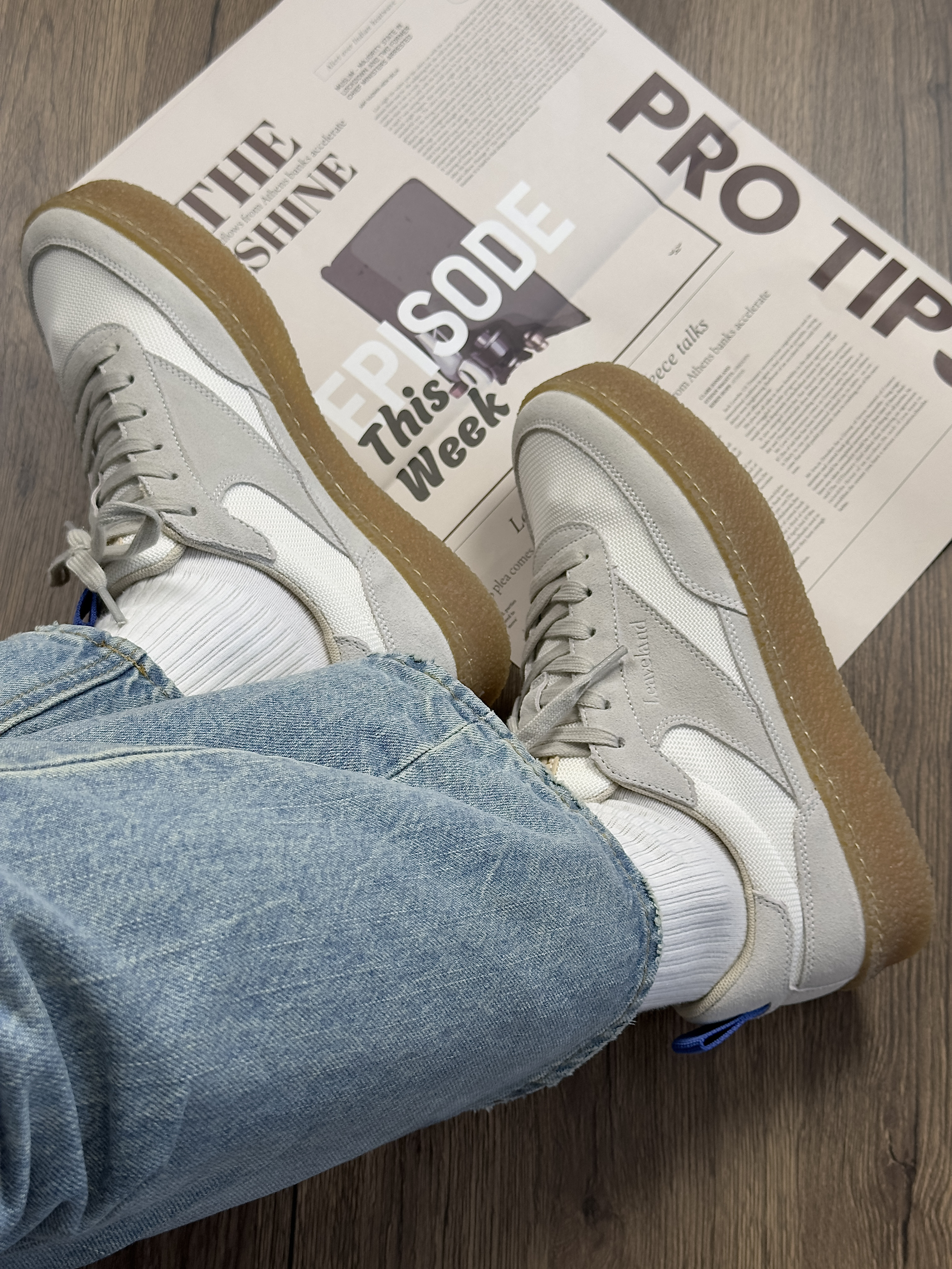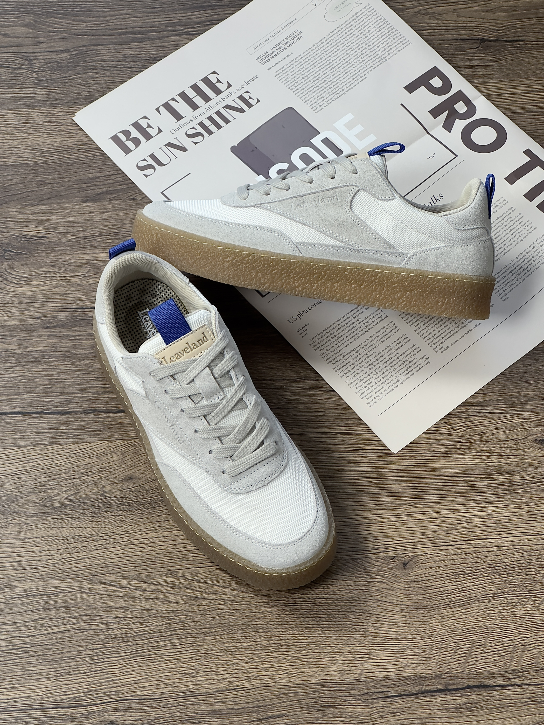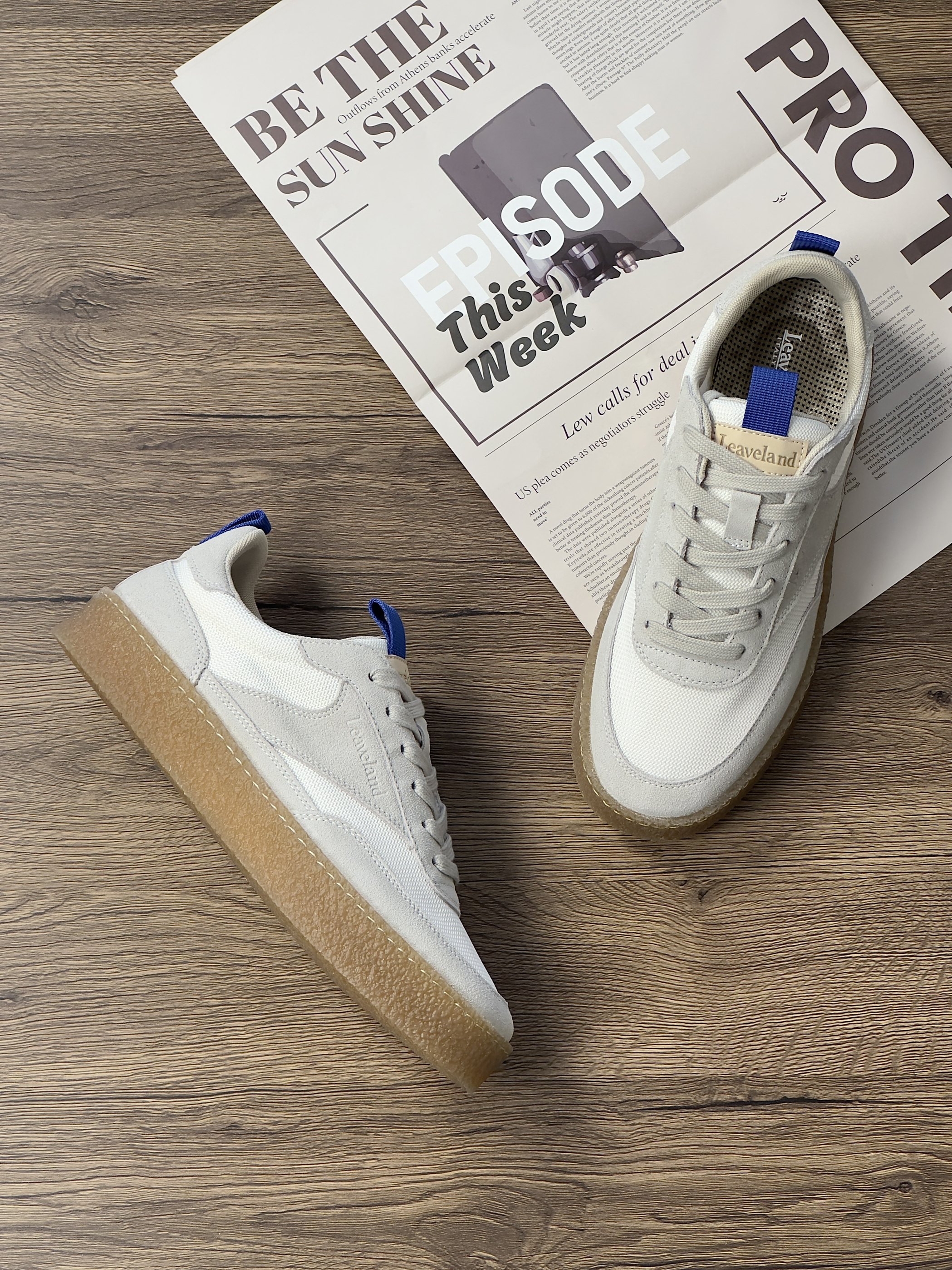 👟:LEAVELAND枫叶 拼接设计休闲德训板鞋 男女同款 白灰 hello,这里是陈白羊🐑!今天给大家分享一款最近敲喜欢的LEAVELAND德训鞋 TA的鞋面整体由白色🤍为主调,搭配上浅灰色🩶的框架,以及氛围感满满的生胶色外底,在翻毛皮材质的衬托下,给人一种即复古又很干净清爽的感觉。并且在鞋面加入大量的网眼,即使长时间穿着也不会感到闷热。 要说最吸引🤩我的地方,那莫过于外底超大号的透明字母...