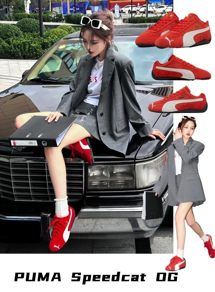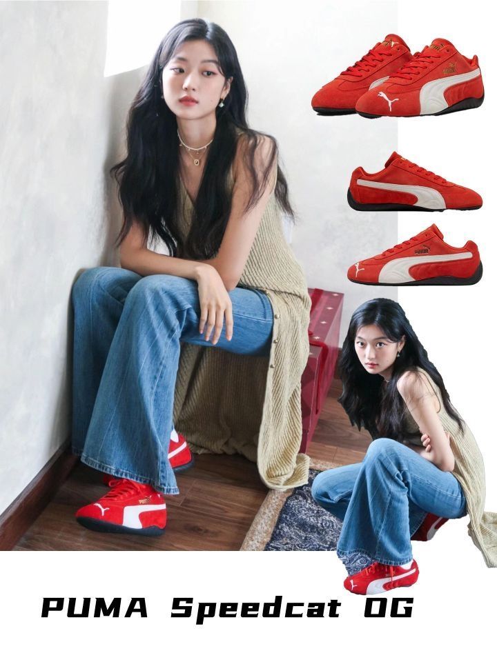 🏎️⭐谁的鞋柜还没一双复古薄底运动鞋了?今年这种复古风潮的鞋子可太🔥了,Puma Speedcat可以说是元老级复古跑鞋了! 🏎️⭐内娱女明星上脚,Rose、周扬青、宋妍霏、孙千、天曦薇等女明星上脚的红色也太好看了,奚梦瑶pick的黑色款也是复古前卫,时尚感拉满~ 🏎️⭐特别是这双红色~色彩碰撞这么有趣又有活力,复古又时髦!日常穿深色系穿搭用做亮色单品点缀!