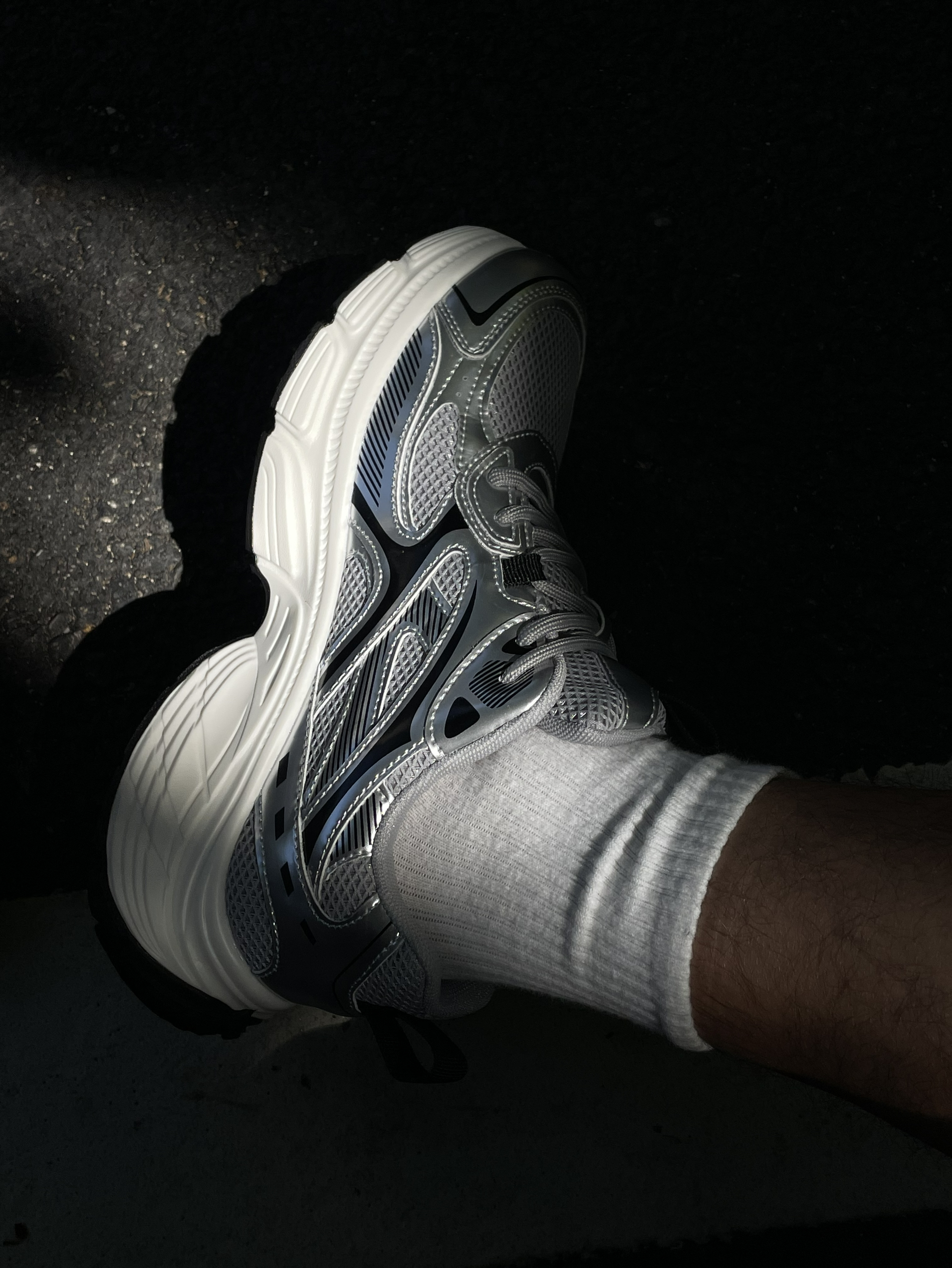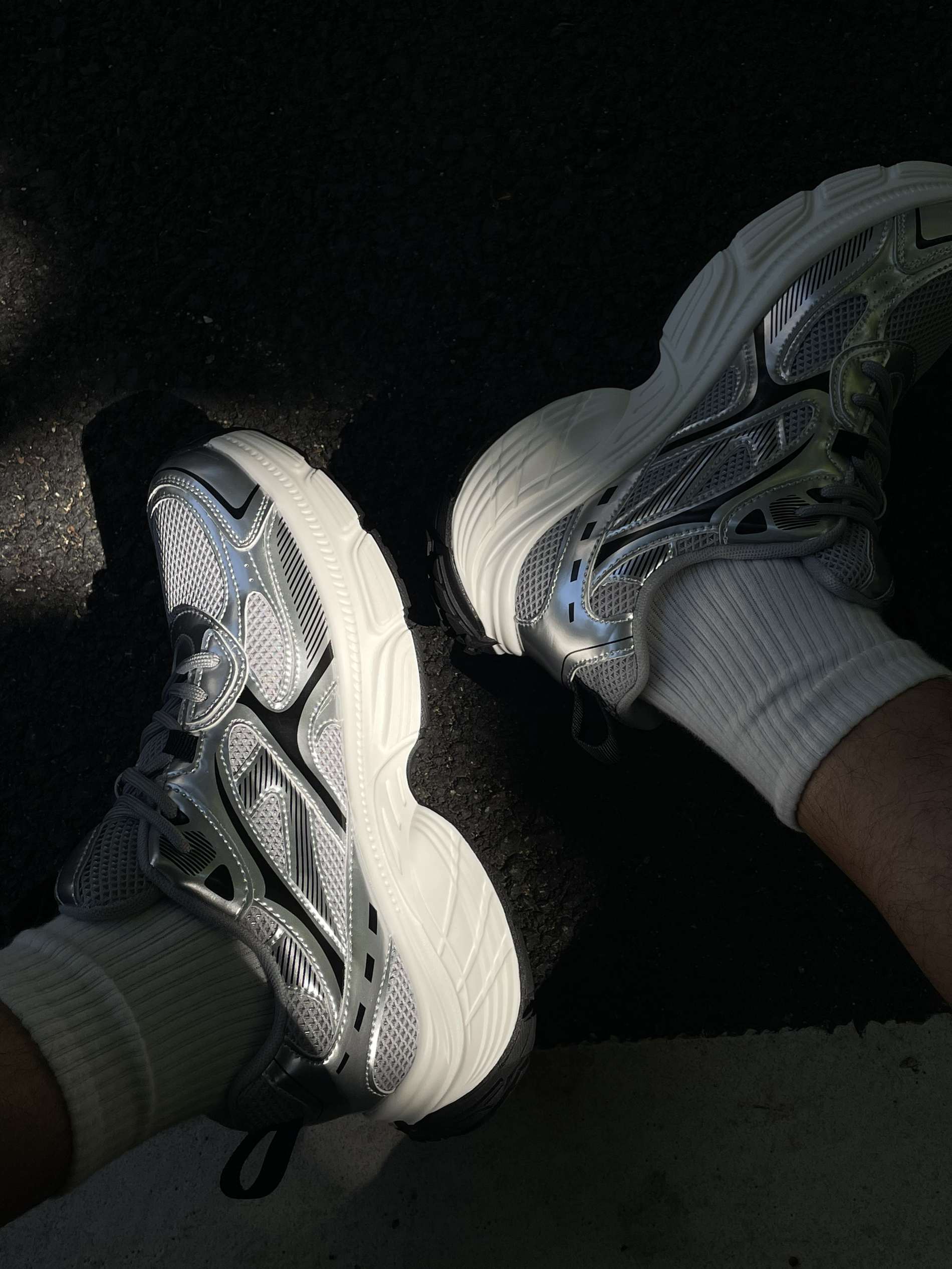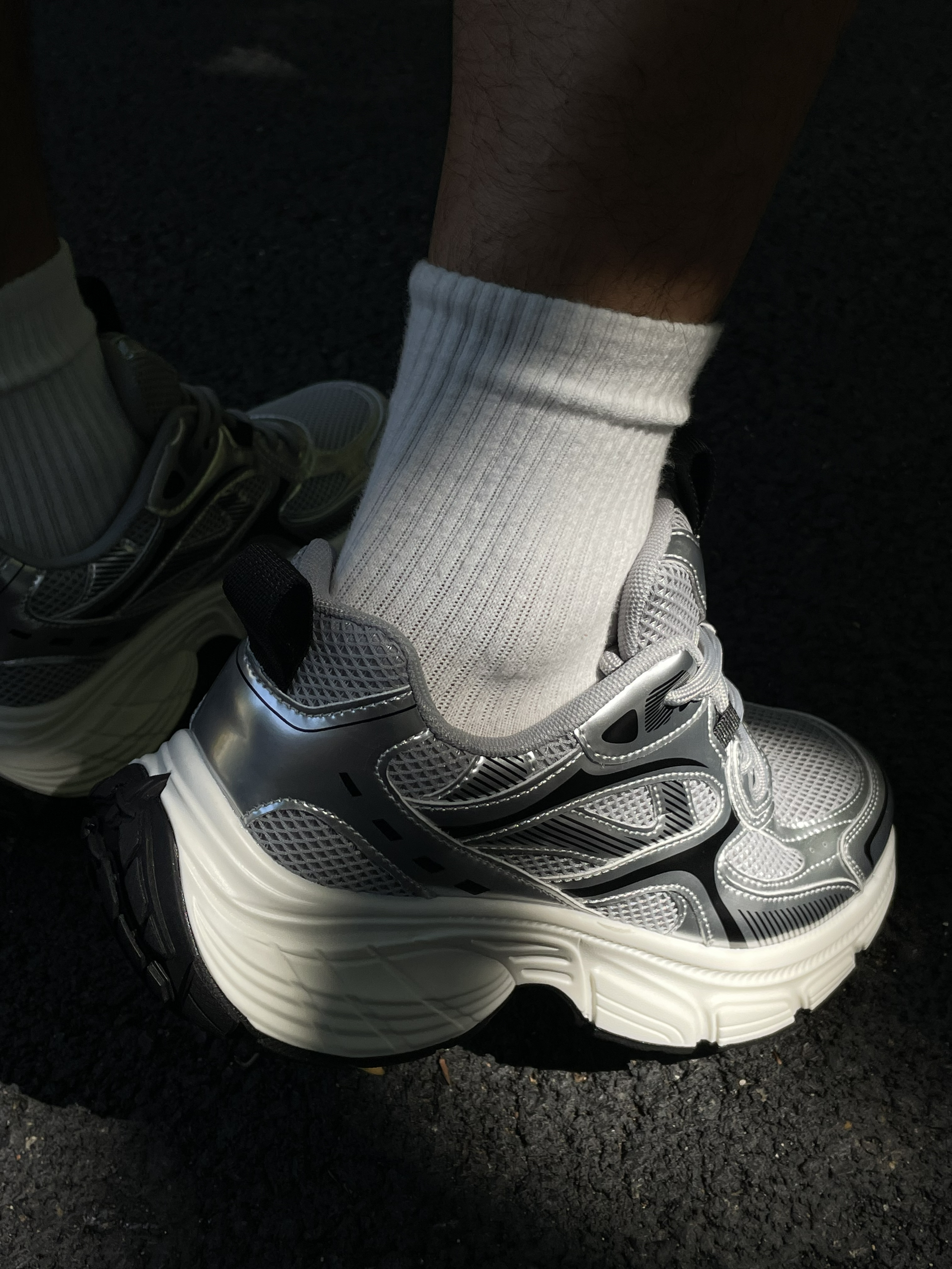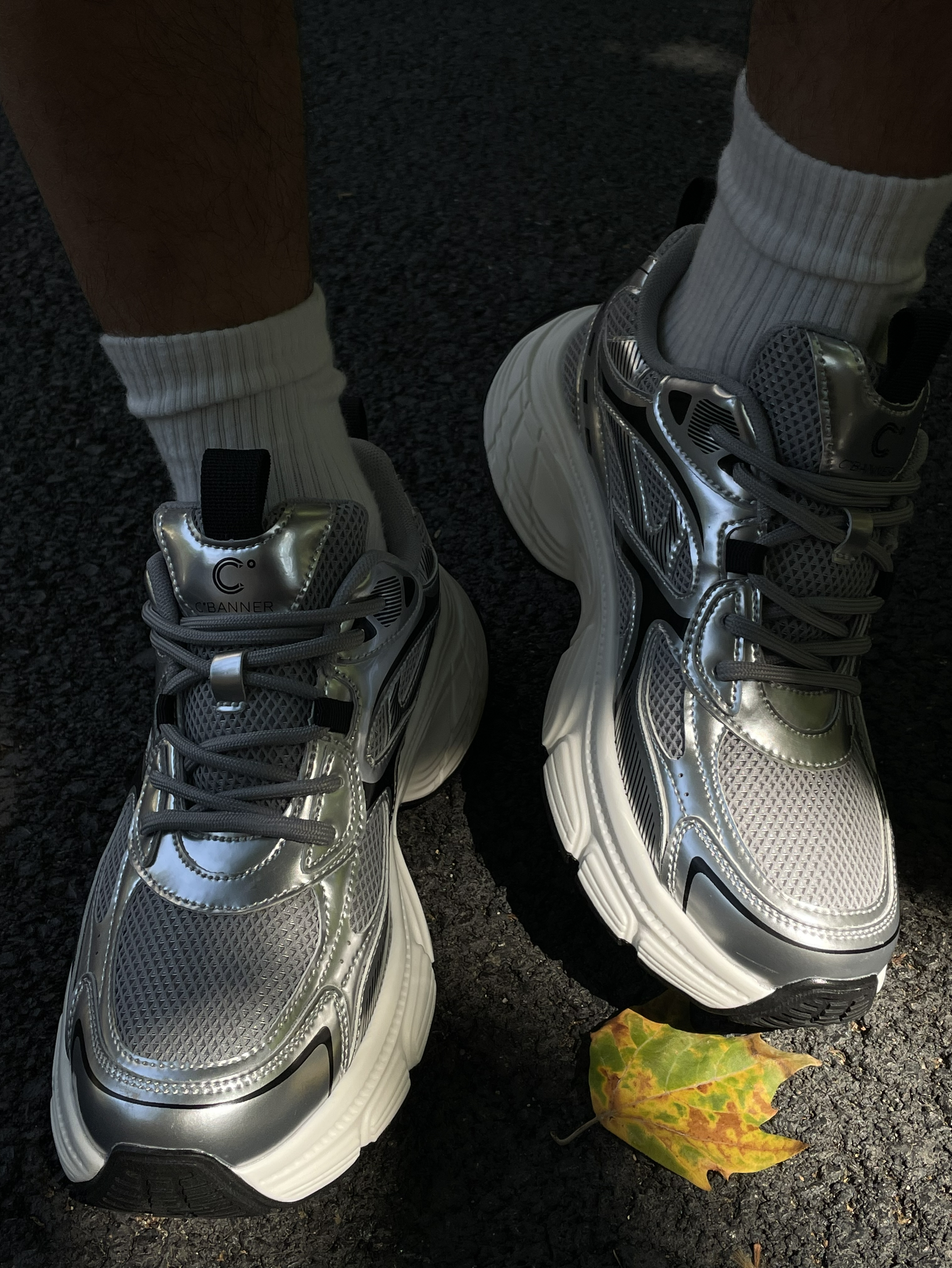 男女同款,很有质感。小小增高效果有的说,脚感舒适织物面料柔软舒适透气不闷脚。银白配色时尚感挺强的。出门随性搭配(◍•ᴗ•◍)!