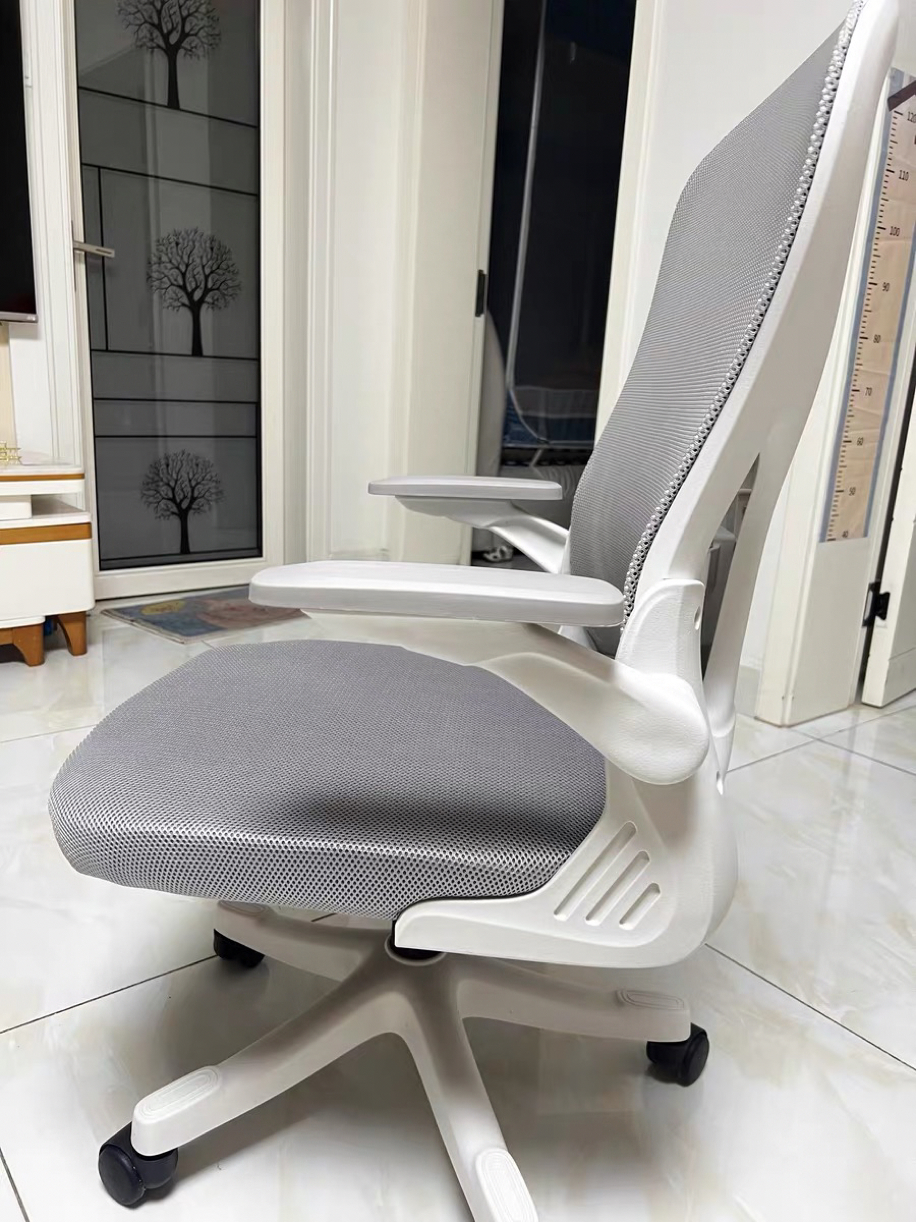 没有气味外观材质白灰配色,看着就很干净漂亮直观感受舒服,牢固工艺水平不错!我和闺蜜两个女生也能轻松组装!椅子坐上去很牢固,扶手可调节很方便还能节省空间!喜欢! 图源网络,侵删!