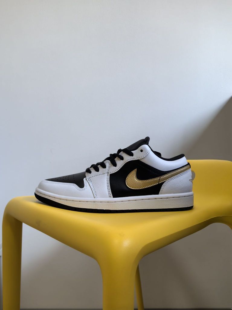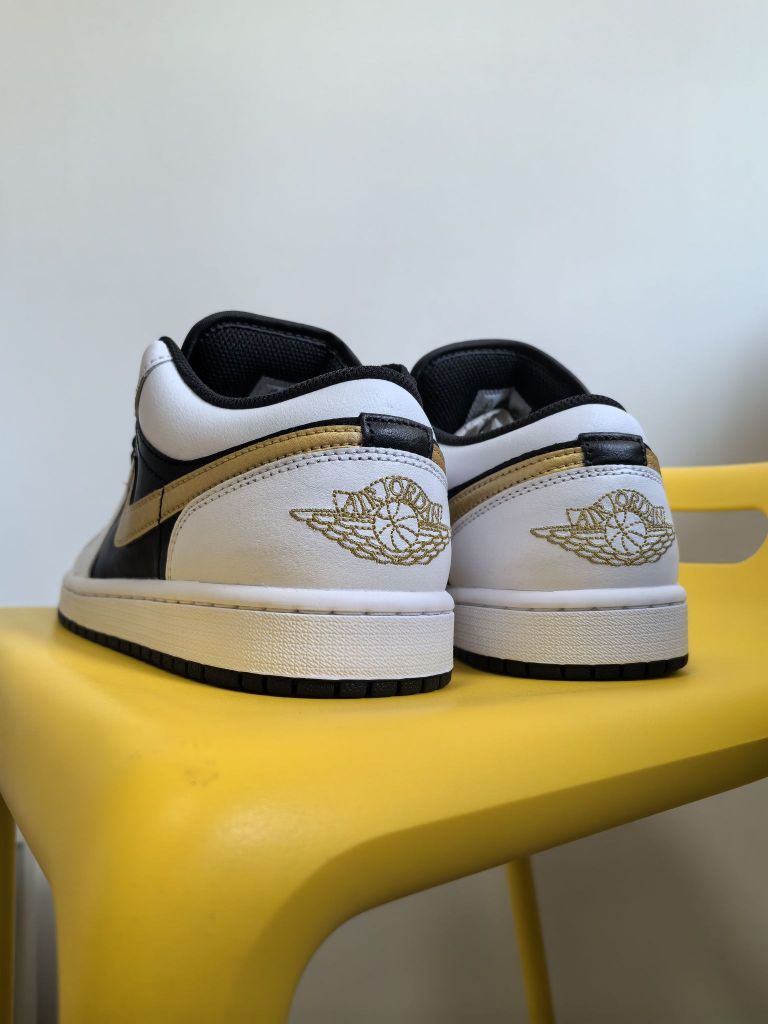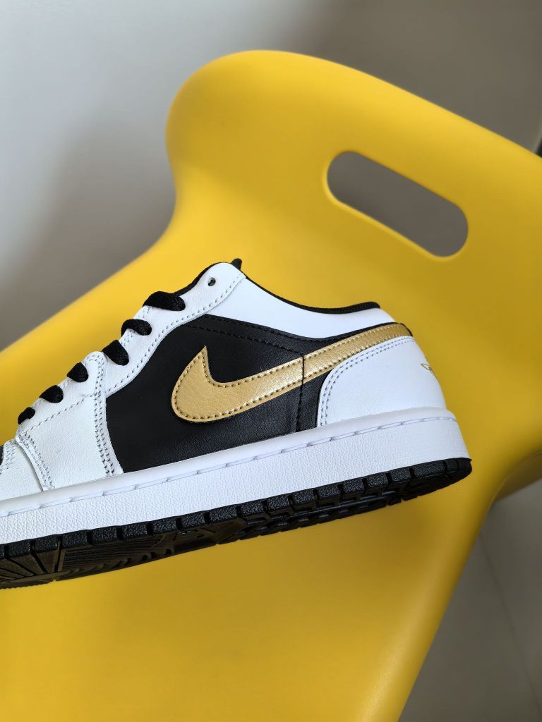🧐略微有点辨识度的是这后跟带有的金边 不然光这后跟确实放在调色盘里面是猜不出来的 不过当看到侧面还有正面的时候,这双其实还蛮不错的,例如金色的加入,以及个人比较喜欢的鞋正面直接连接鞋舌一整个黑色的设计,确实能够显瘦更帅!