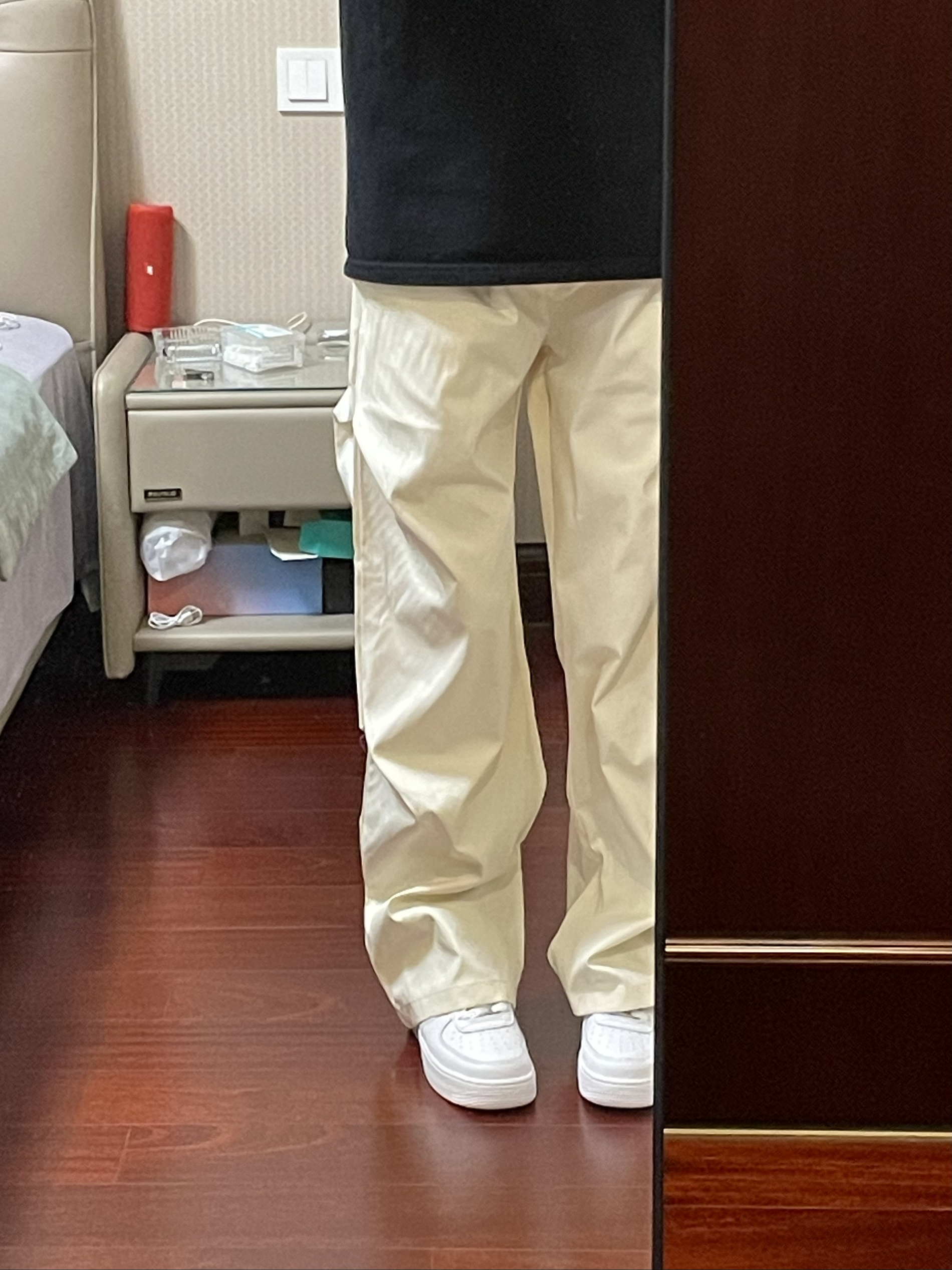啊啊啊今天穿的是一条杏色伞兵工装直筒休闲裤,真的太帅了,这个颜色好百搭,裤子上褶皱很有设计感,直筒版型上身显高显瘦显腿长,面料秋季穿刚刚好,男女同款,谁穿谁帅,我真的太爱这条裤子了!简直就是我的梦中情裤!