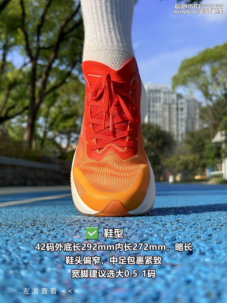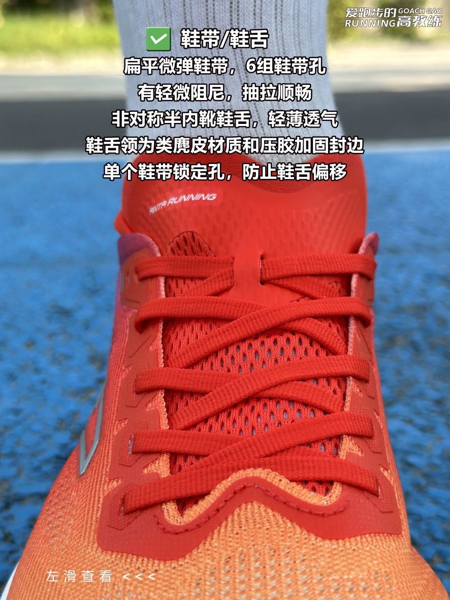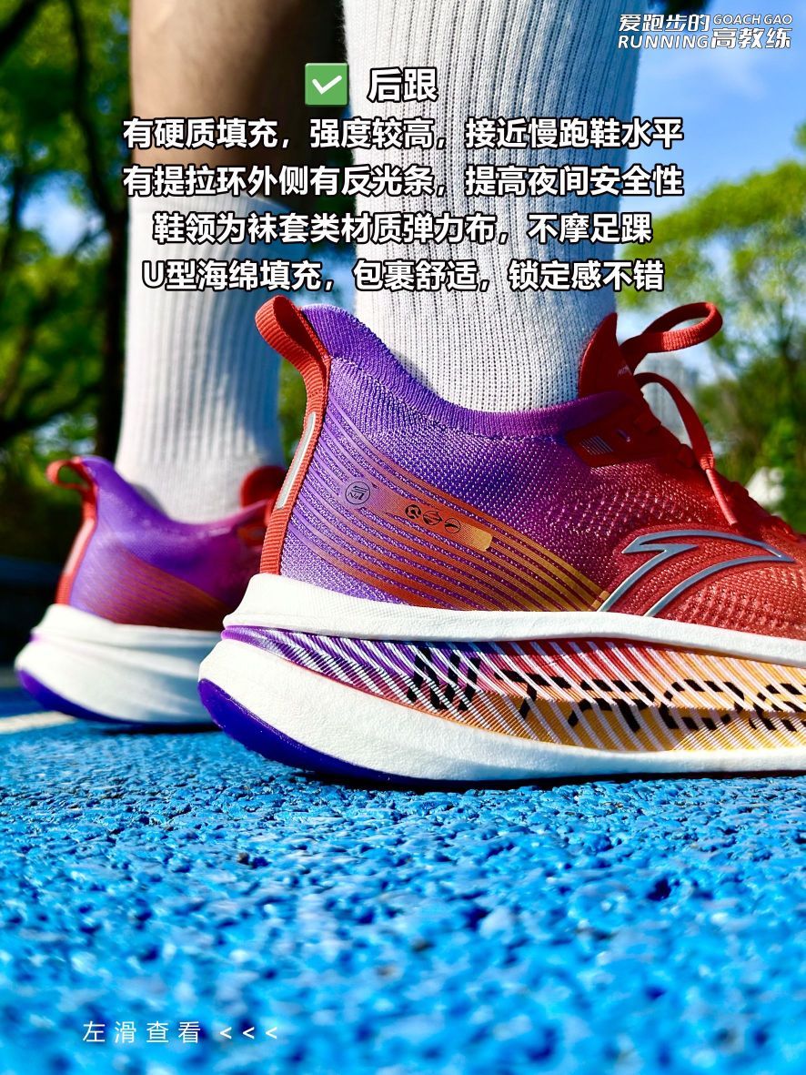 📝跑鞋数据: ✅鞋重:42码单只左脚274.6g右脚273.8g,不算轻质; ✅鞋面:分区编织鞋面,透气性优秀,强度较高,比较耐用,鞋头和后跟都有硬质压胶,提高鞋面支撑性,中足安踏热熔标比之前配色更柔软,改善了异物感,包裹性十分不错; ✅鞋楦:中足的包裹感和舒适性不错,但鞋头前侧有收窄,前掌较宽的跑者需要试穿一下; ✅鞋舌:非对称半内靴鞋舌,轻薄透气,鞋舌领为类麂皮材质和压胶加固封边,单个鞋带锁定...