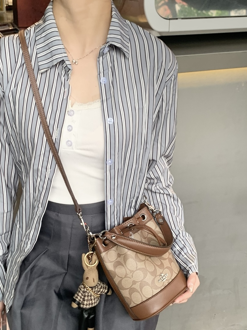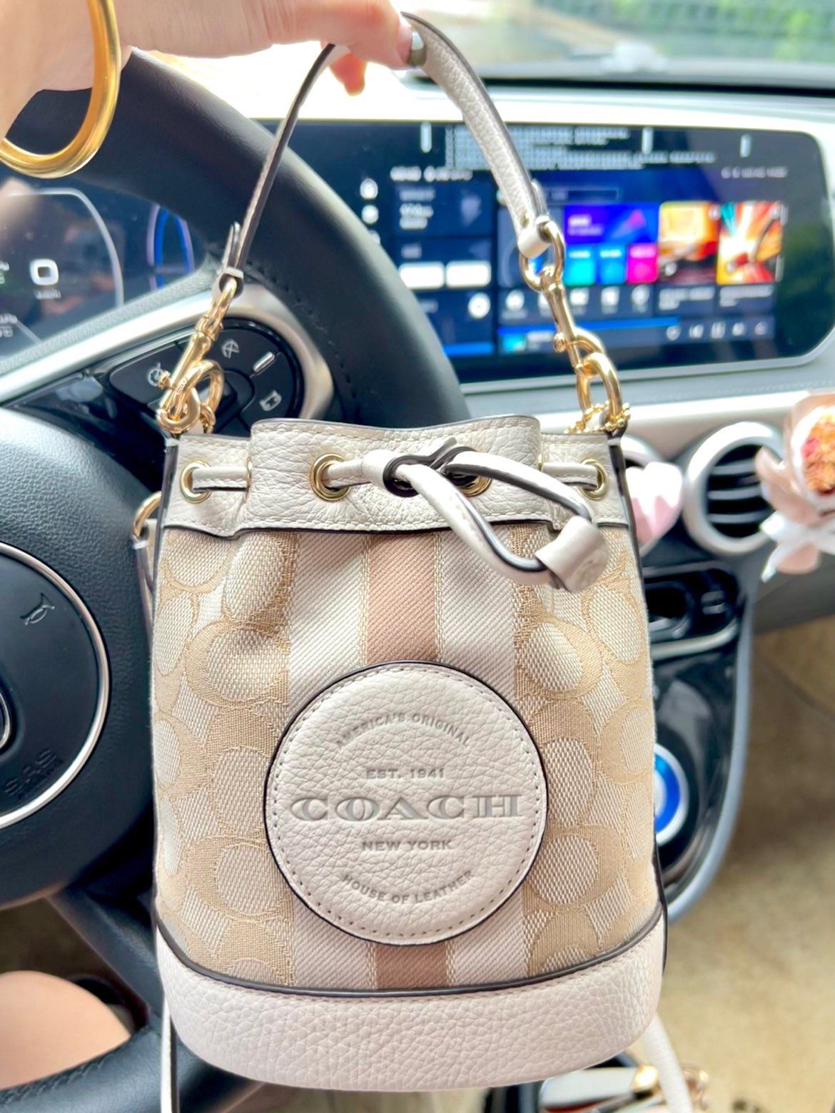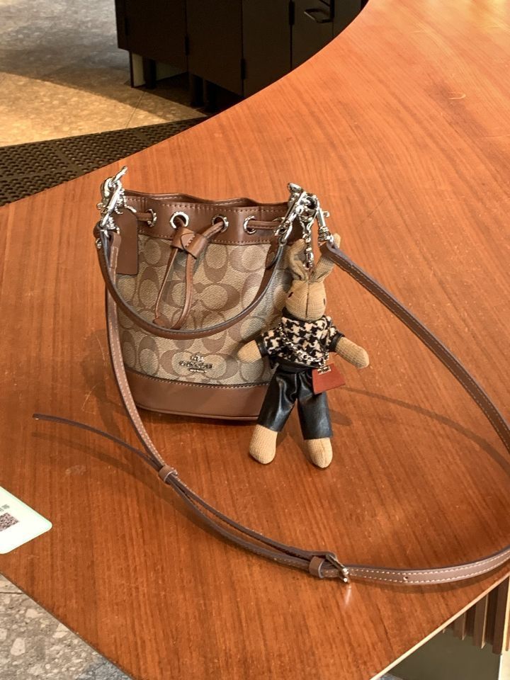 本篇笔记关联了Coach Dempsey 迷你 经典复古老花印花品牌徽标抽绳开合PVC配皮水桶包单肩手提斜挎包 棕色等商品,为用户提供真实的使用体验和购买参考。