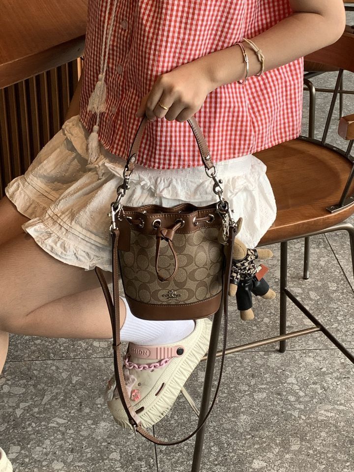 本篇笔记关联了Coach Dempsey 迷你 经典复古老花印花品牌徽标抽绳开合PVC配皮水桶包单肩手提斜挎包 棕色等商品,为用户提供真实的使用体验和购买参考。