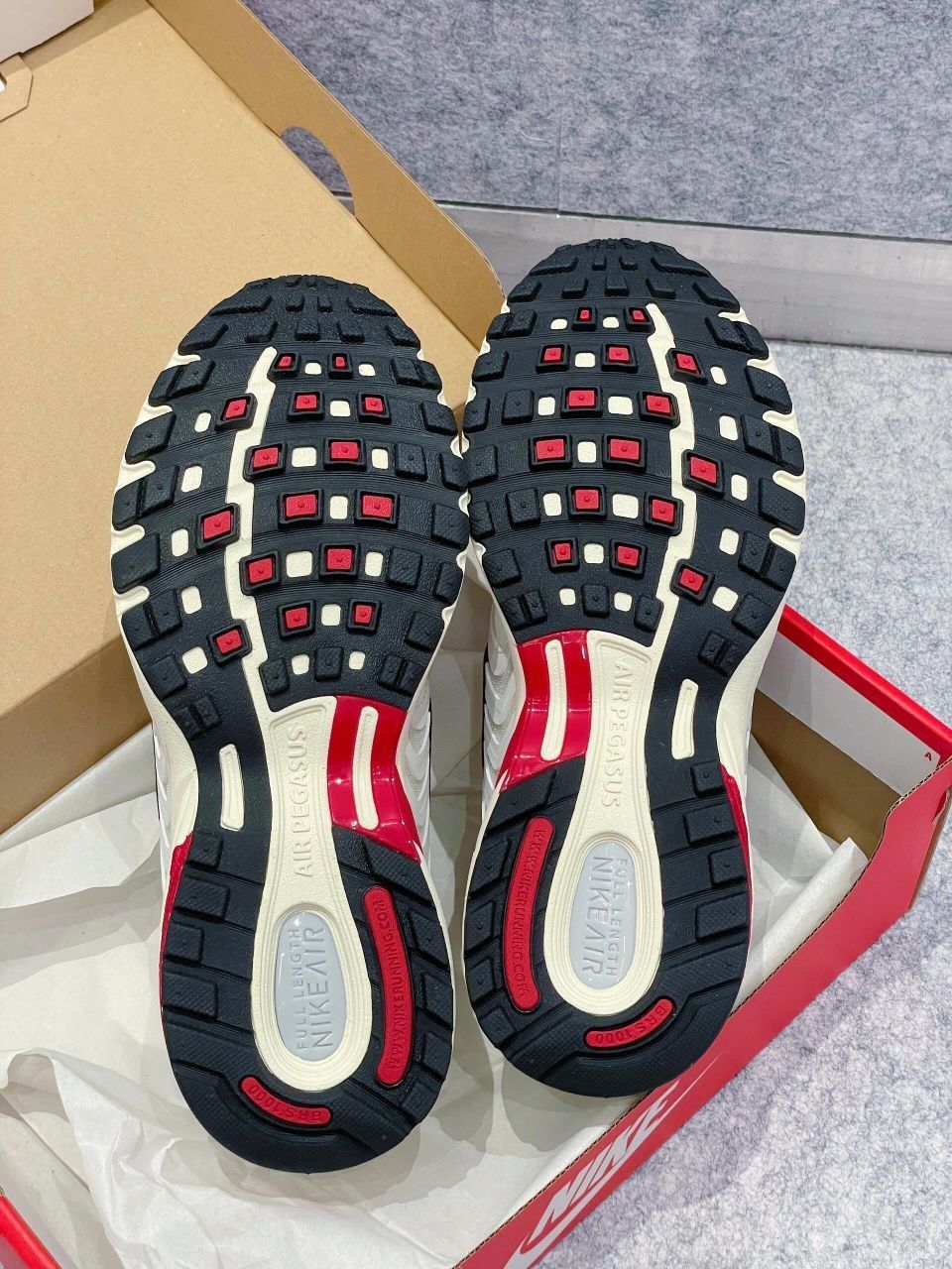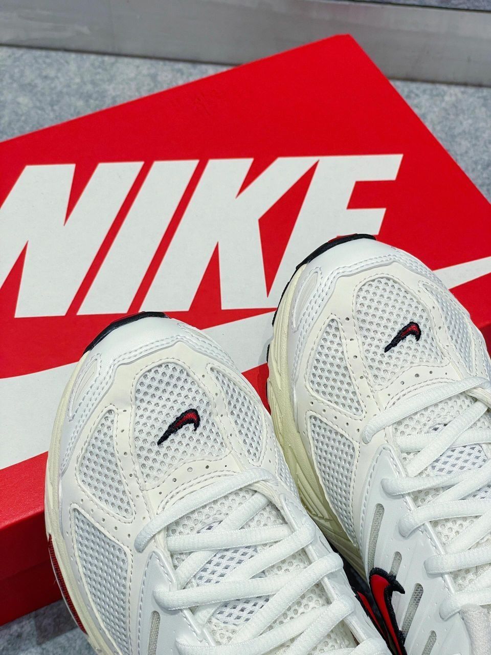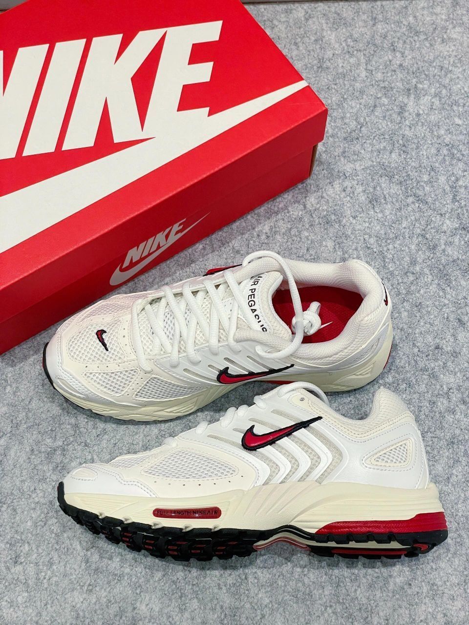 全新Nike Pegasus 2K5老爹鞋颜值太顶则了!! 米白色搭配黑红点缀鞋底还采用了做旧白 有几分复古的感觉了