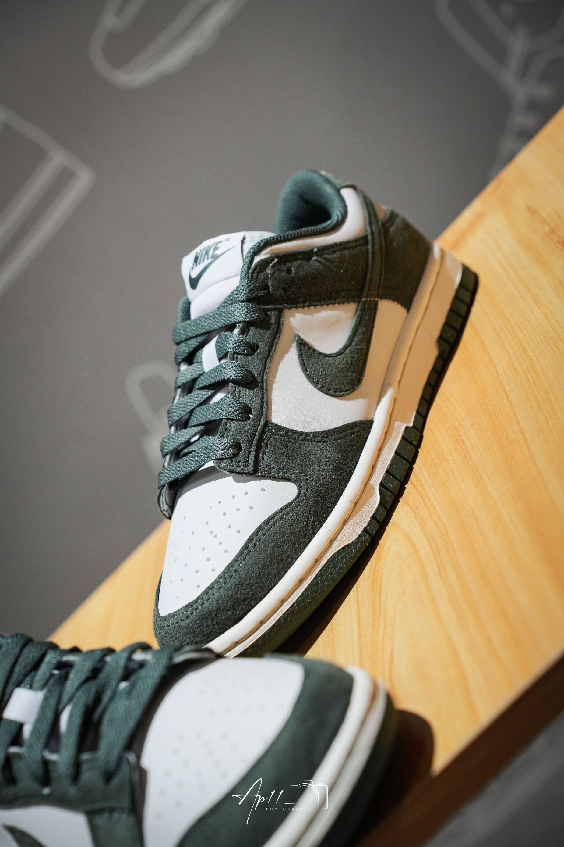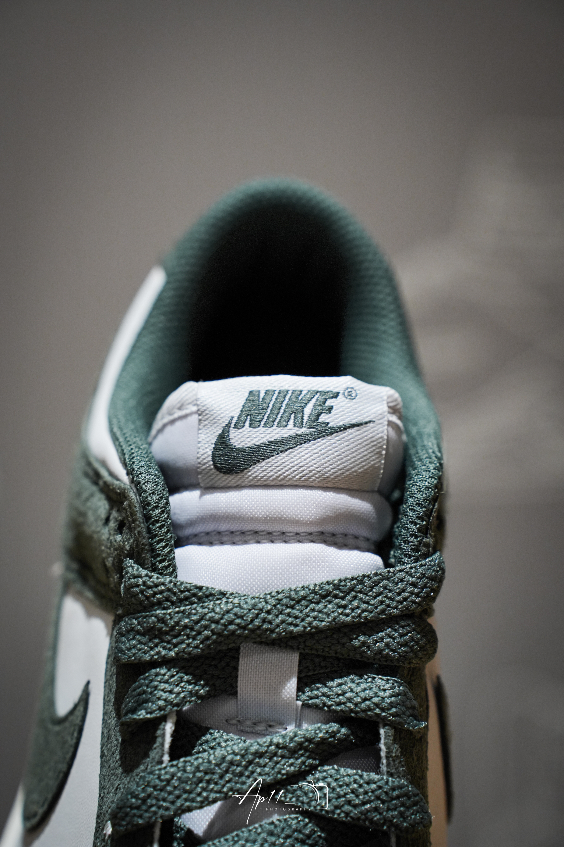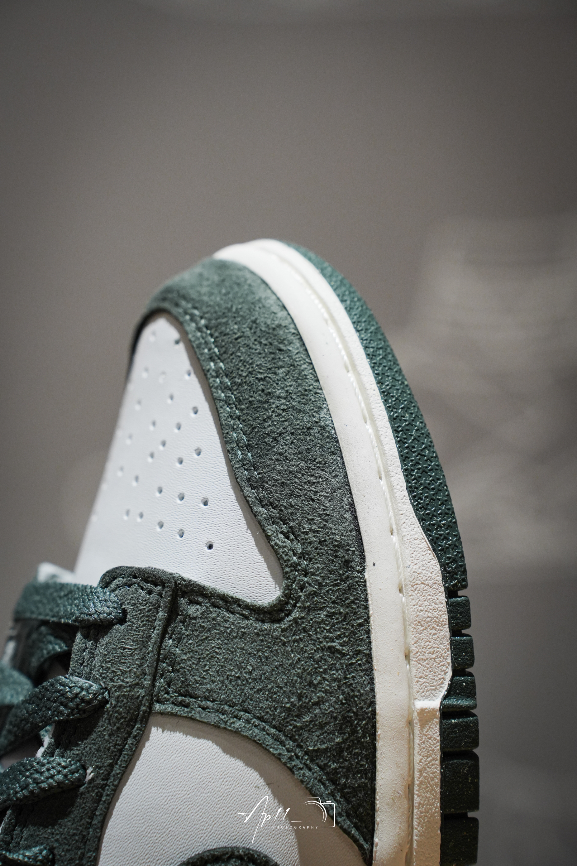 这款Nike Dunk Low配色设计可以说是相当复古的了,整体以墨绿色鞋面为主,搭配灰白色皮革的点缀,整双鞋配色很有一种年代感。而且鞋身的墨绿色部分还是用到了麂皮的材质,质感还是不错的。