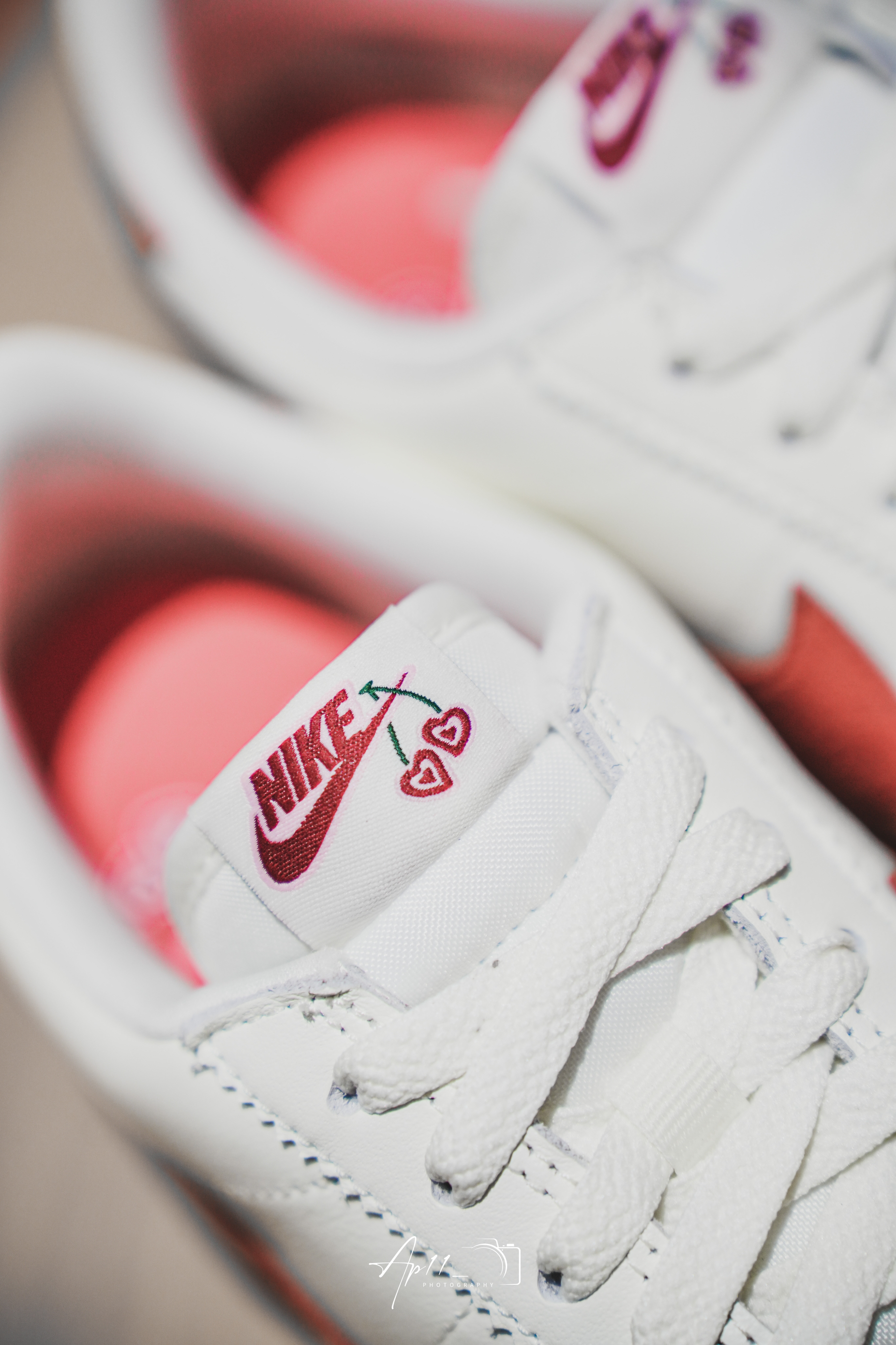 此次带来的这款 情人节配色 Nike Cortez Valentine’s Day的分享。整双鞋以帆布白色和粉红色搭配示人,在细腻的皮质鞋面中,分别在鞋侧 Swoosh 和鞋尾加入翻毛皮材质。之后,在鞋带铭牌、鞋舌绣标、鞋垫以及鞋尾还都分别加入桃心形图案,凸显节日氛围。