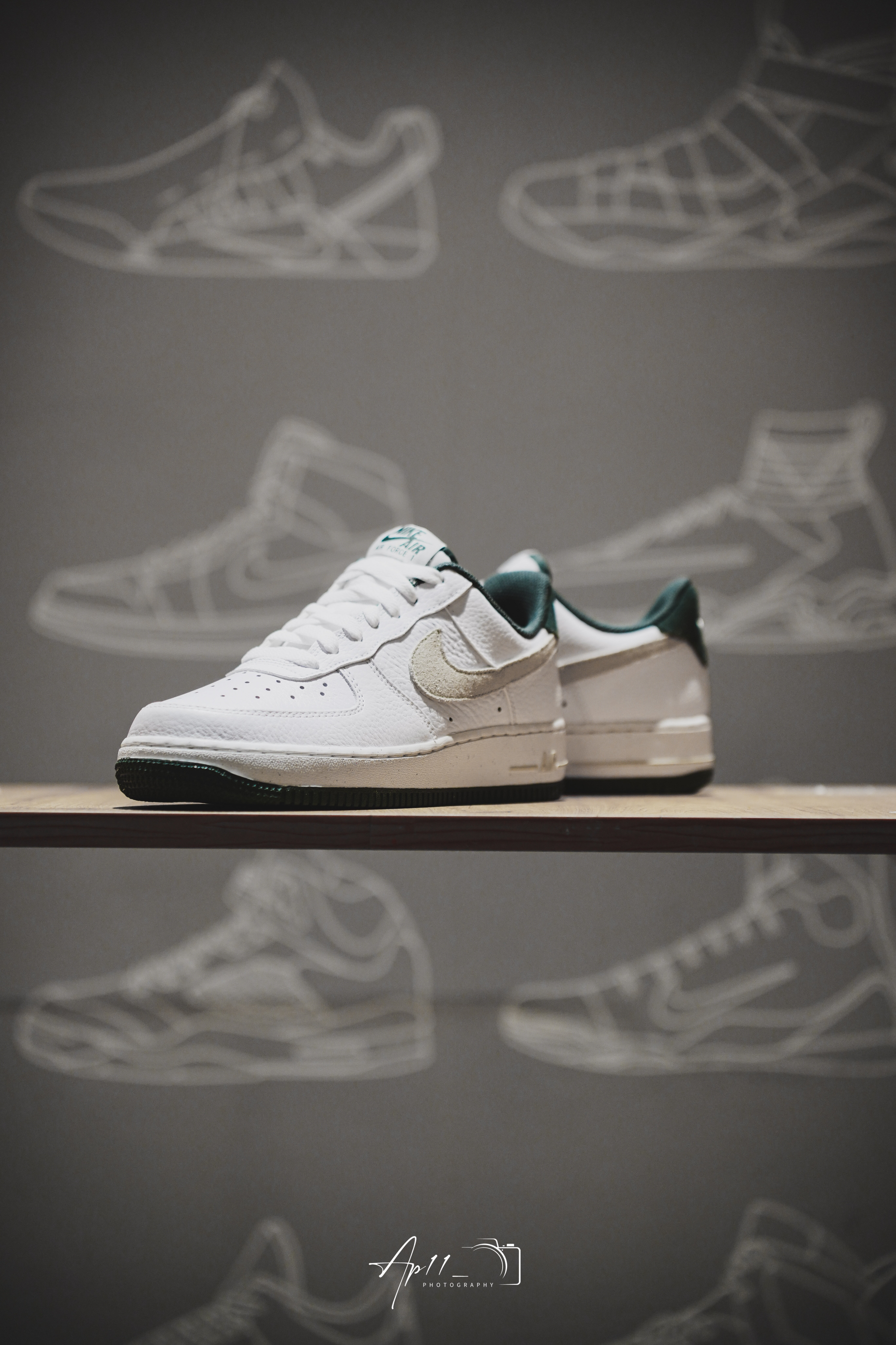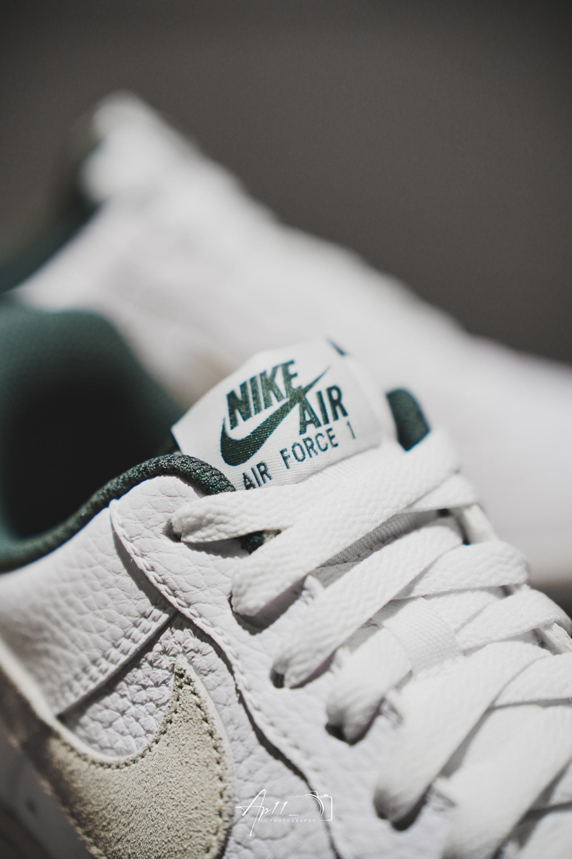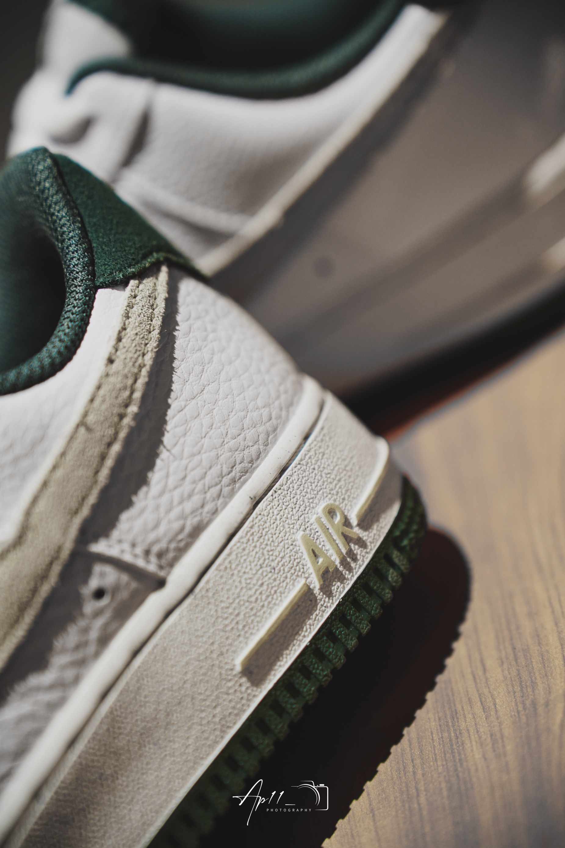 此次带来的这款Air Force 1 的分享,经典的鞋型框架往那一摆,加上白绿配色组合,小清新加上复古气息一下就包裹了整双鞋!质感比较光滑的材质,也稳稳接住了配色。还有必须提一嘴的米白色Swoosh,视觉上多少有些惊艳,算是比较不错的颜值加分项。后跟,内衬以及大底的墨绿色相呼应,复古韵味十足。