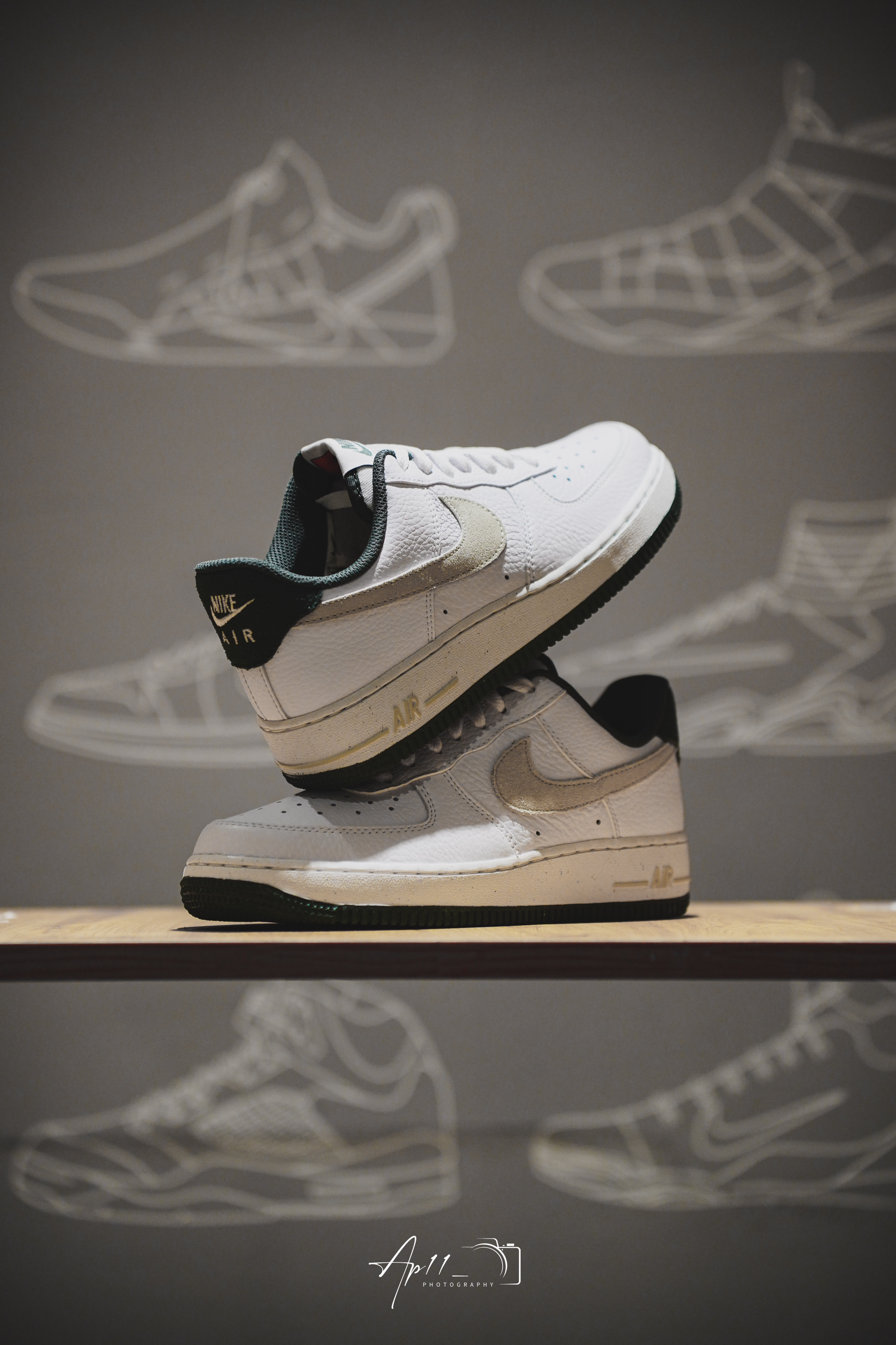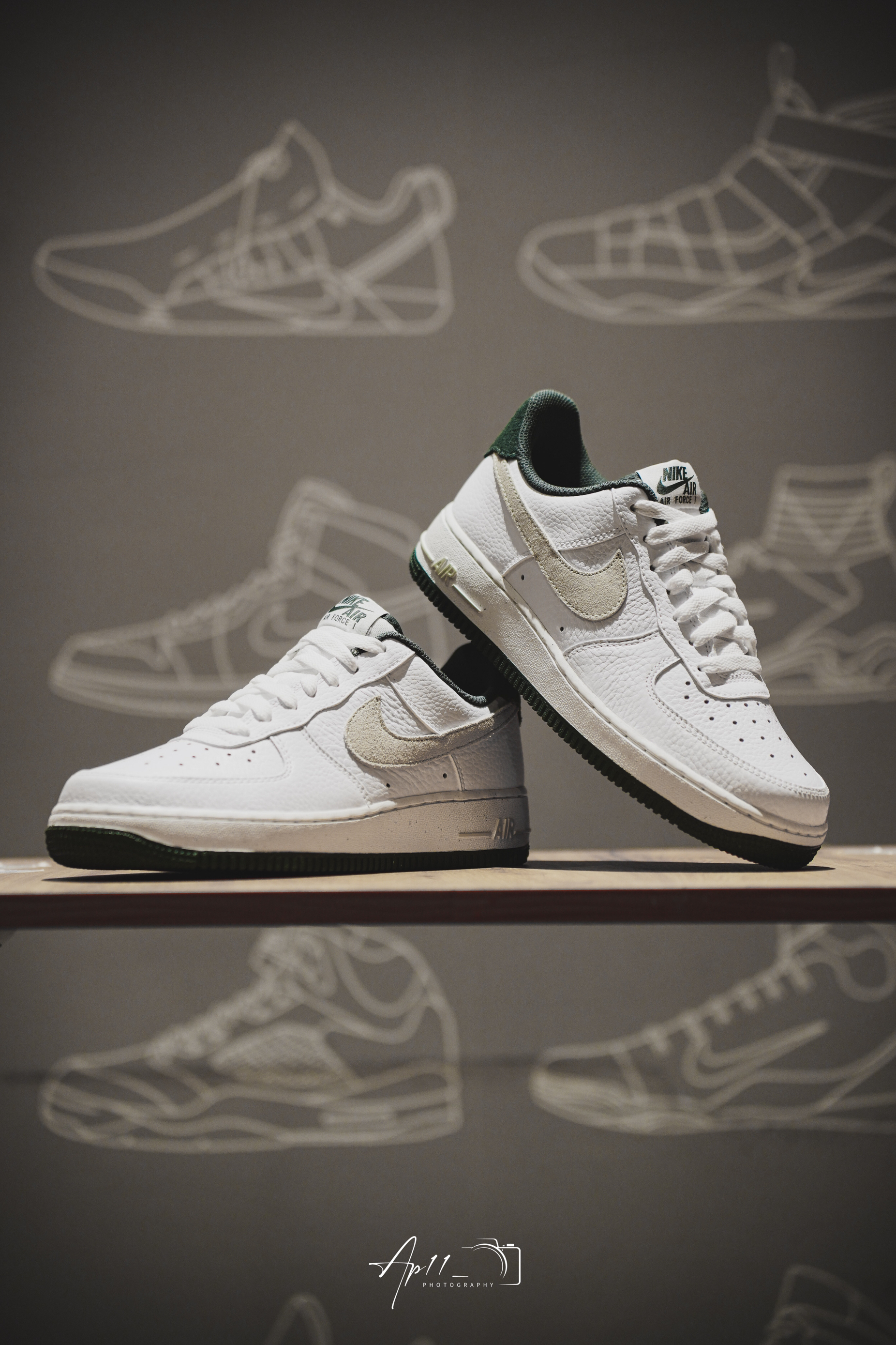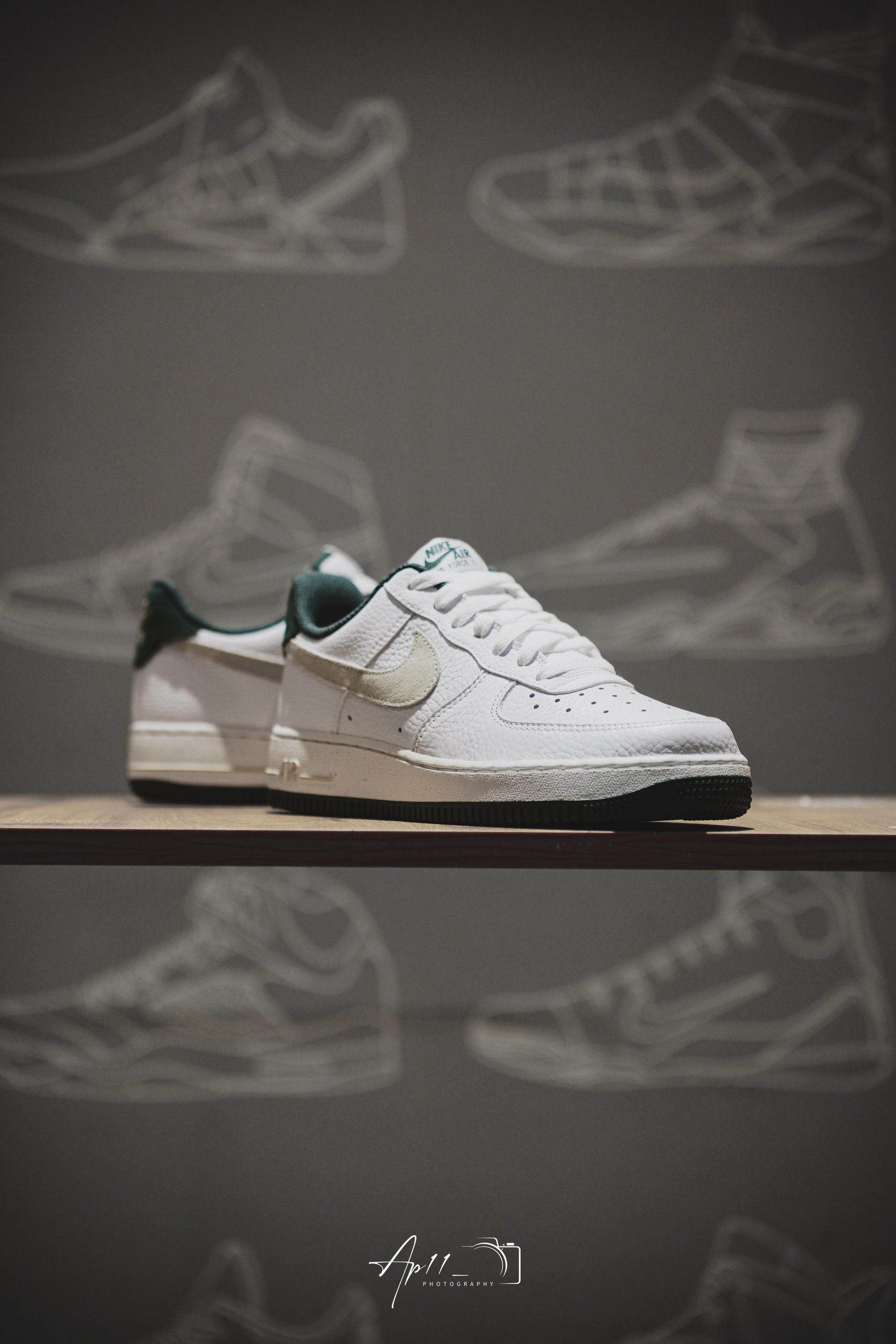此次带来的这款Air Force 1 的分享,经典的鞋型框架往那一摆,加上白绿配色组合,小清新加上复古气息一下就包裹了整双鞋!质感比较光滑的材质,也稳稳接住了配色。还有必须提一嘴的米白色Swoosh,视觉上多少有些惊艳,算是比较不错的颜值加分项。后跟,内衬以及大底的墨绿色相呼应,复古韵味十足。