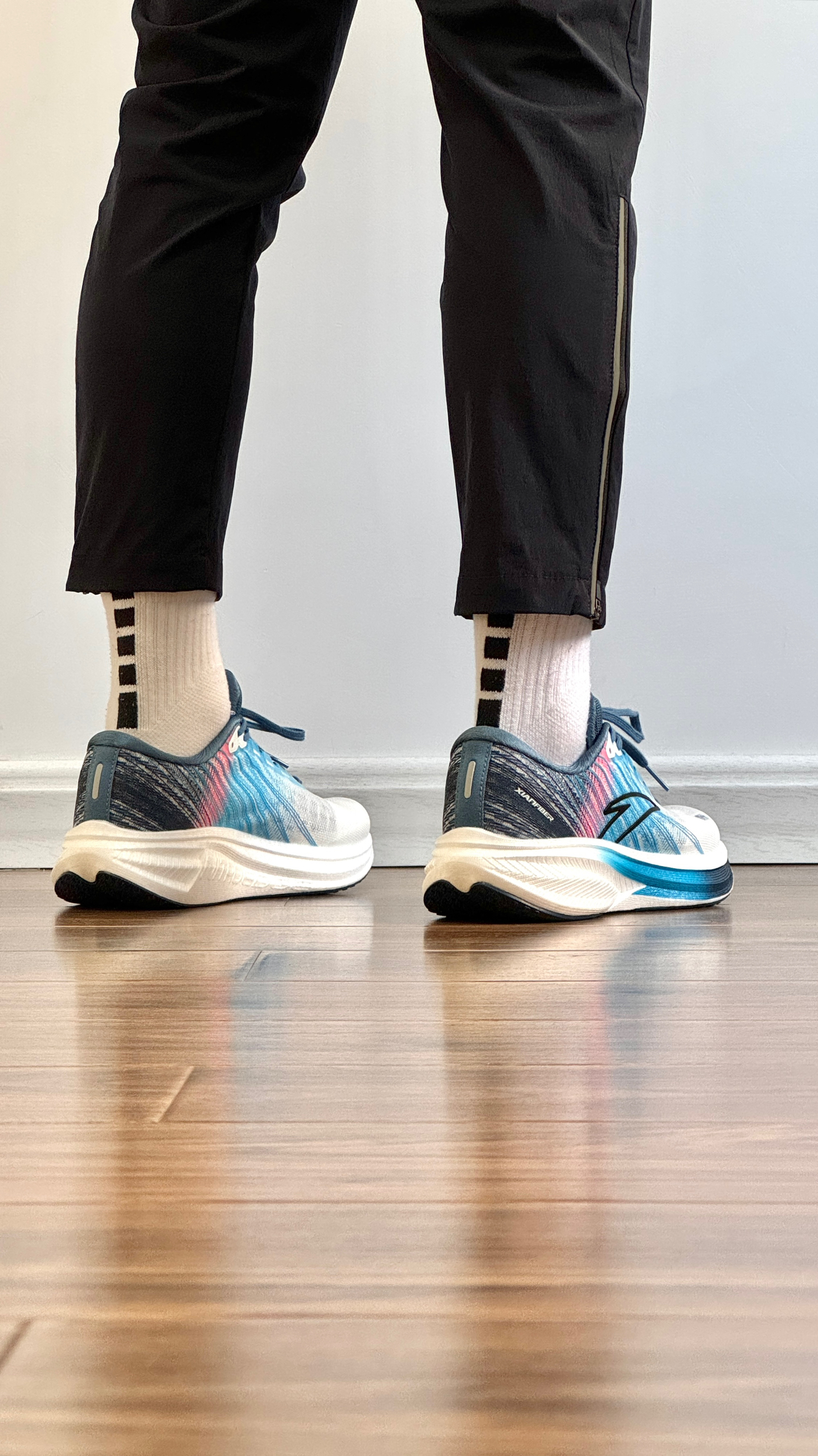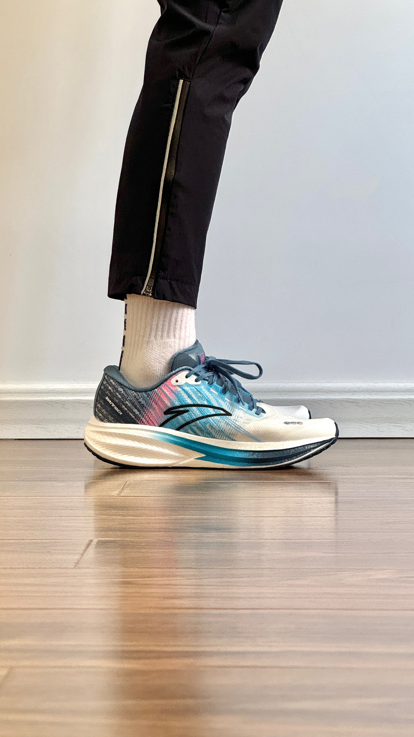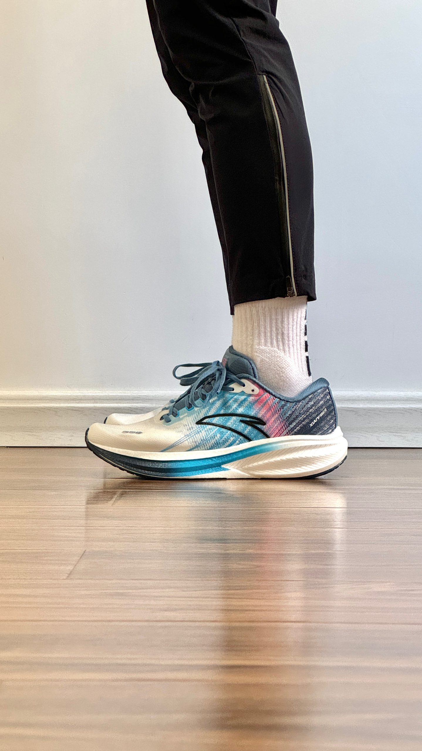 白蓝配色清爽百搭。TPU绞综编织鞋面轻量透气。中足与后跟搭载弦科技包裹更出色。前后掌坡差8毫米。全掌氮科技中底脚感软弹。中足内嵌TPU稳定片保证足底刚性。龙鳞大底防滑耐磨不挑场地。尺码正常。适合中小体重日常通勤,中长距离竞速训练及半马比赛使用。