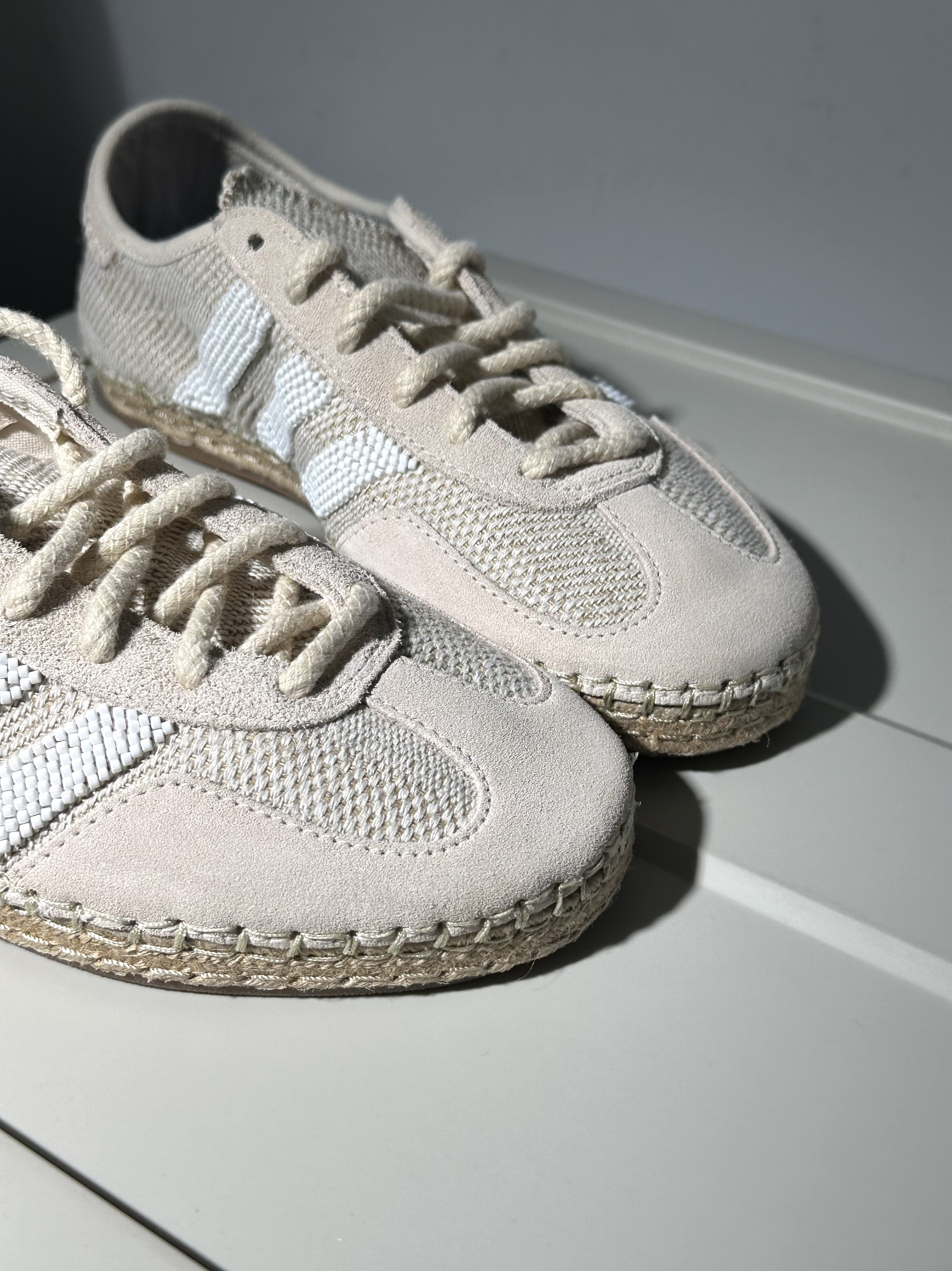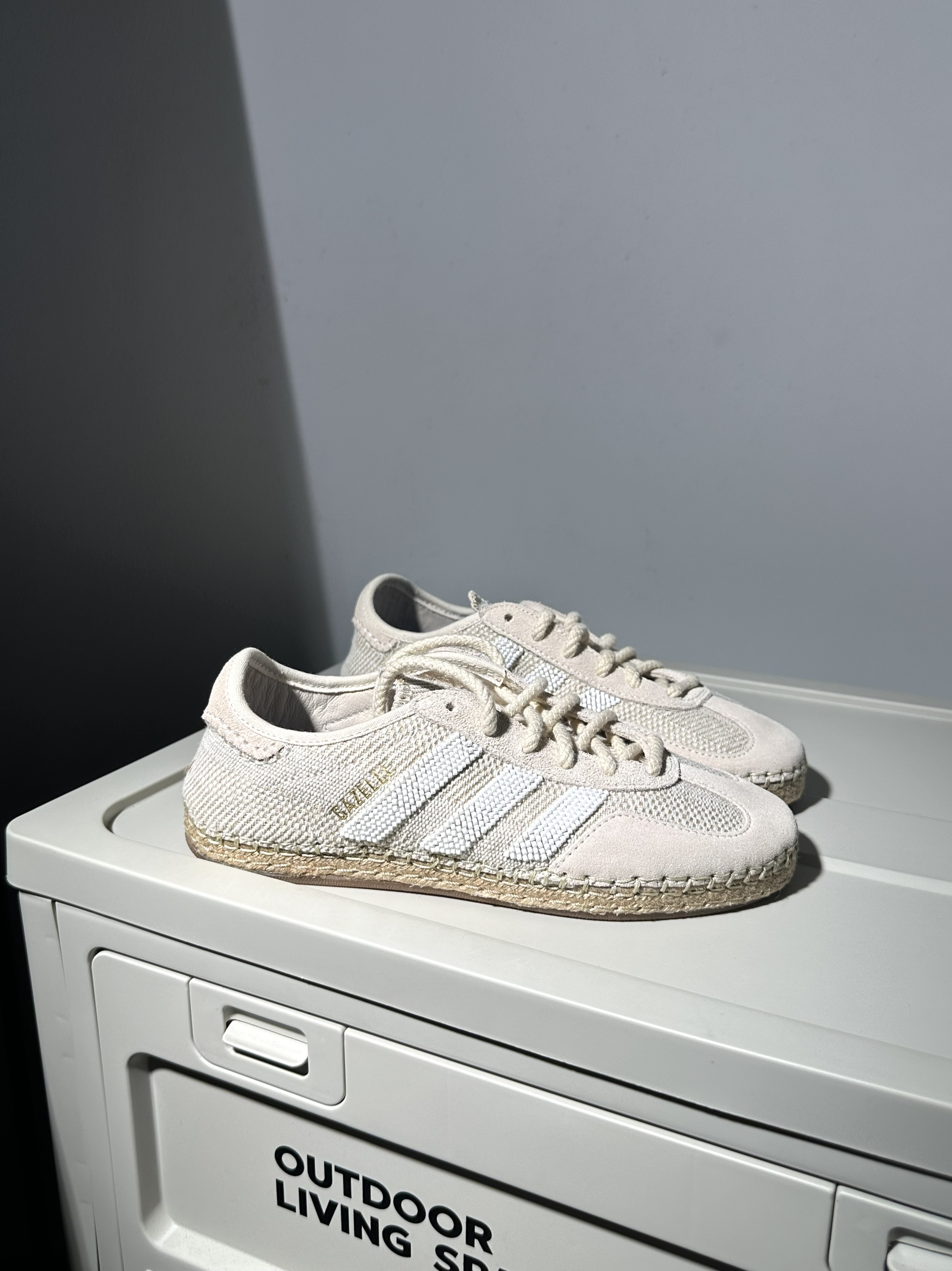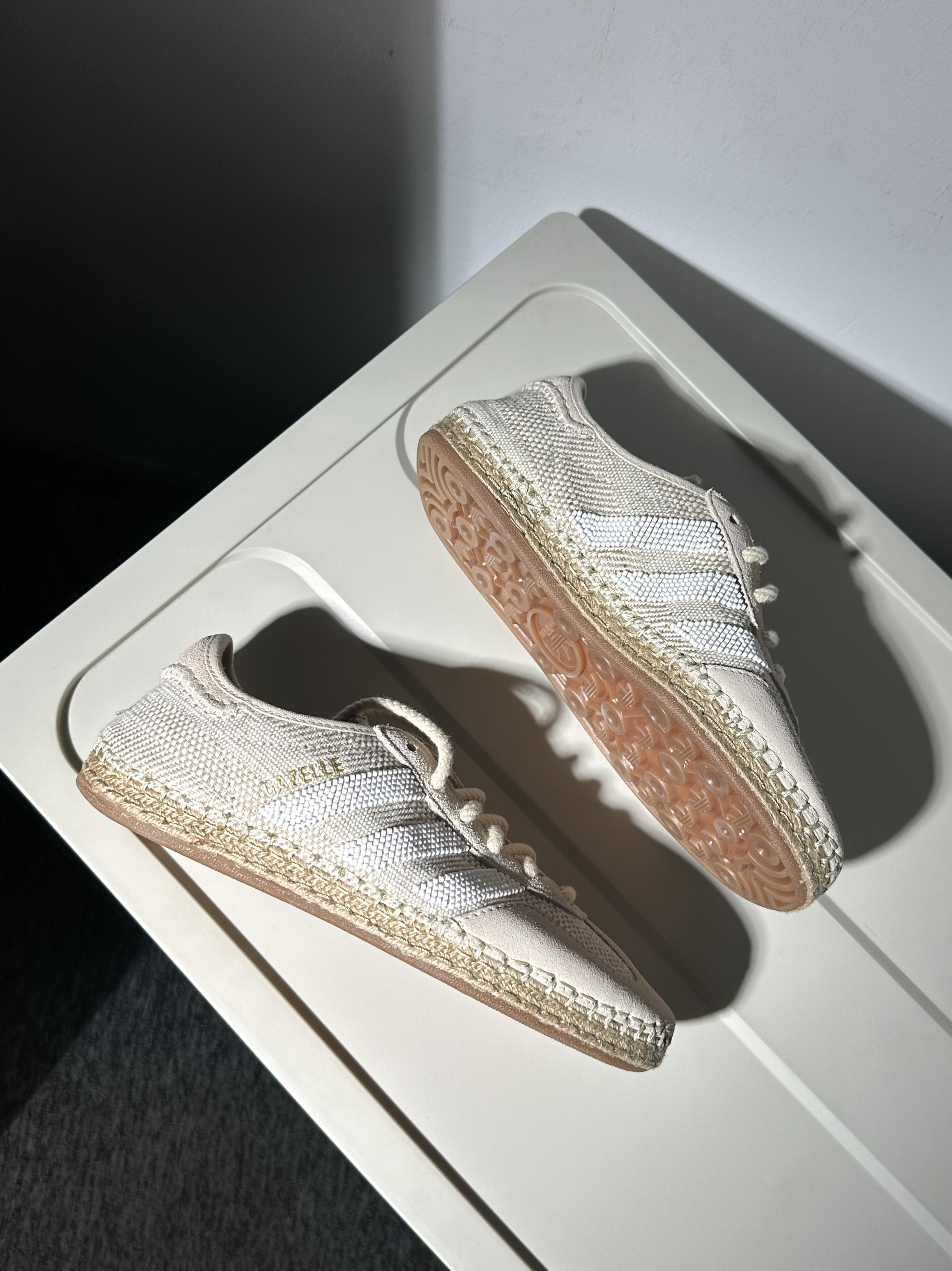 🍒配色:很简约和有设计感的clot联名gazelle德训鞋,原木色看上去确实挺高级的~而且细节设计也很多,上脚确实很显贵‼️💫 🍃材质:鞋面用到织物和麂皮拼接,有以前草鞋的感觉,质感很棒也很独特🔥 🥥尺码:不偏码,正码选择就行✅ ⚠️缺点: 1️⃣鞋面质感虽然很棒,但是打理起来确实需要费心啦,尽量选择天气好的时候穿☀️ 2️⃣鞋子的脚感比较一般~所以更适合通勤出街穿,穿搭起来好看又出片🍄