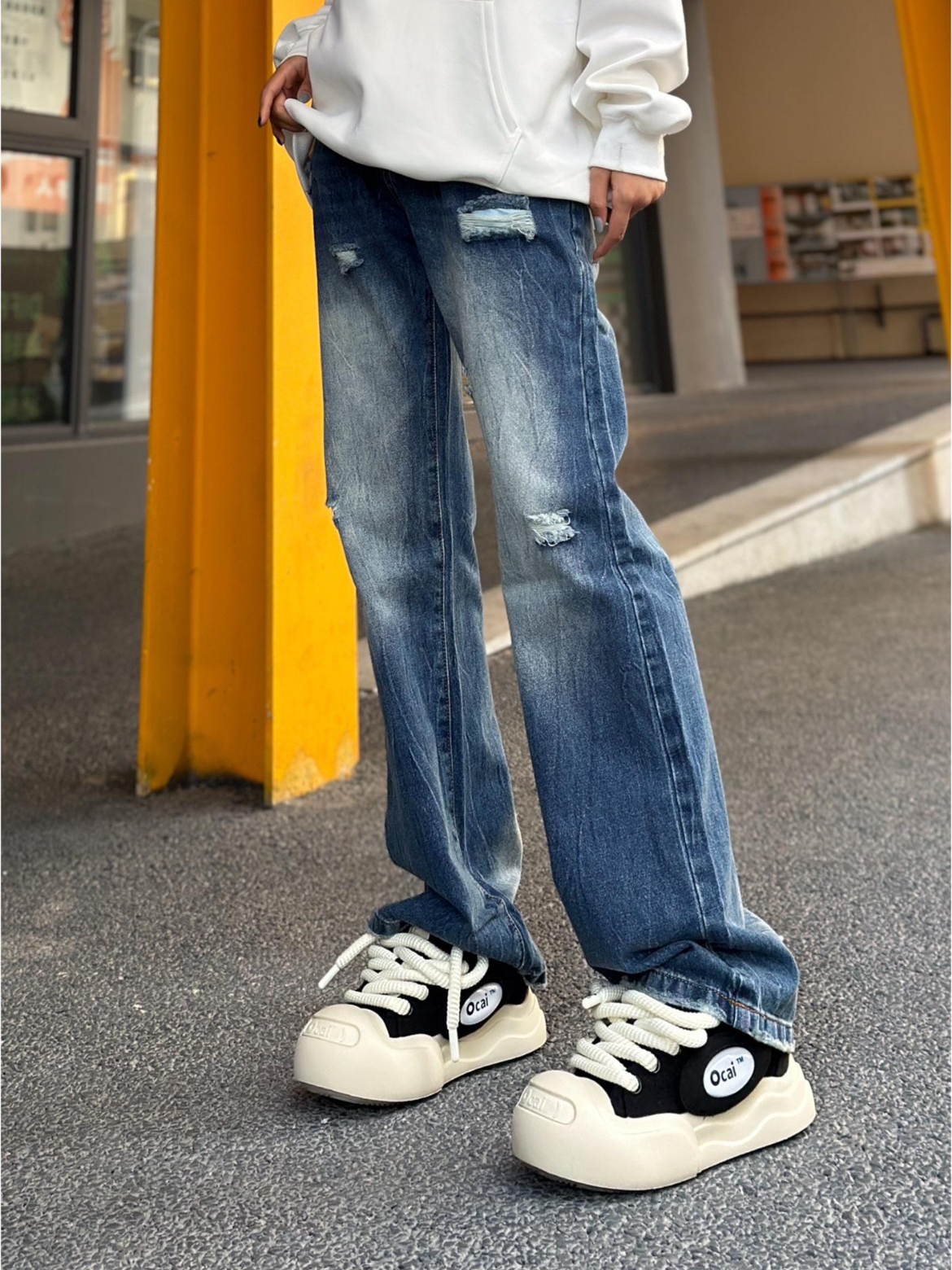 裤子用了舒适亲肤的纯棉料,经过重水洗处理手感更为细腻柔和,呈现褪色效果。同时融入破坏工艺,裤身有很强的复古做旧质感,更具视觉张力。上身非常好穿,值得推荐。 (图片来自网络,侵删)