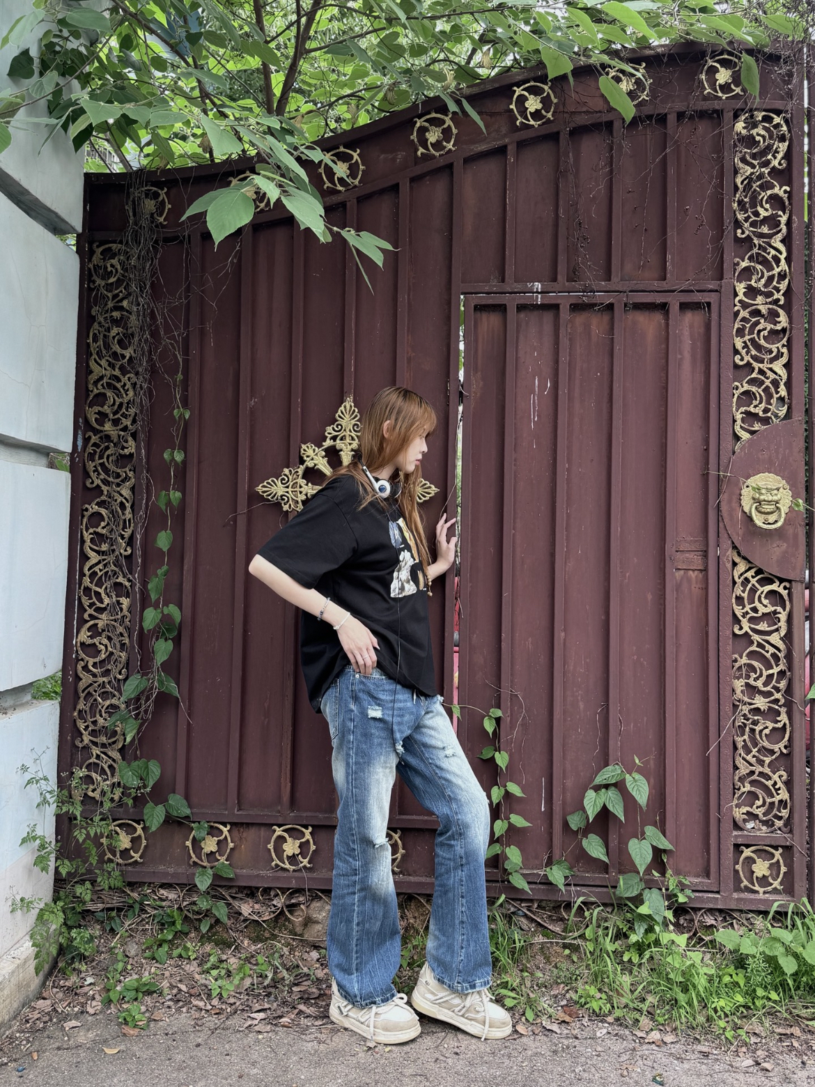 这条裤子的设计真的好特别,腰间的线条很遮胯,版型修身显瘦,小腿肉肉也能遮得严严实实。真是一条简单又好搭的潮流高街牛仔裤。做旧的处理为裤子增添一丝复古气息,实穿性很强。 (图片来自网络,侵删)