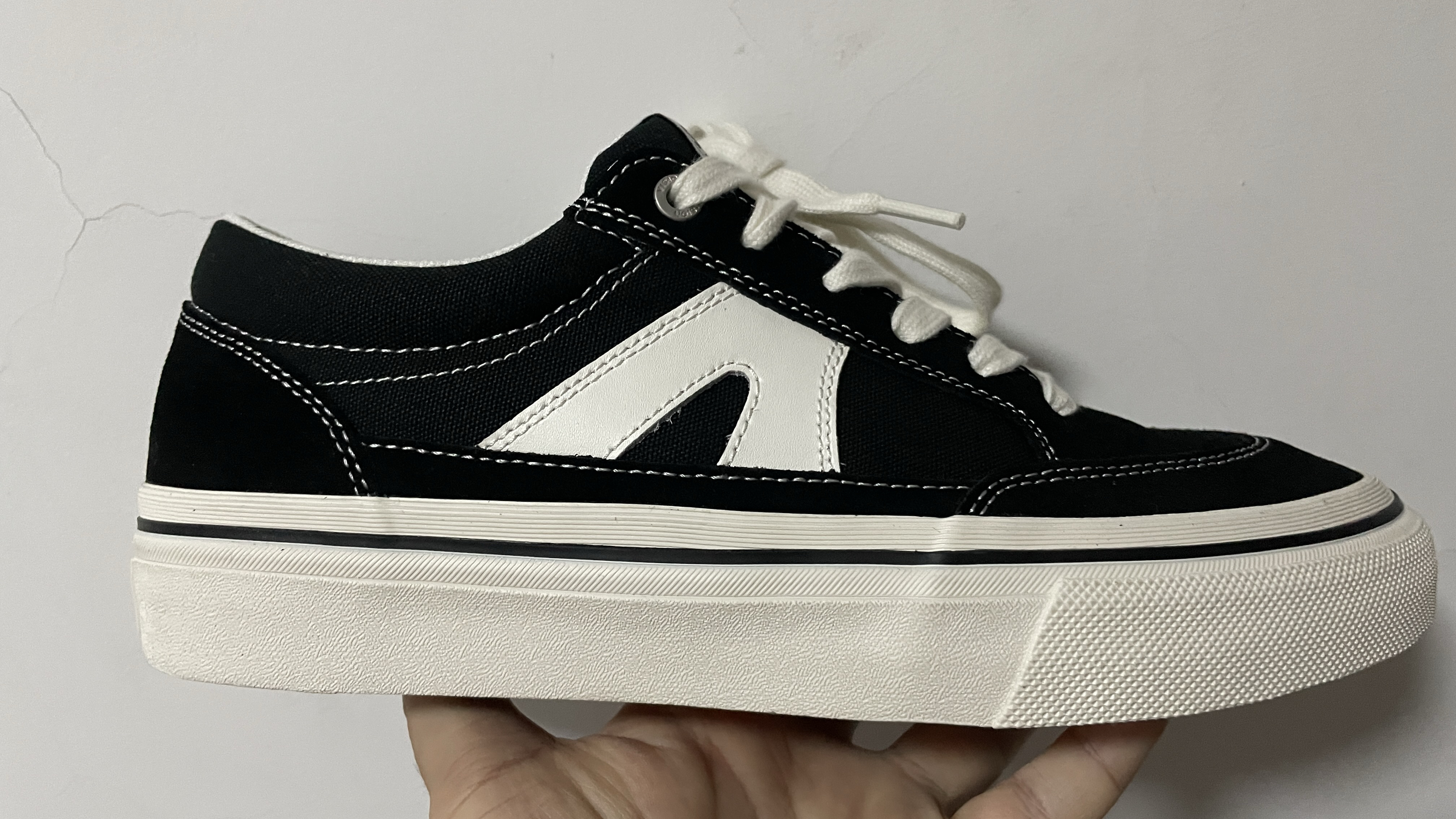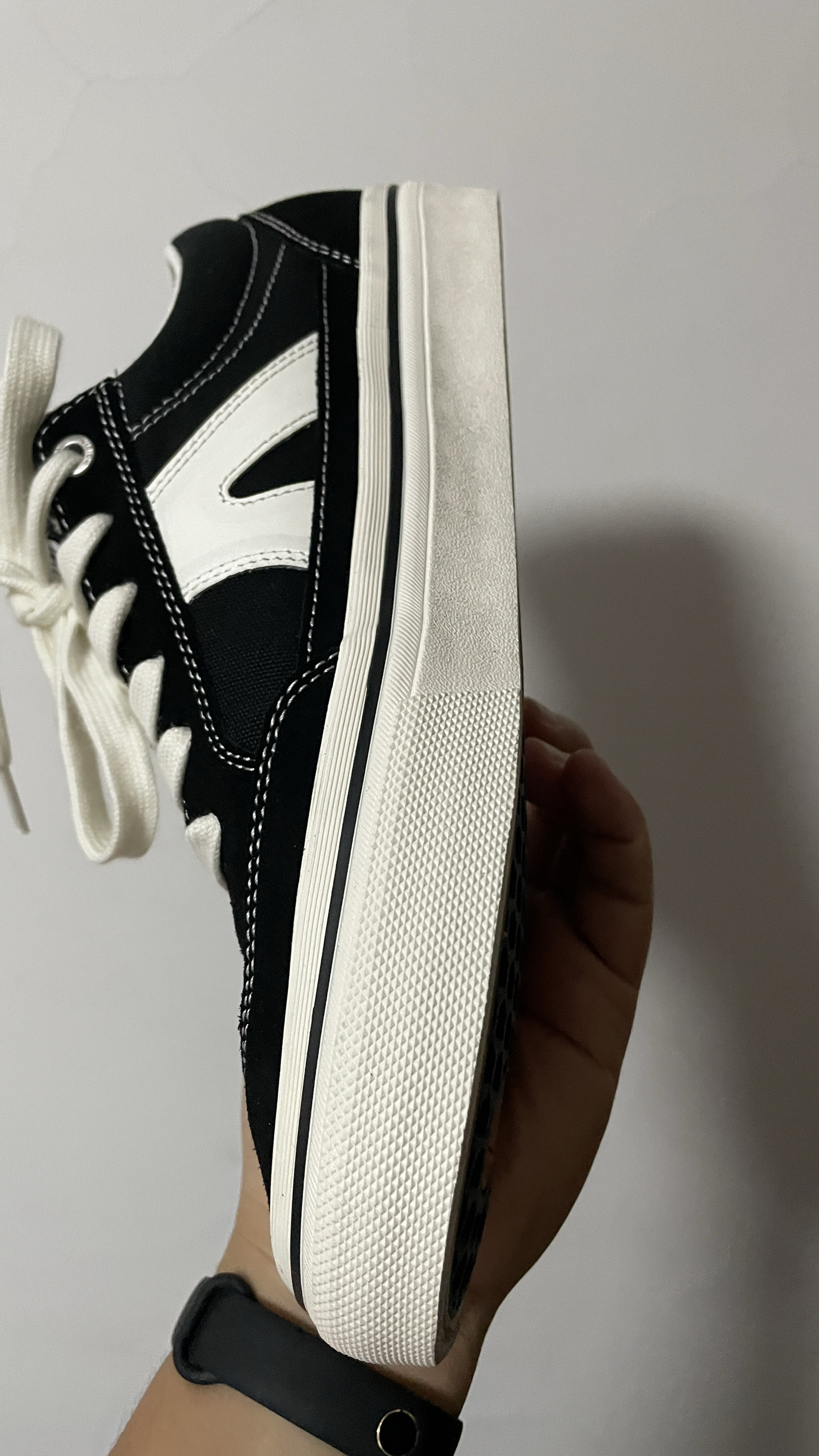 黑白板鞋,时尚界的经典之作。 一、外观设计 简洁的黑白配色,永不过时。白色的鞋面干净纯粹,给人清新自然之感;黑色的鞋底和鞋带则增添了一份稳重与酷炫。整体设计简约大方,无论是搭配休闲装还是正装,都能轻松驾驭,展现出独特的时尚品味。 二、材质与质量 整身大面积采用高密实反毛皮,鞋头、鞋眼片以及后跟裁片均采用高密实反毛皮,鞋身两侧及鞋舌部分采用12安特高密帆布材料,饰片采用优质二层牛皮,有效加强鞋面耐磨...