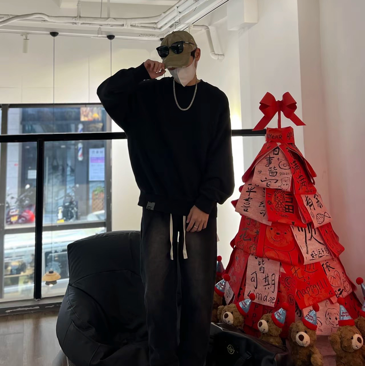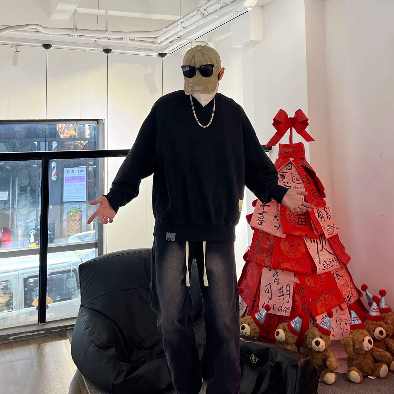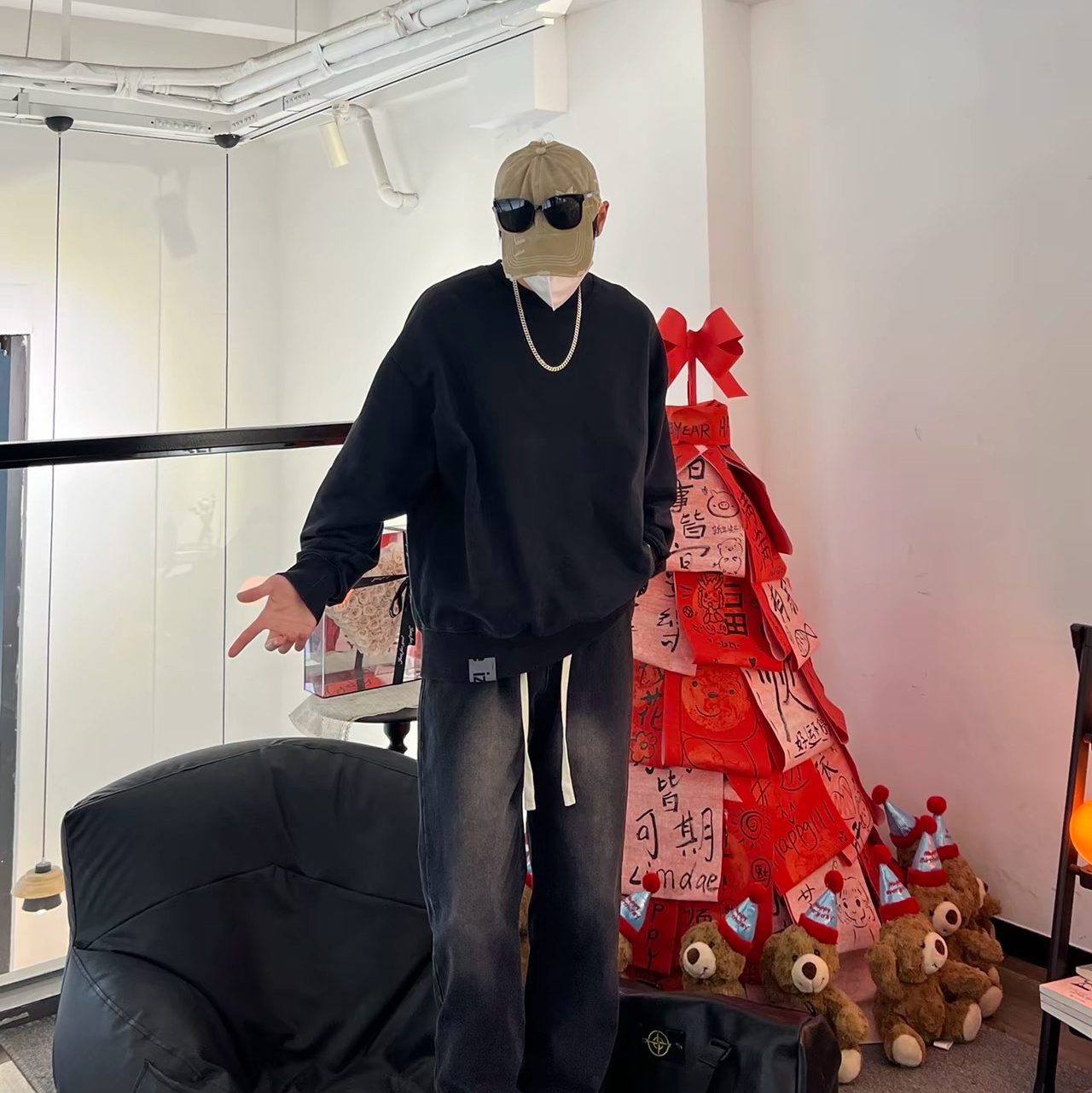 宝子们额这是一款男士牛仔裤—黑色牛仔裤男士☑️ 潮流青少年必入款,春秋季穿简直太合适啦。宽松阔腿直筒的设计,时尚感爆棚心💗不仅修饰腿型,让你的双腿看起来又直又长,而且活动起来毫无束缚感,舒适自在。 图片来源于@MXDT_穿搭小助手